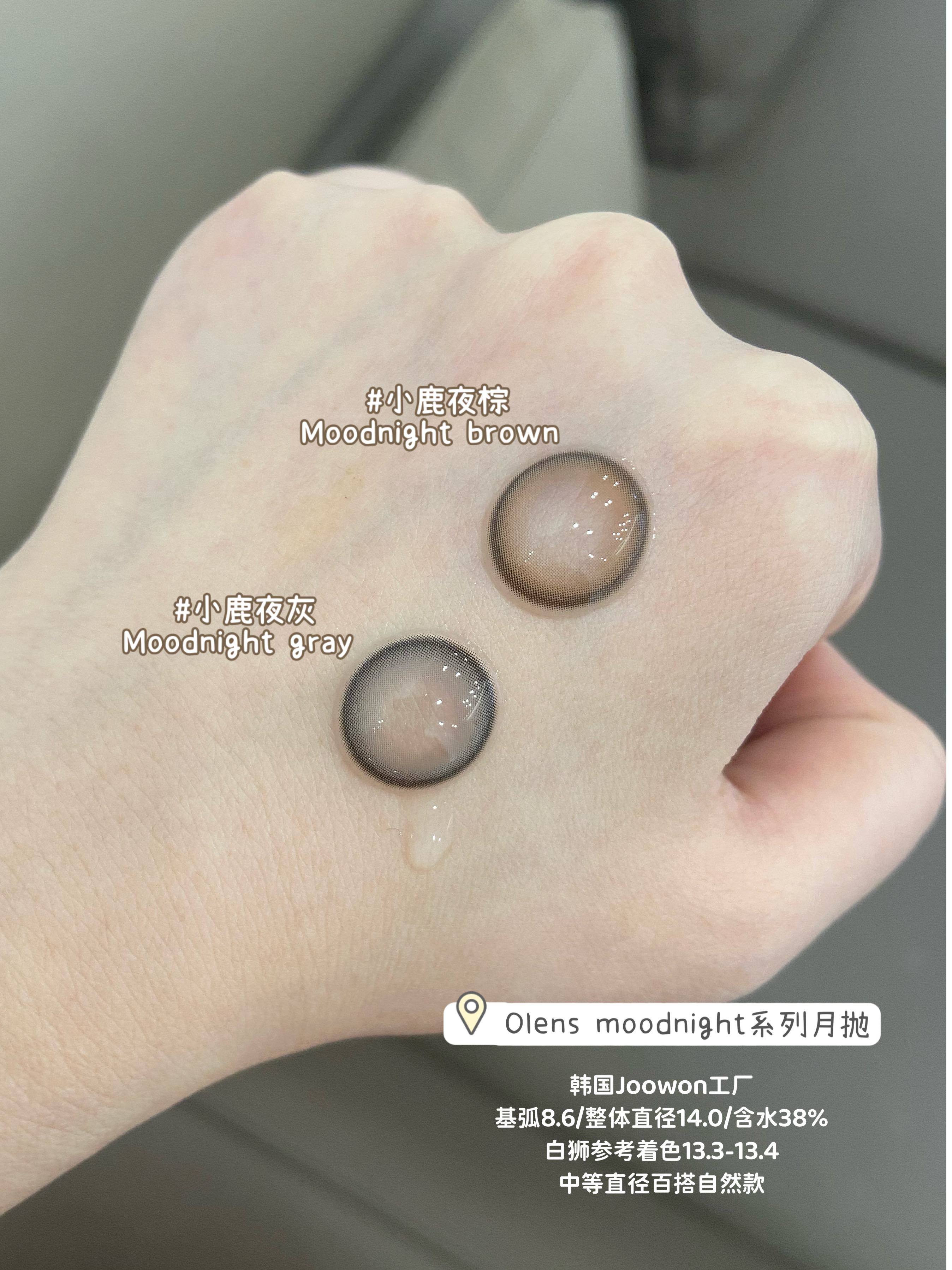 Olens日抛·小鹿夜棕&小鹿夜灰·Moodnight系列 14.2mm实际中等直径 一盒10片装