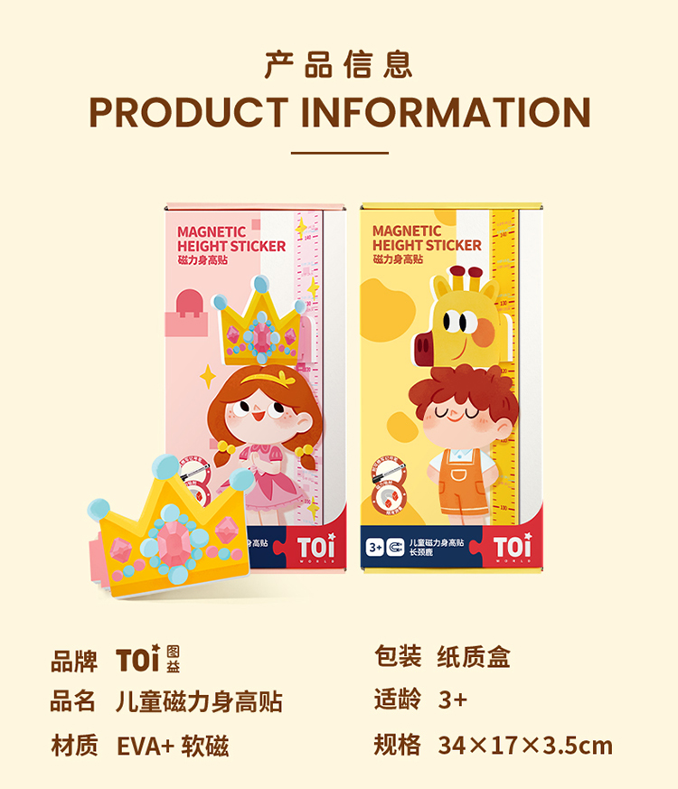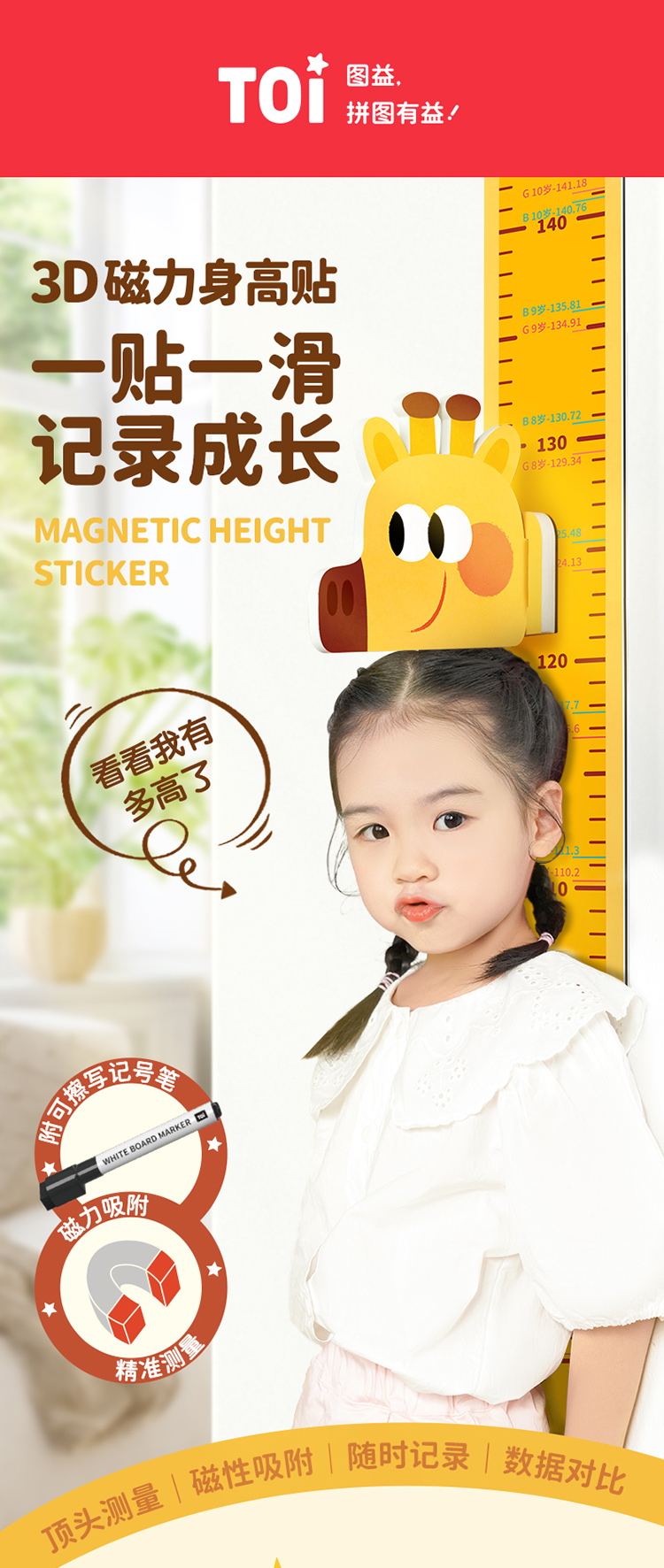TOI图益儿童磁力身高贴3d立体宝宝房可爱儿童磁力贴神器男孩女孩