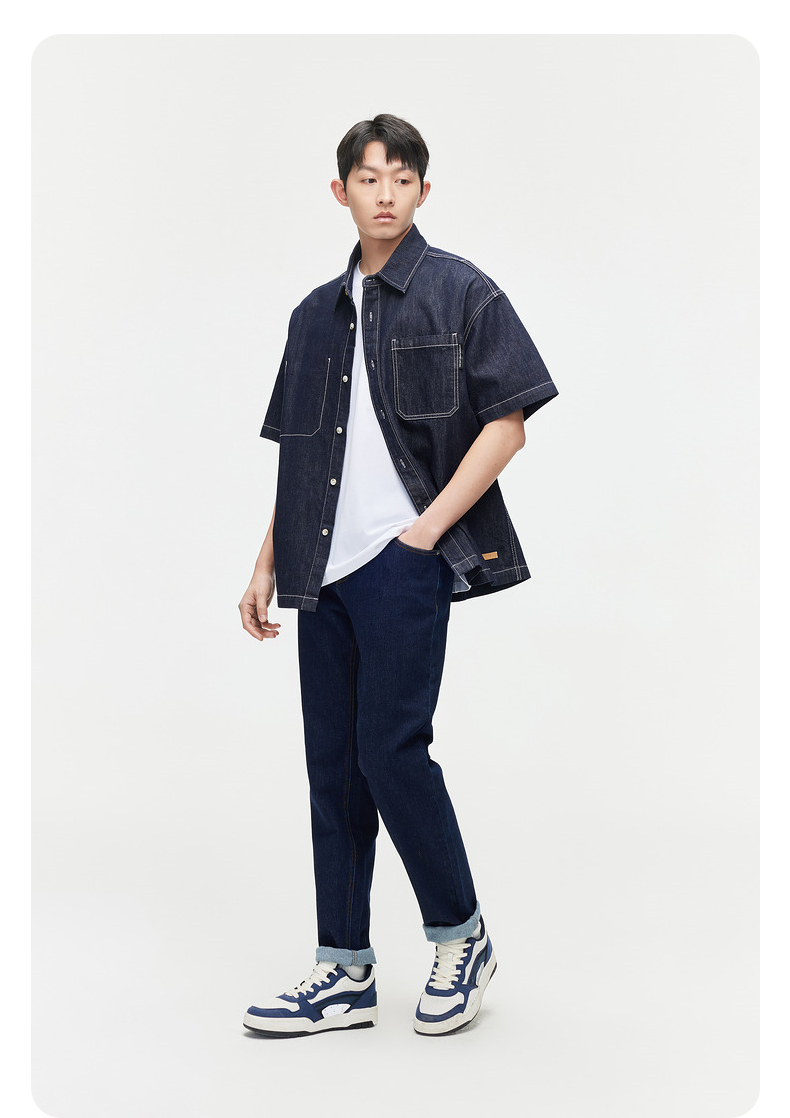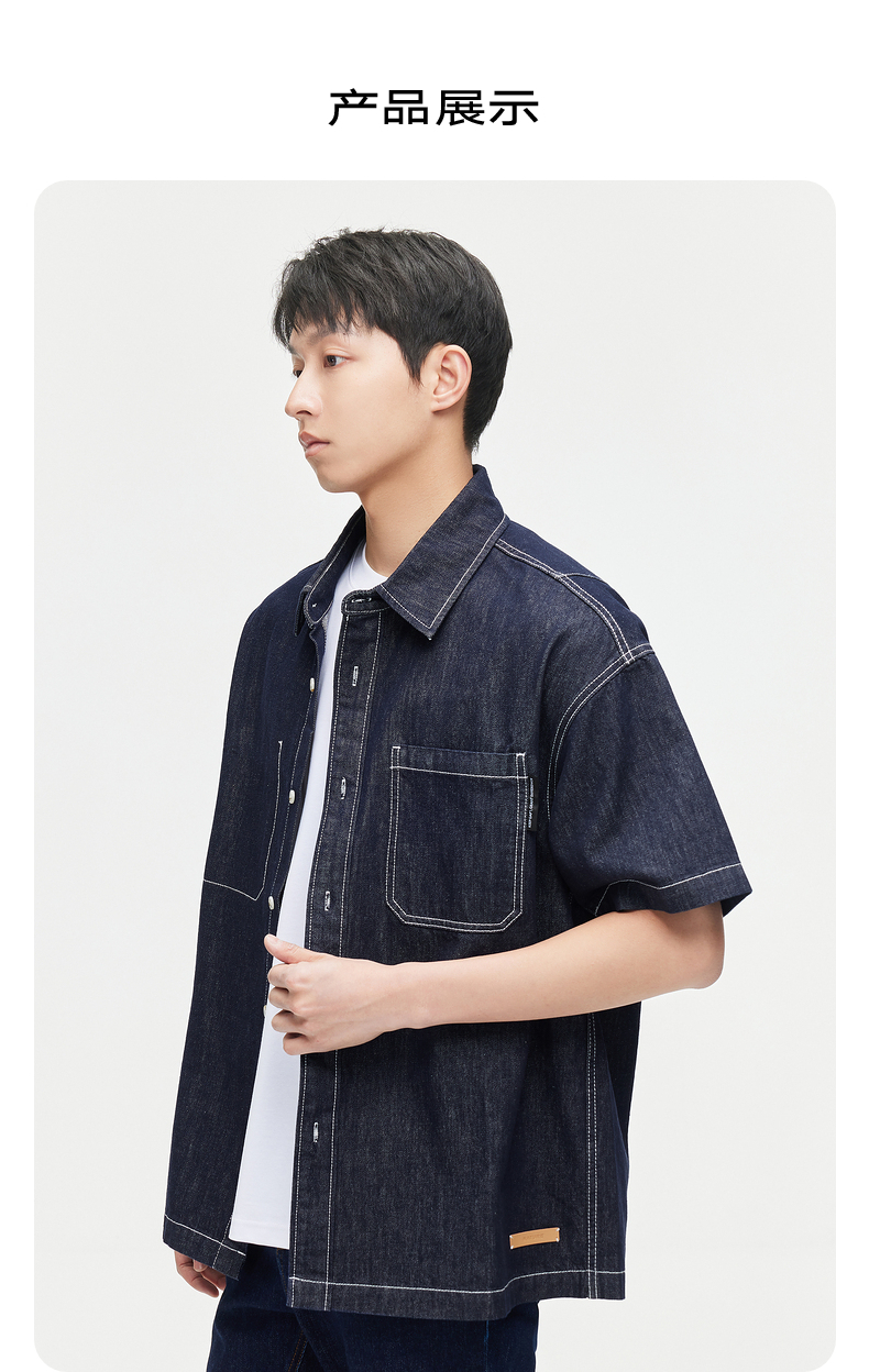 GXG夏季热卖休闲明线简约男士牛仔衬衫短袖衬衫男