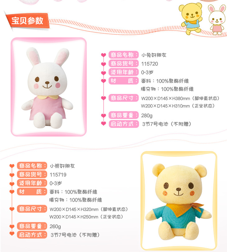 Combi康贝小熊兔兔好朋友系列男女儿童宝宝毛绒安抚玩具益智玩偶