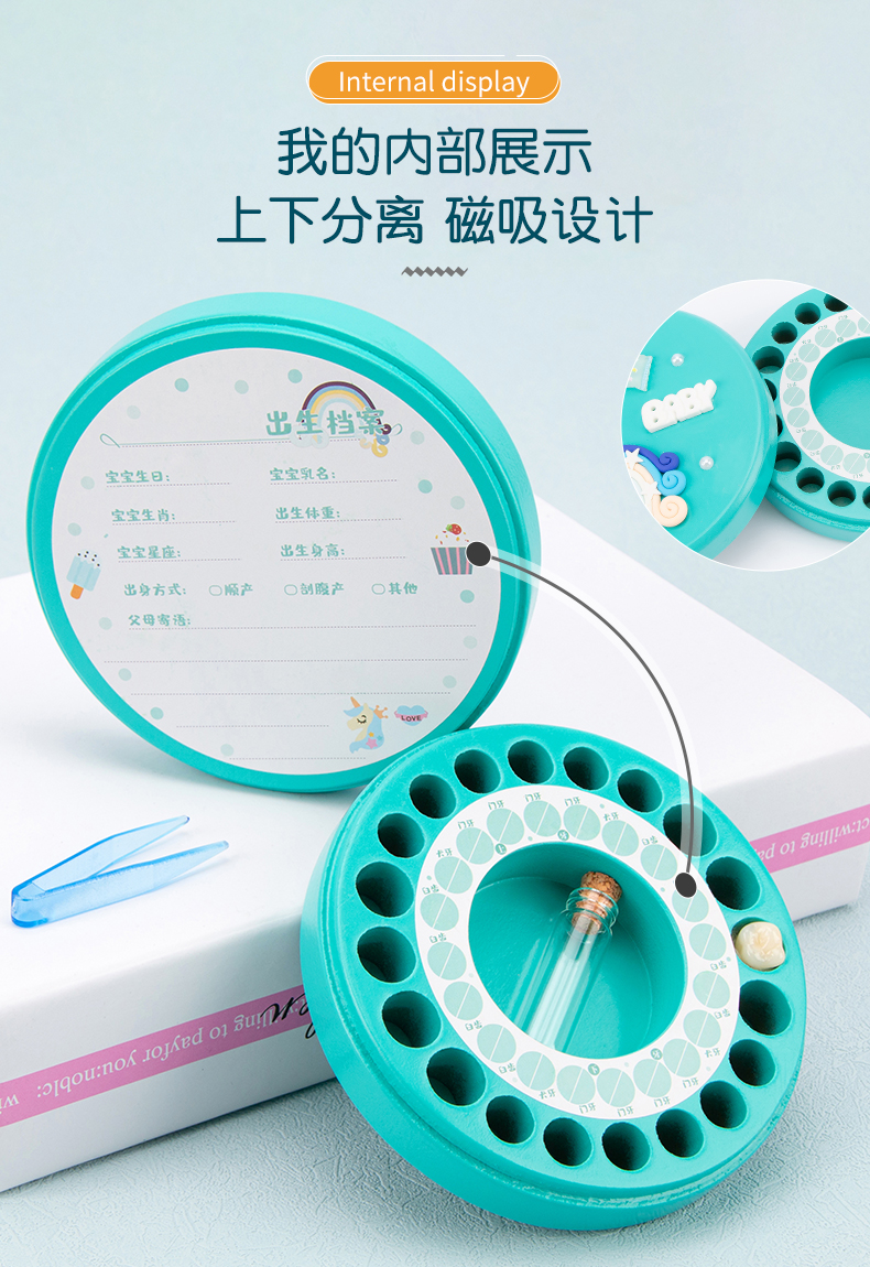 【记录孩子成长过程】儿童乳牙纪念盒 女孩乳牙盒 DIY木制宝宝掉换牙齿保存盒 手工制作 收纳保存 一盒多用