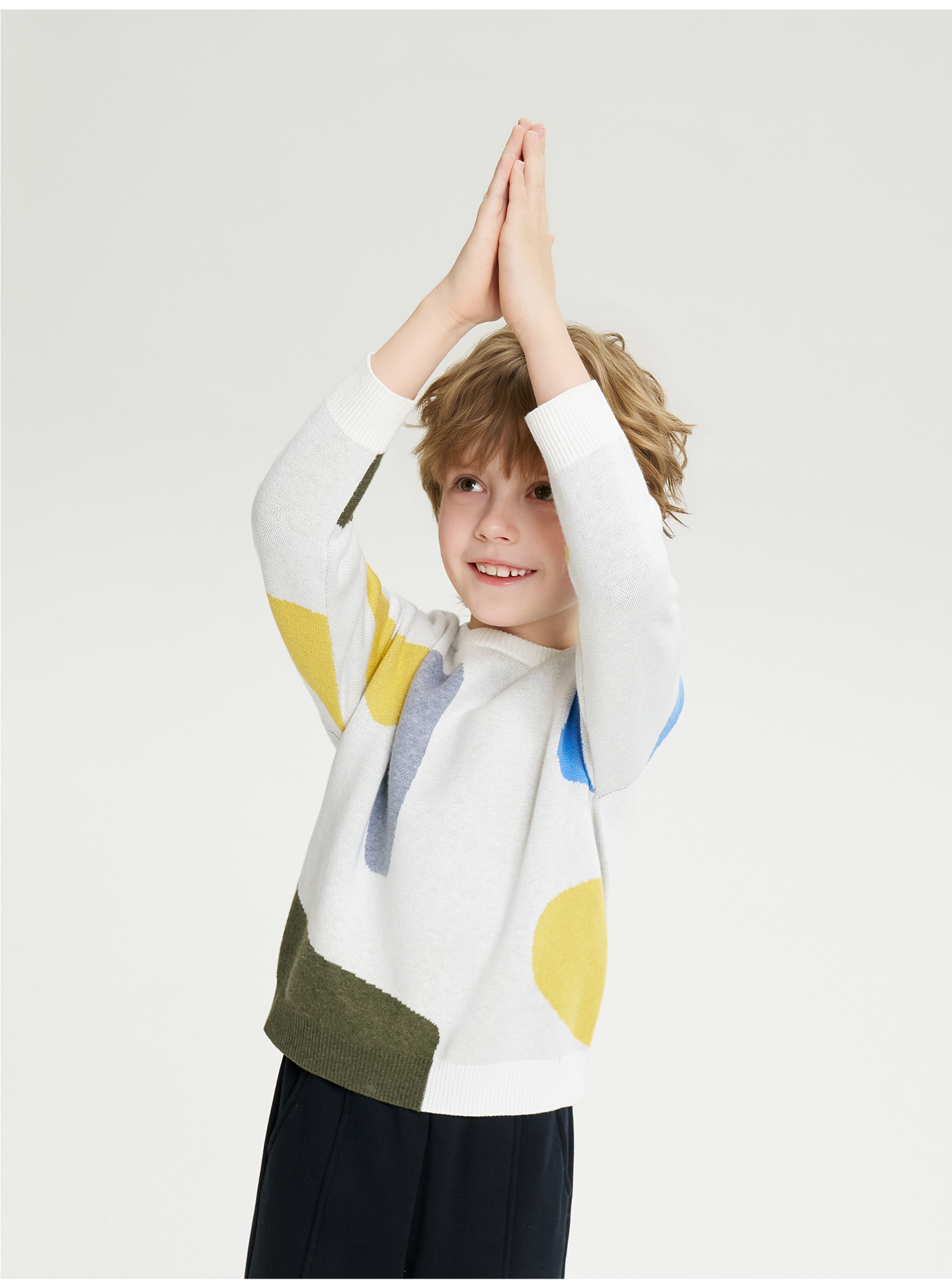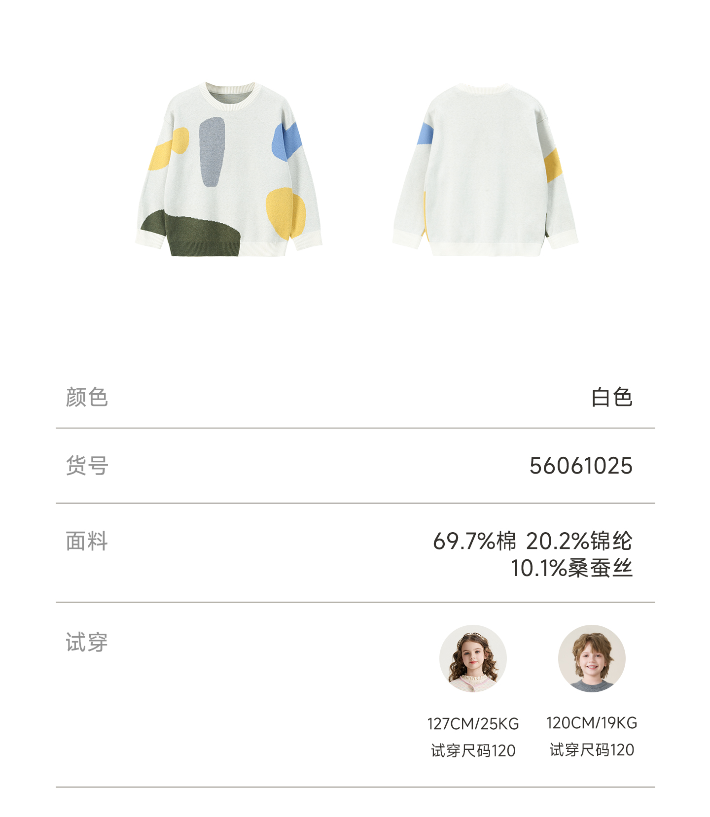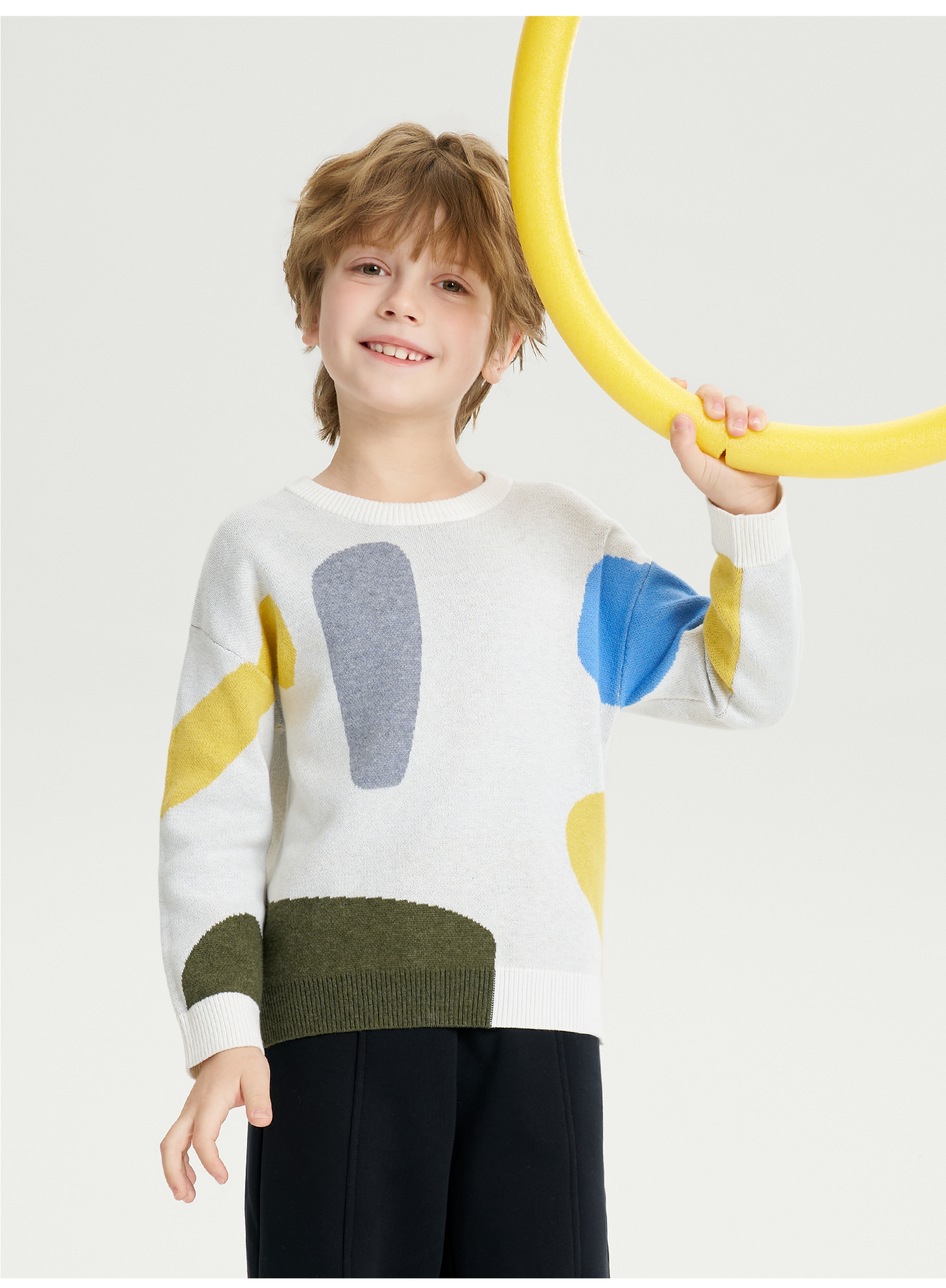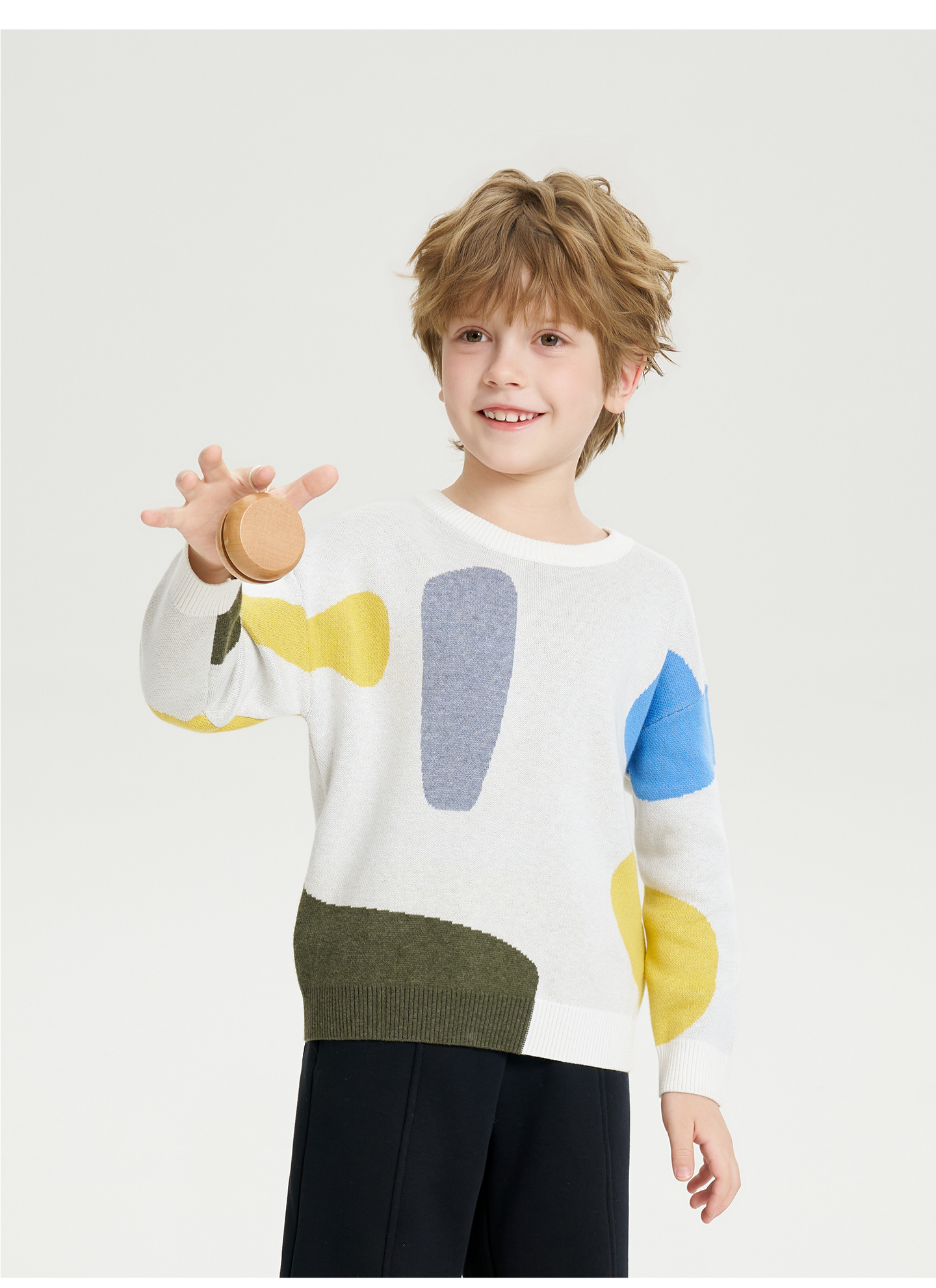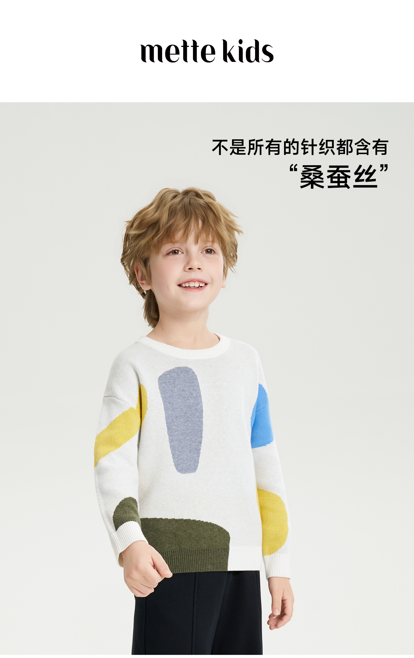 mettekids儿童针织衫2026春季新款男童几何撞色桑蚕丝混纺毛衣