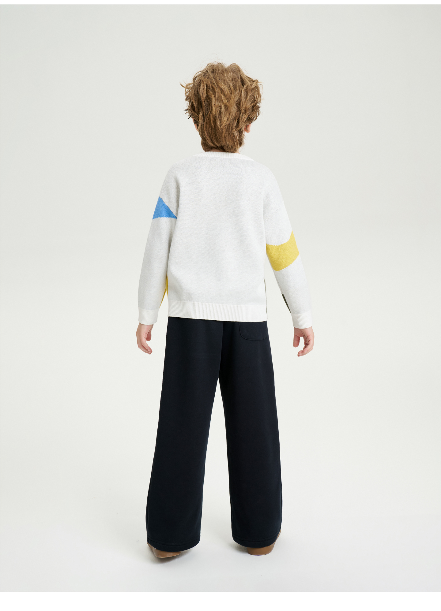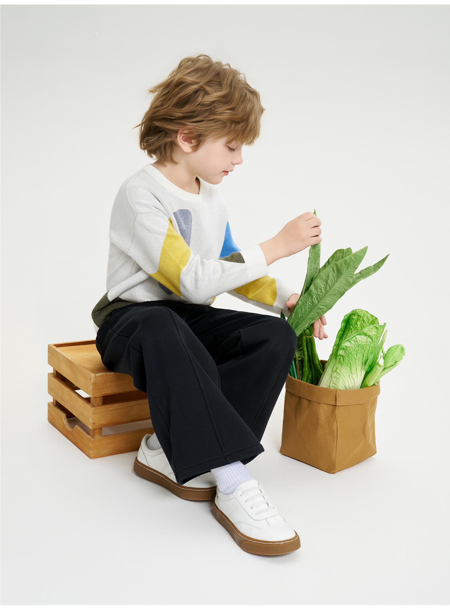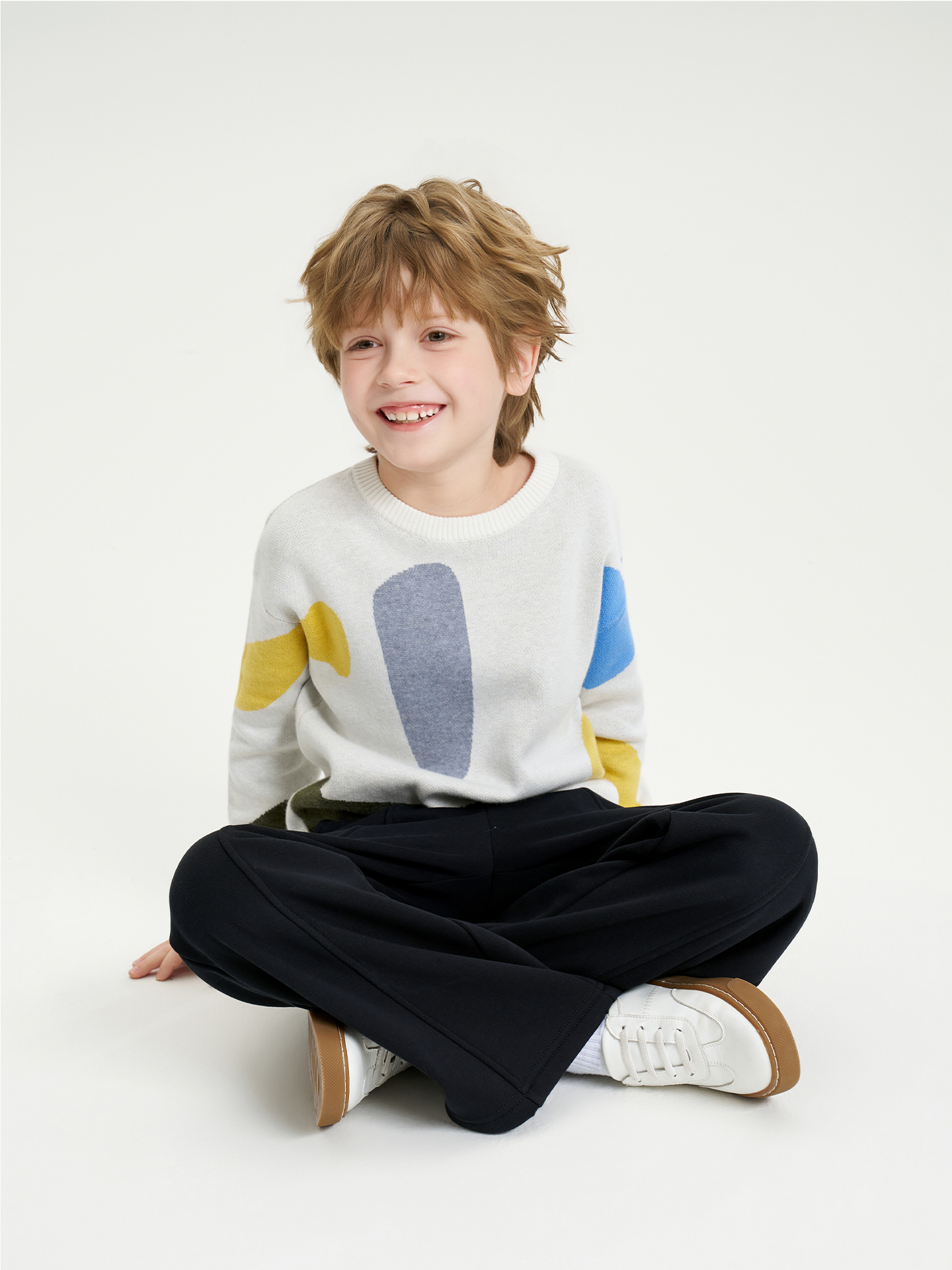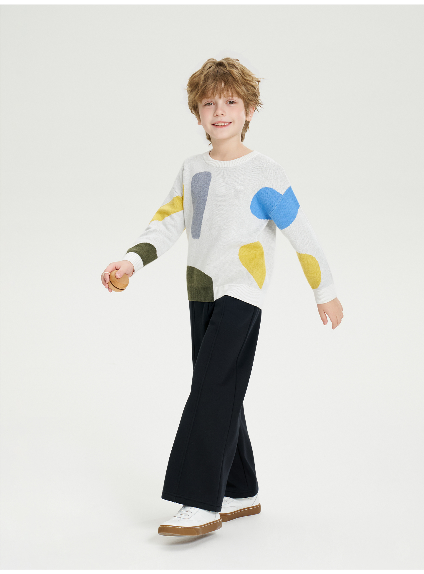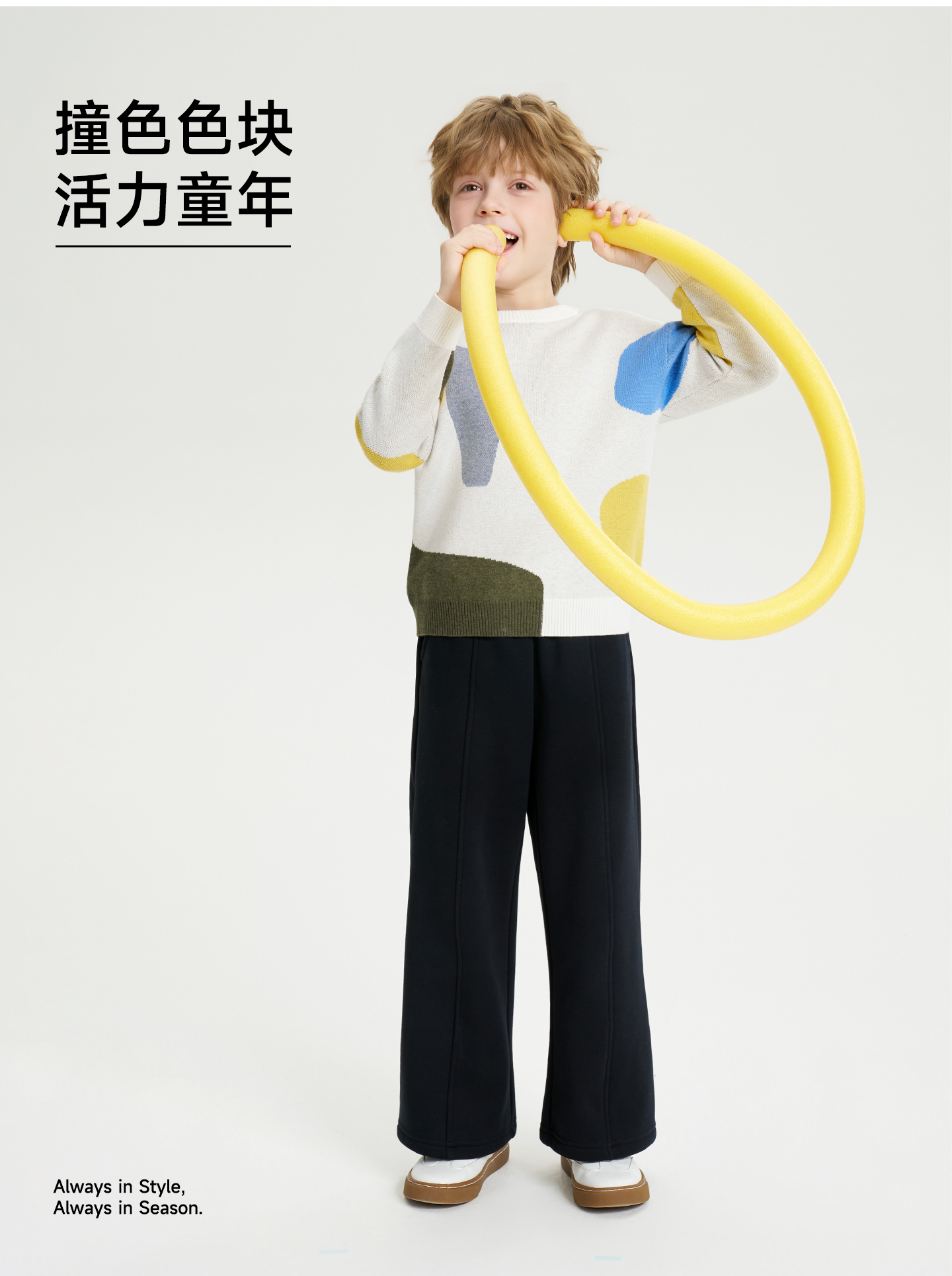 mettekids儿童针织衫2026春季新款男童几何撞色桑蚕丝混纺毛衣