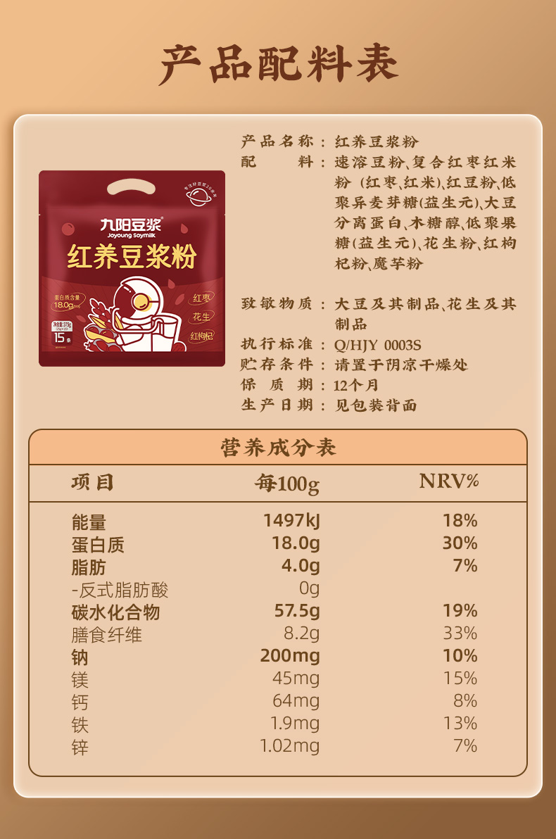【红养豆浆】九阳豆浆红养豆浆粉红枸杞红枣红花生红豆学生早餐