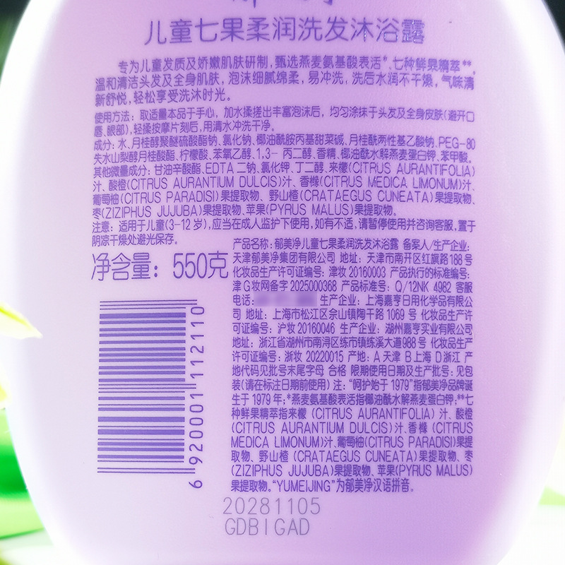【秒杀】郁美净七果柔润洗发沐浴露550g