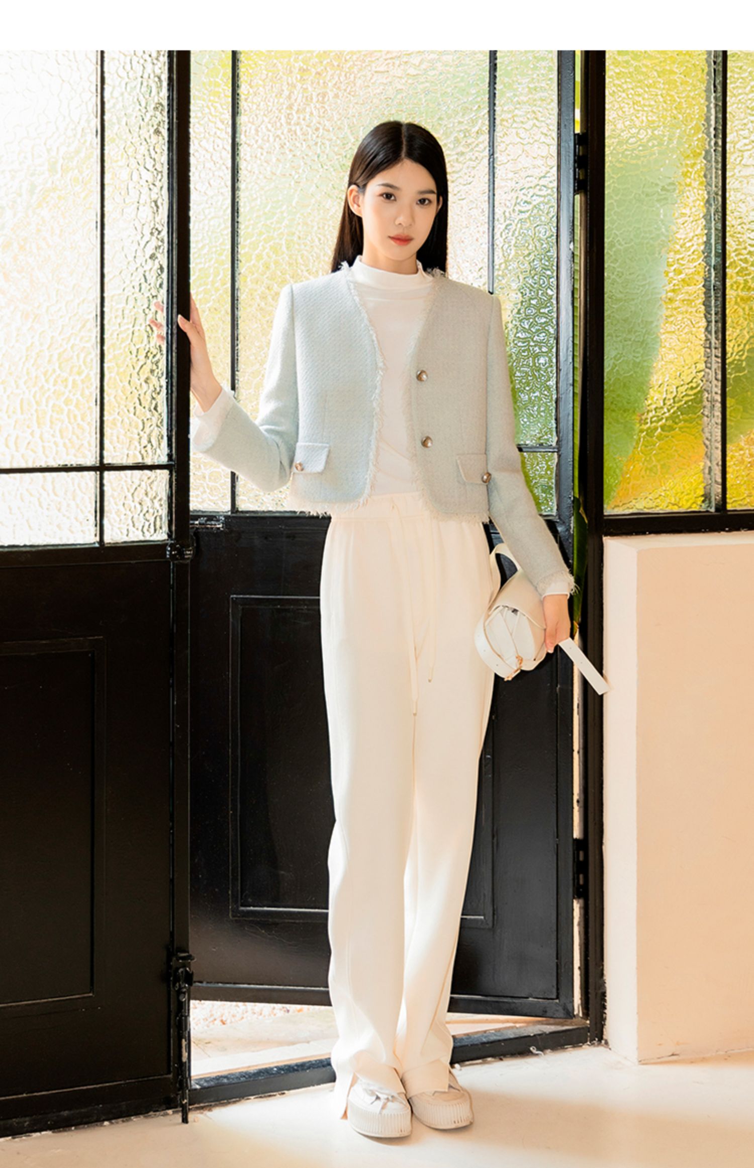 NUTS2023秋季新款垂感直筒小个子纯色窄版阔腿裤女4350701A1