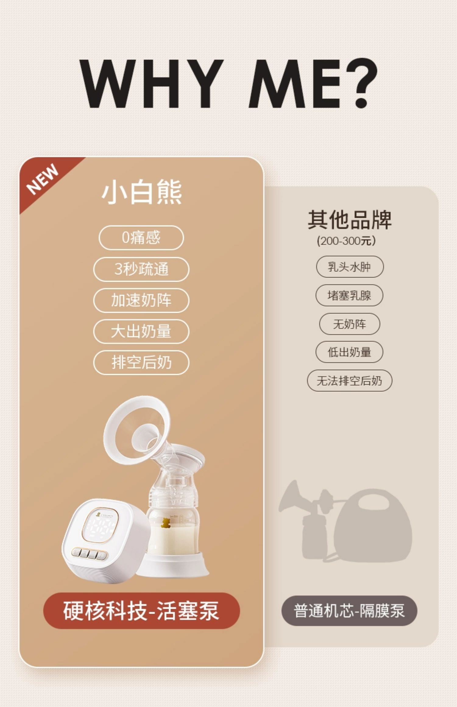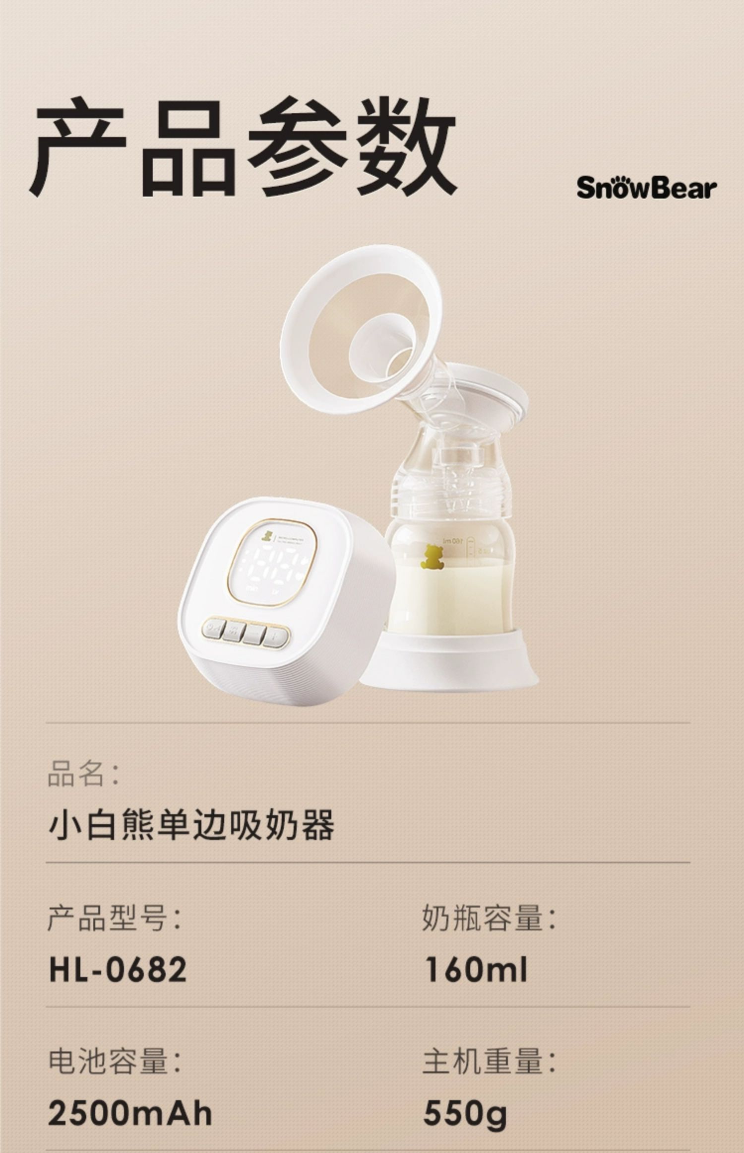 小白熊电动吸奶器拔奶器全自动产妇挤奶器吸力大静音丽影HL-0682