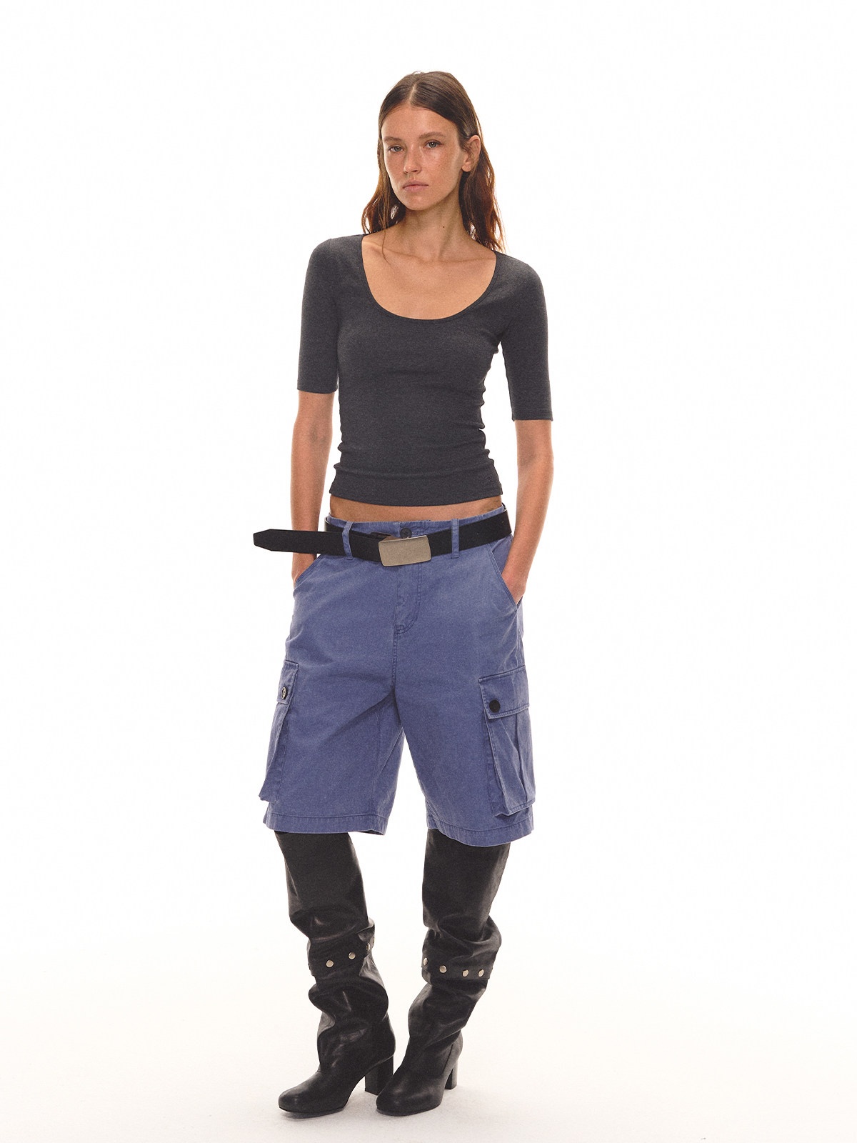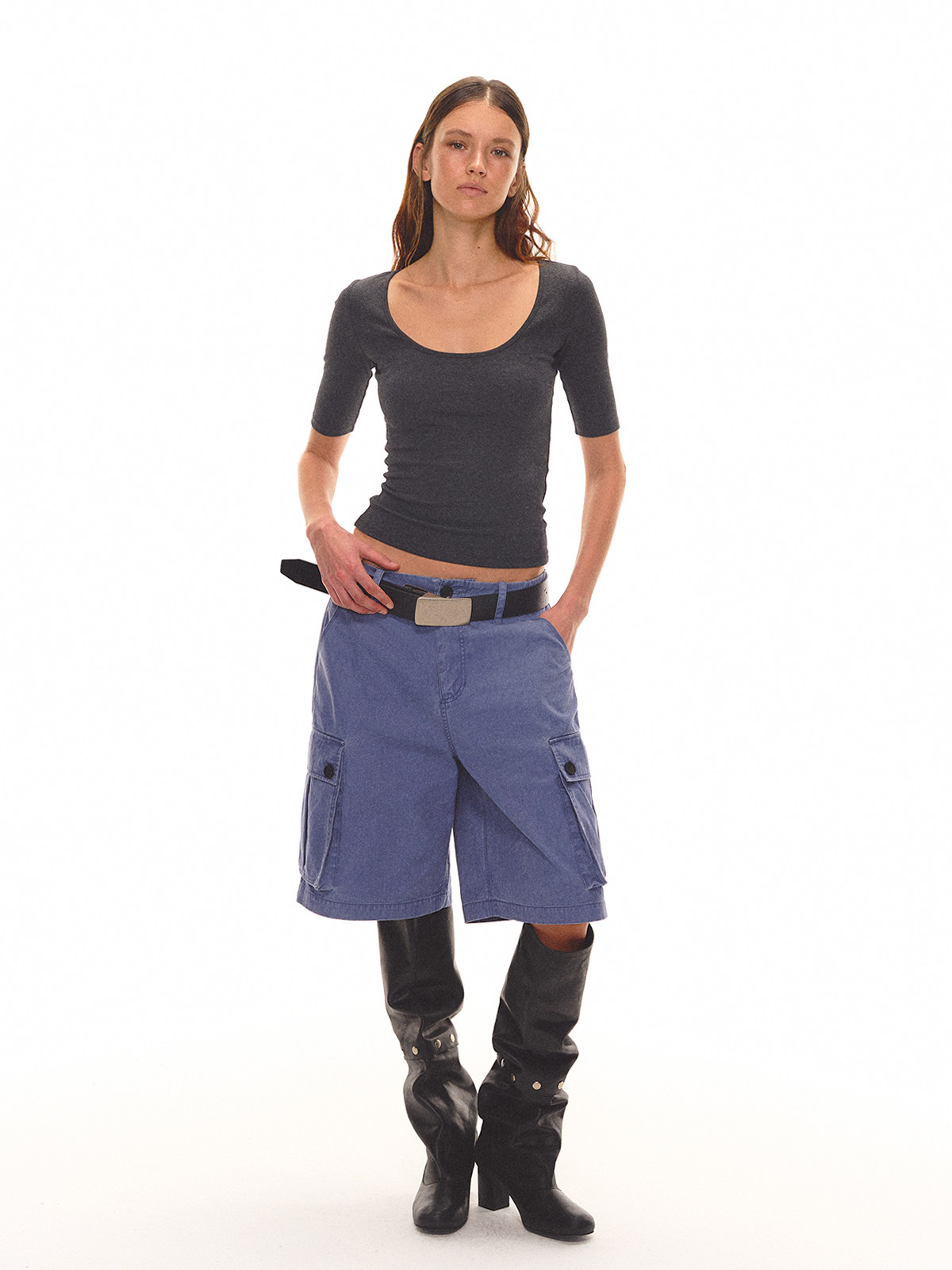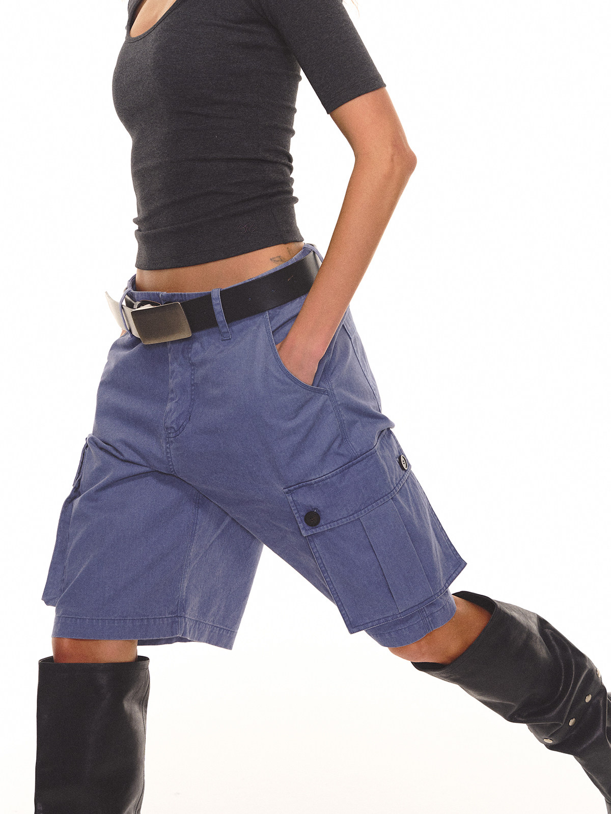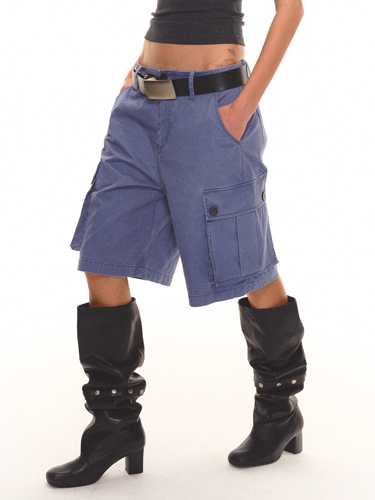 Evistub girls/E-6CDK1757/做旧工装中裤100%棉水洗复古