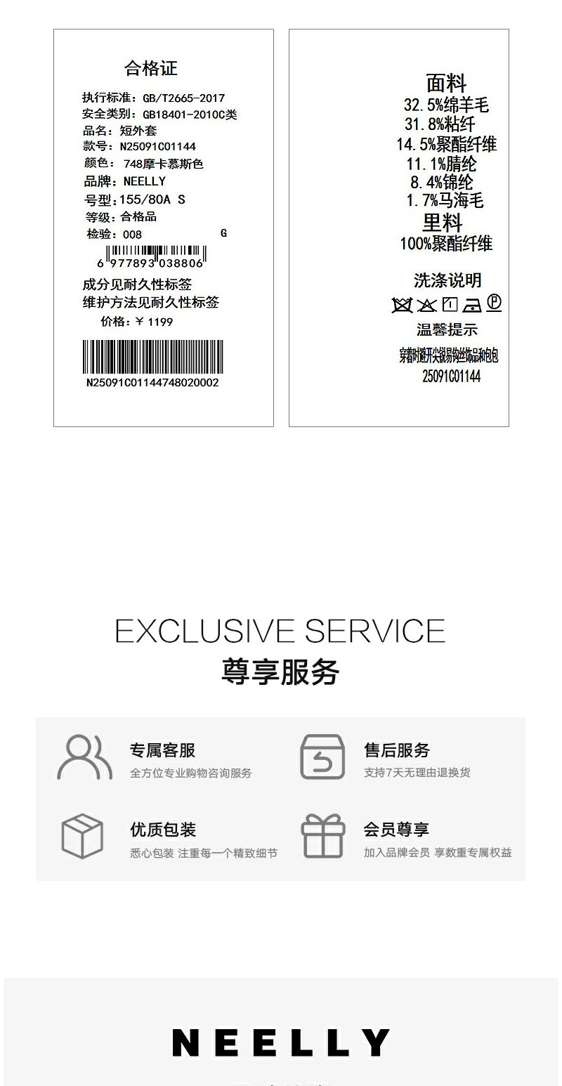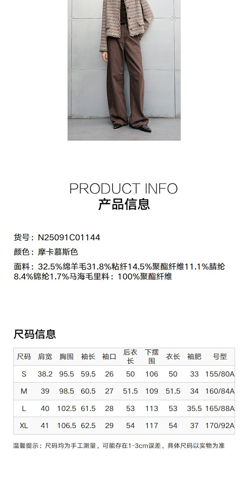 NEELLY纳俪商场同款秋冬新款复古时髦小香风外套女百搭气质上衣N25091C01144