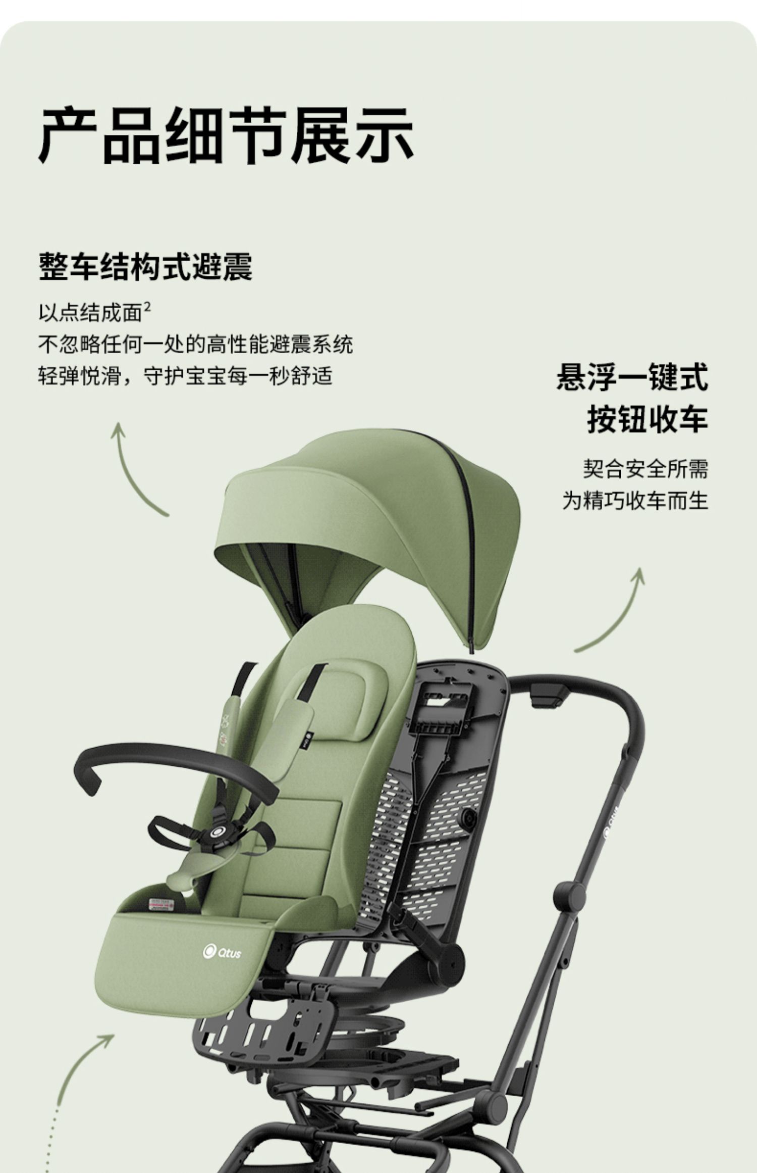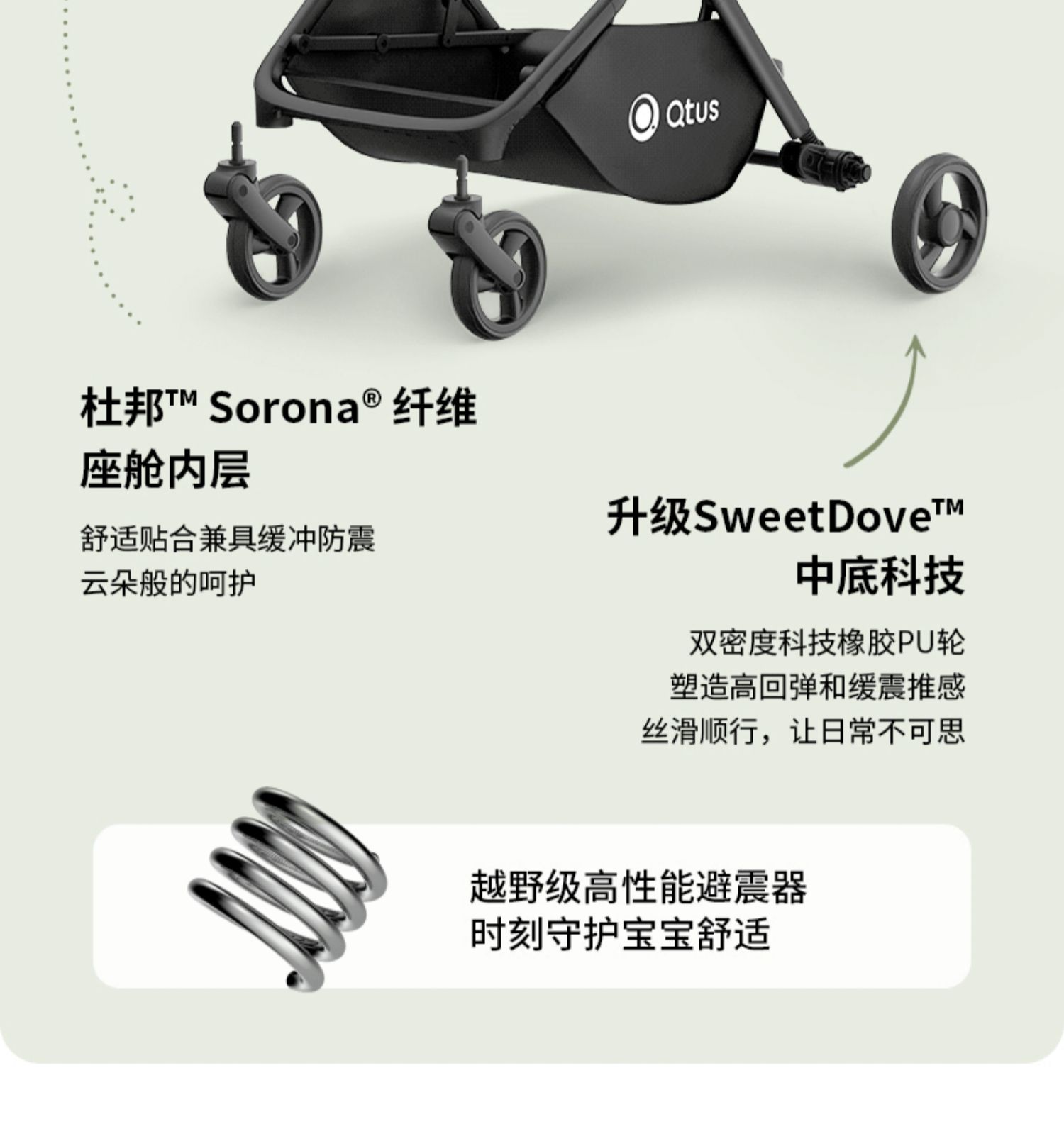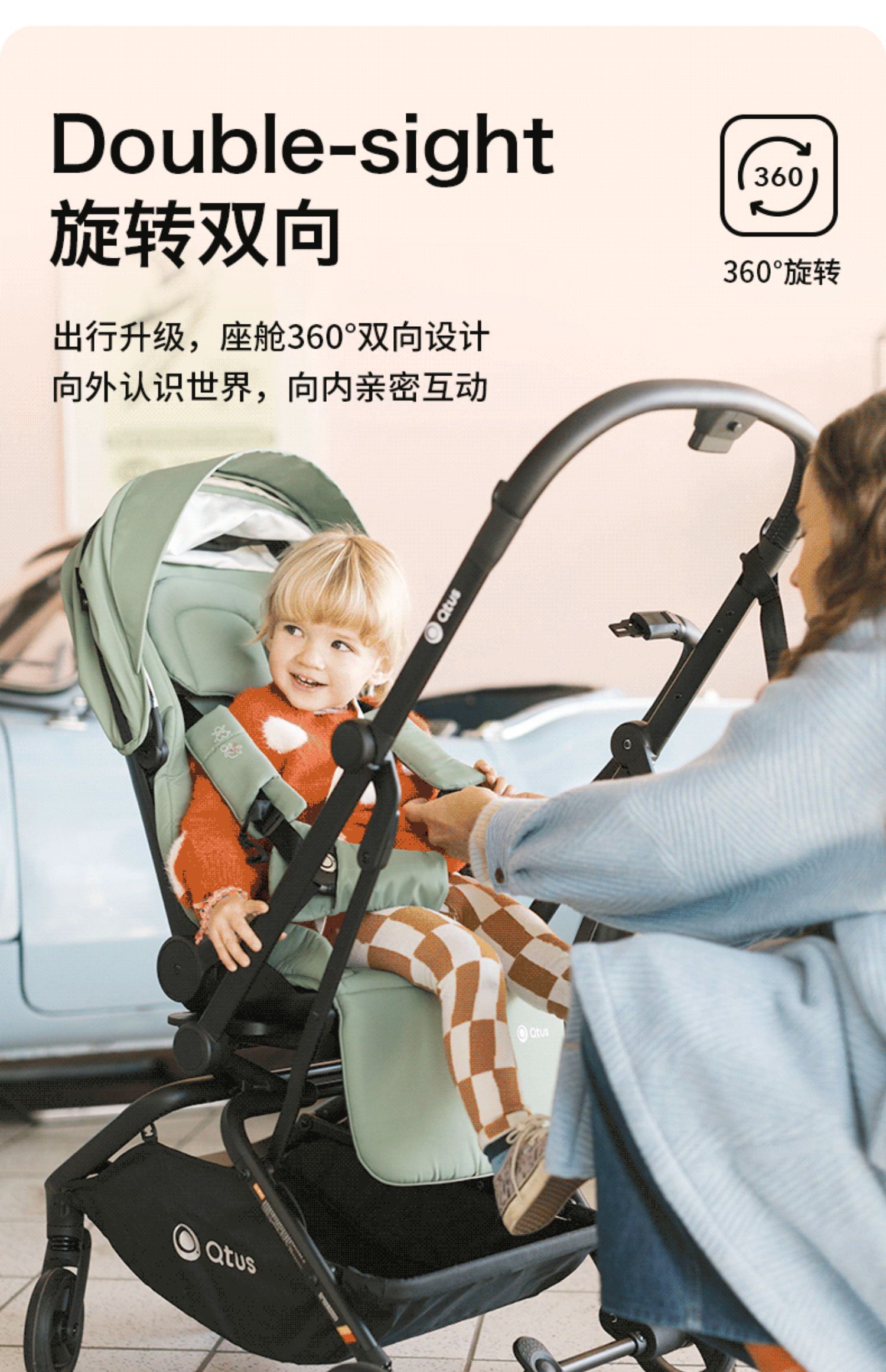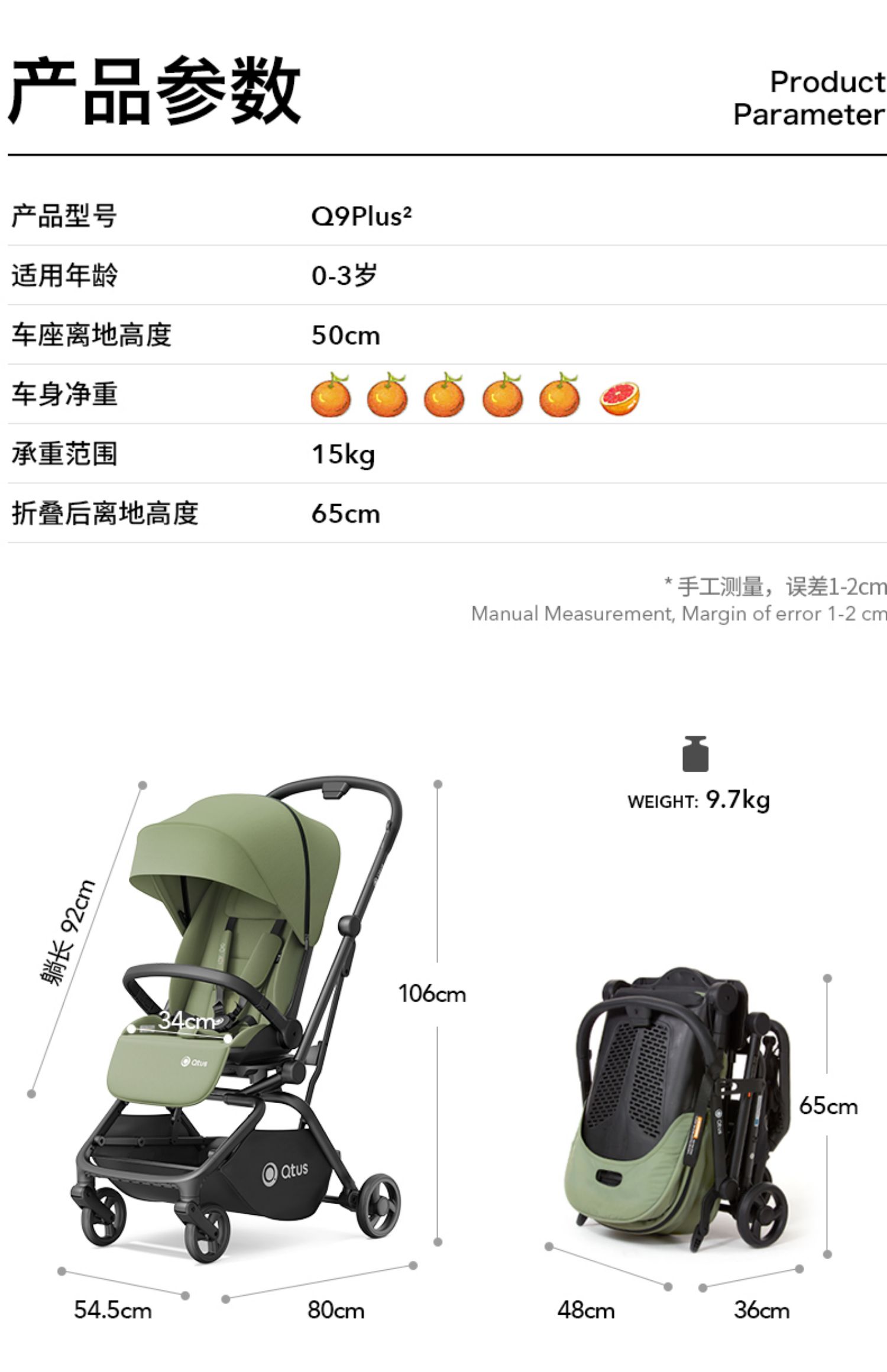 Qtus昆塔斯Q9plus2代婴儿推车双向宝宝新生护脊可坐可躺轻便折叠