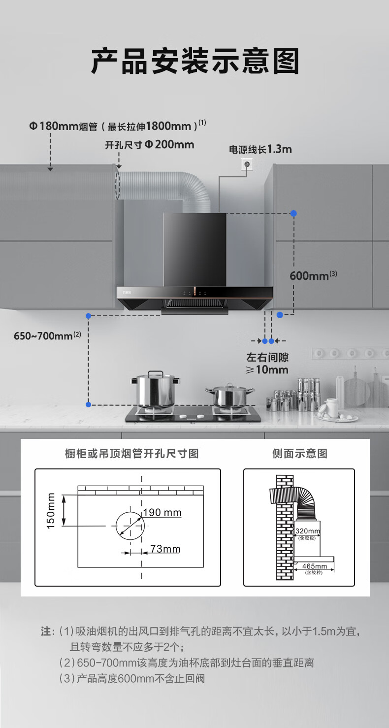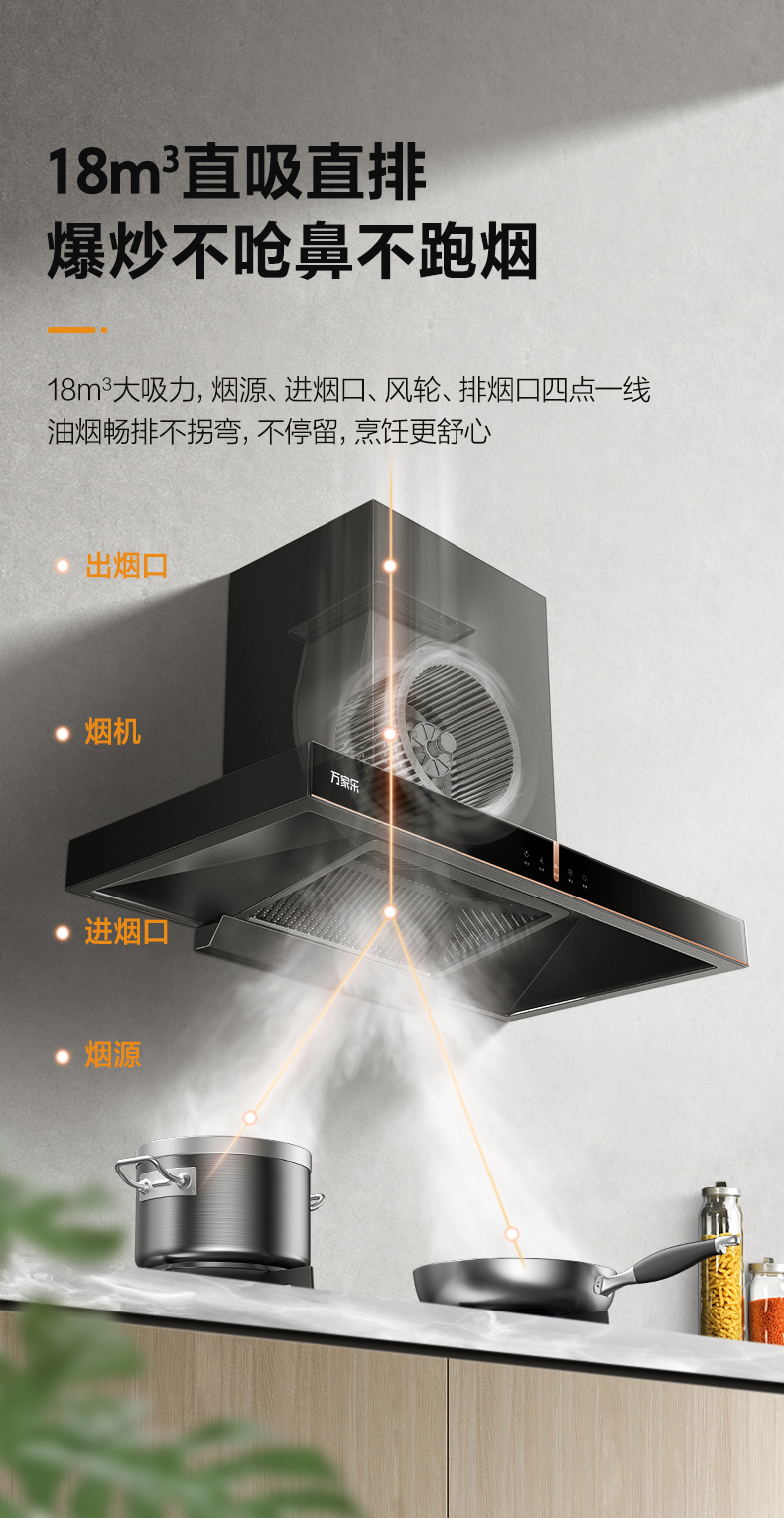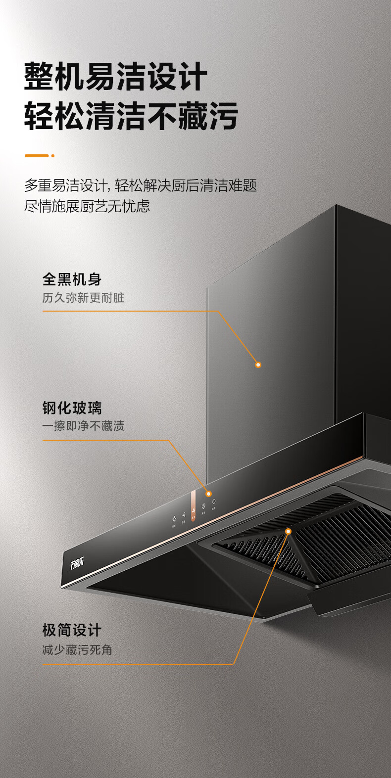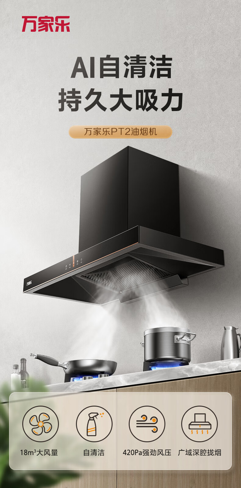 万家乐油烟机 18立方大吸力 钢化玻璃面板 自清洁 宽屏拢烟 持久大吸力欧式T型油烟机 CXW-300-PT2