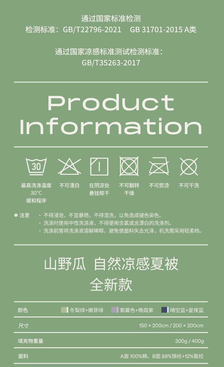 躺岛山野瓜自然凉感夏被空调被夏凉瓜瓜被子被芯轻薄透气双人吸汗