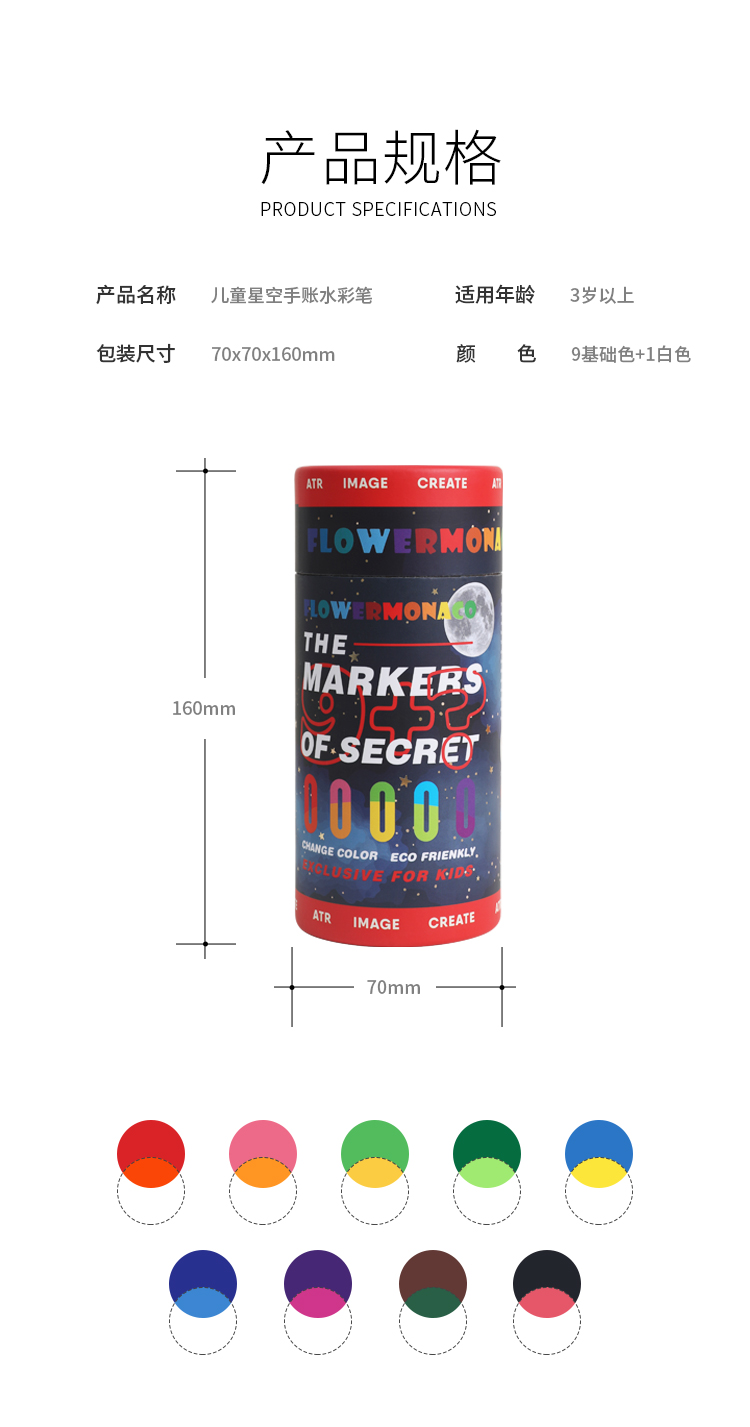 花芽星空手帐水彩笔,可变色 ,梦幻星空笔筒,收纳方便又美观~ 商品图5