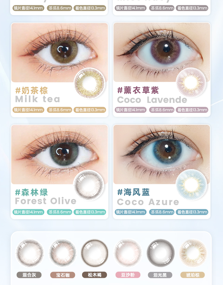 「3副均价56」WECUTE半年抛 中直径系列!栗子咖、豆豆黑、晴日棕、晴空蓝、马尔他蓝、泰式奶蓝、蜂窝奶茶