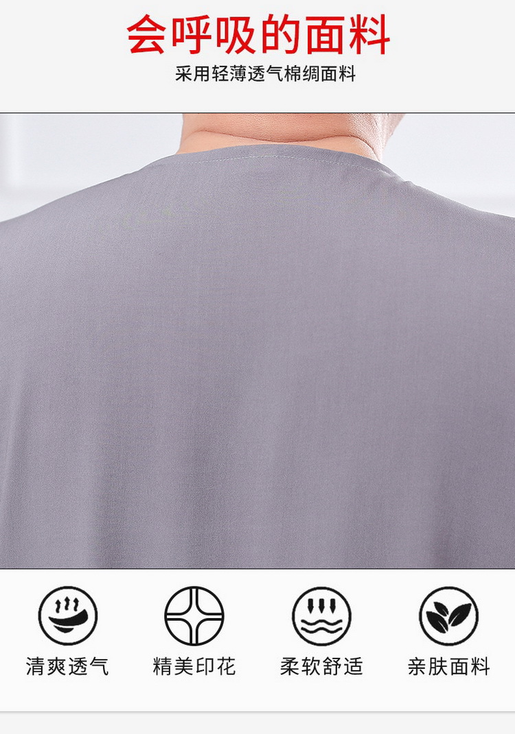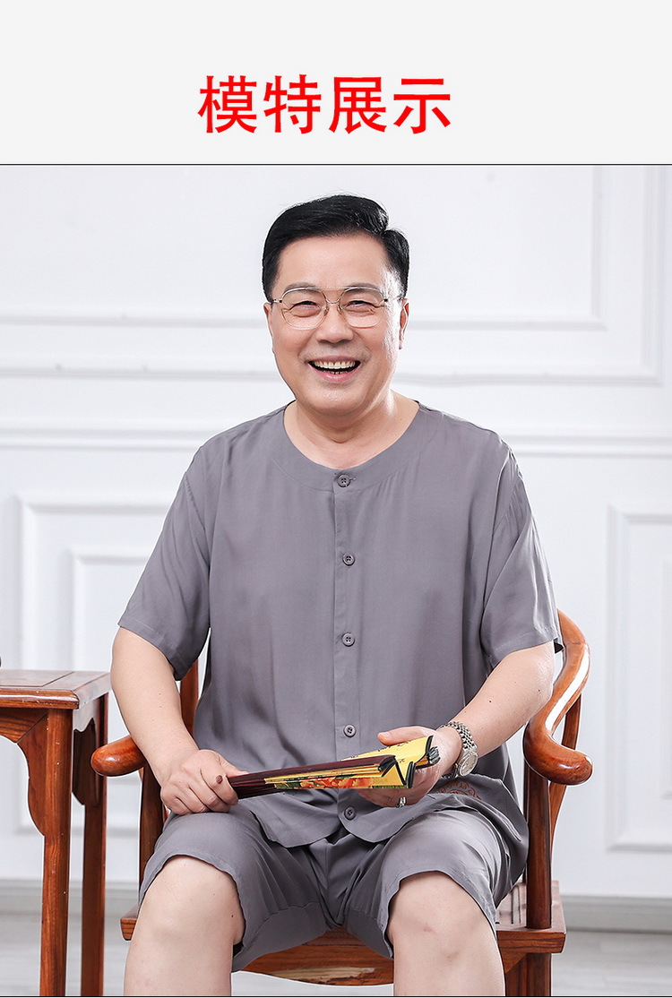 【中老年男士爸爸夏季开衫】短袖短裤棉绸套装 爷爷装人造棉家居服睡衣