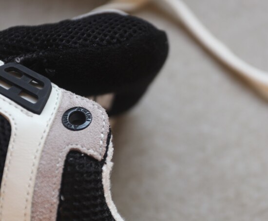 整体有小厚度 鞋面是网面+牛皮 里面是一层厚实的毛巾料