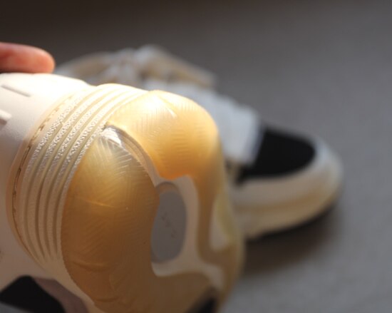 与 鞋型的厚实程度相比 上脚并不是很沉 因为大底轻量化 发泡与Tpu组合