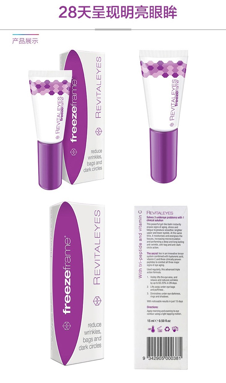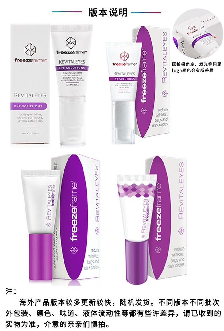 【新西兰直邮】澳洲freezeframe眼霜15ml 生物多胜肽 提拉紧致去眼袋黑眼圈JPY带授权招加盟代理