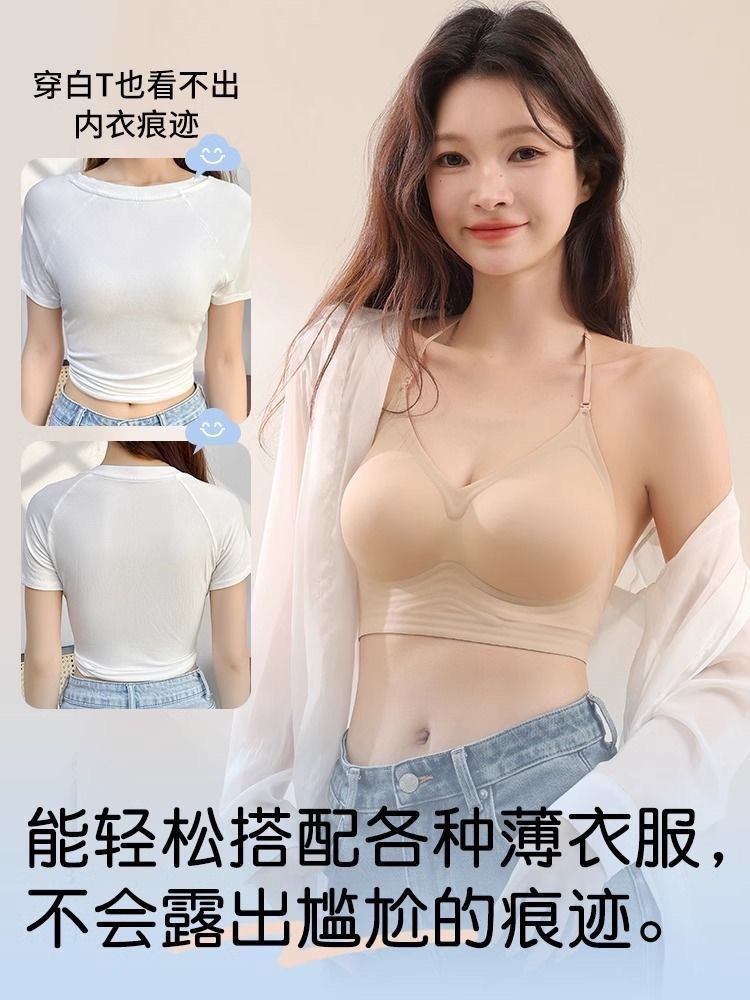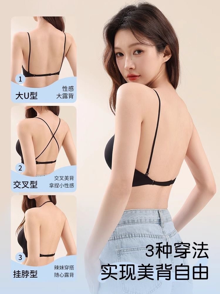 超值两件,可任选【隐形无痕❗美背聚拢】细肩带内衣女细肩带聚拢大露背隐形无痕粉底液挂脖一体式文胸罩。ri