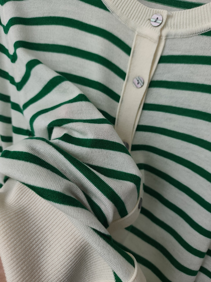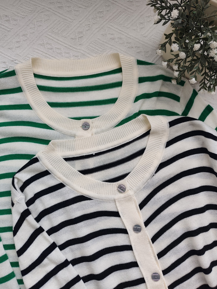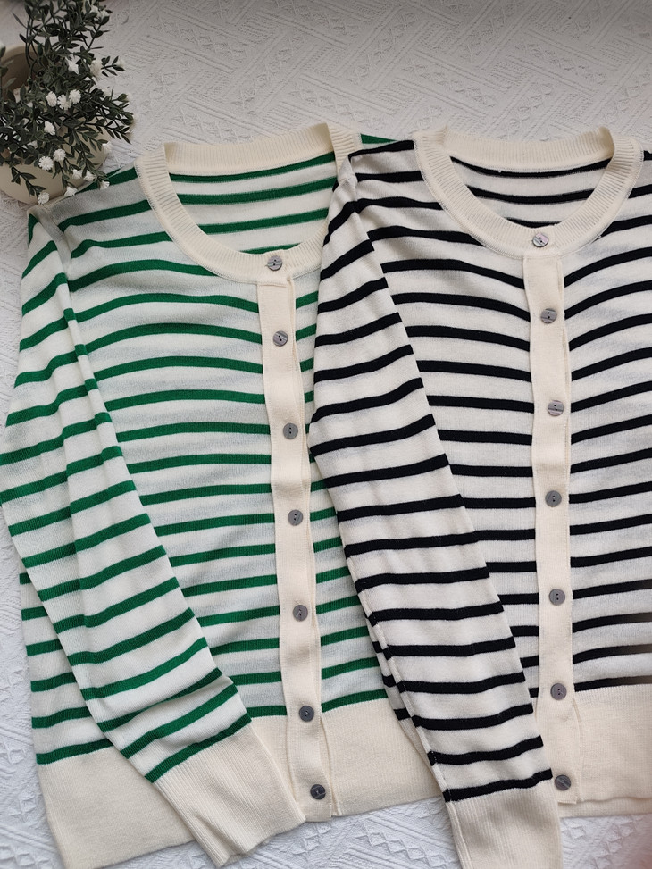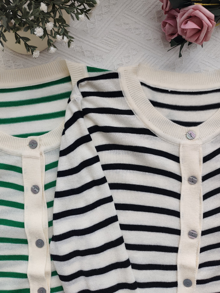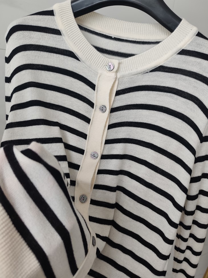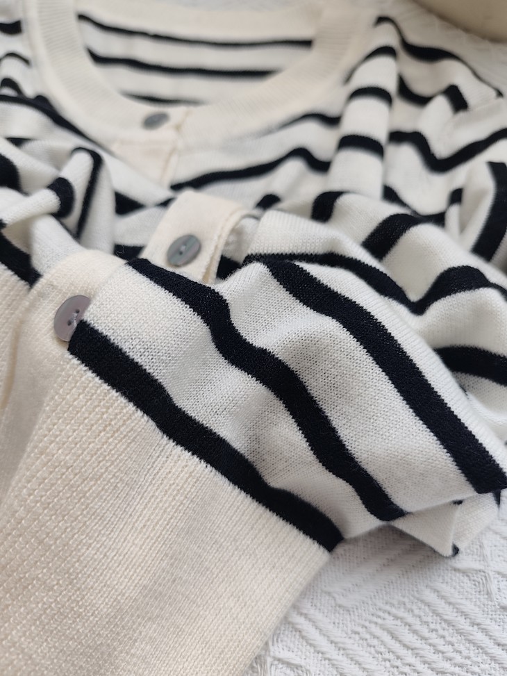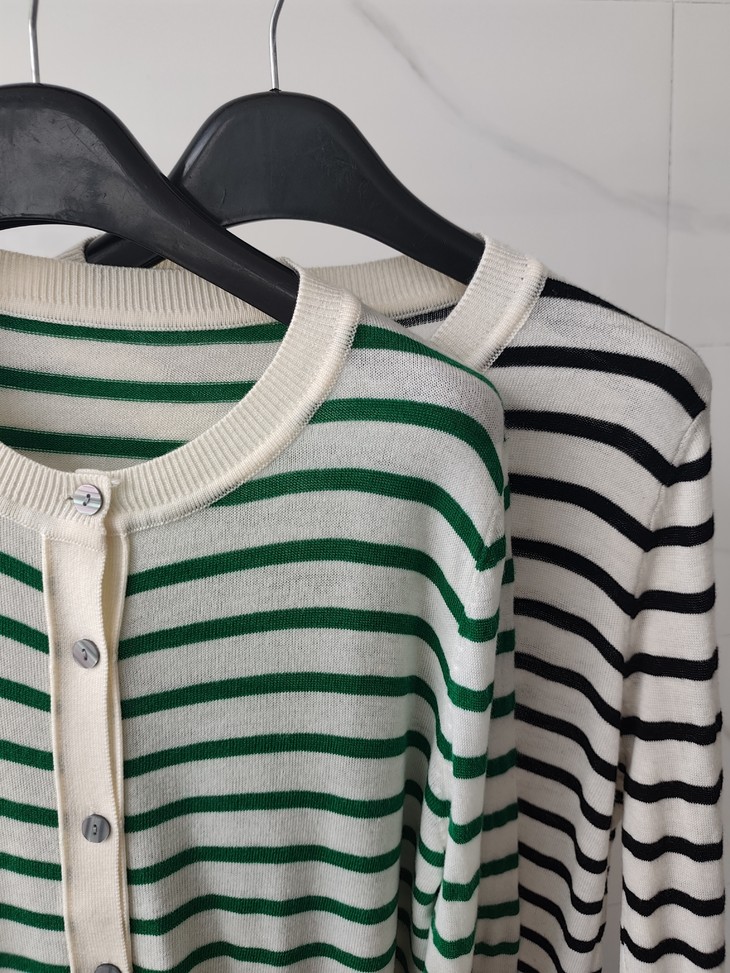 MOMOTIABIN翻领撞色条纹精纺针织开衫HJZXZ153