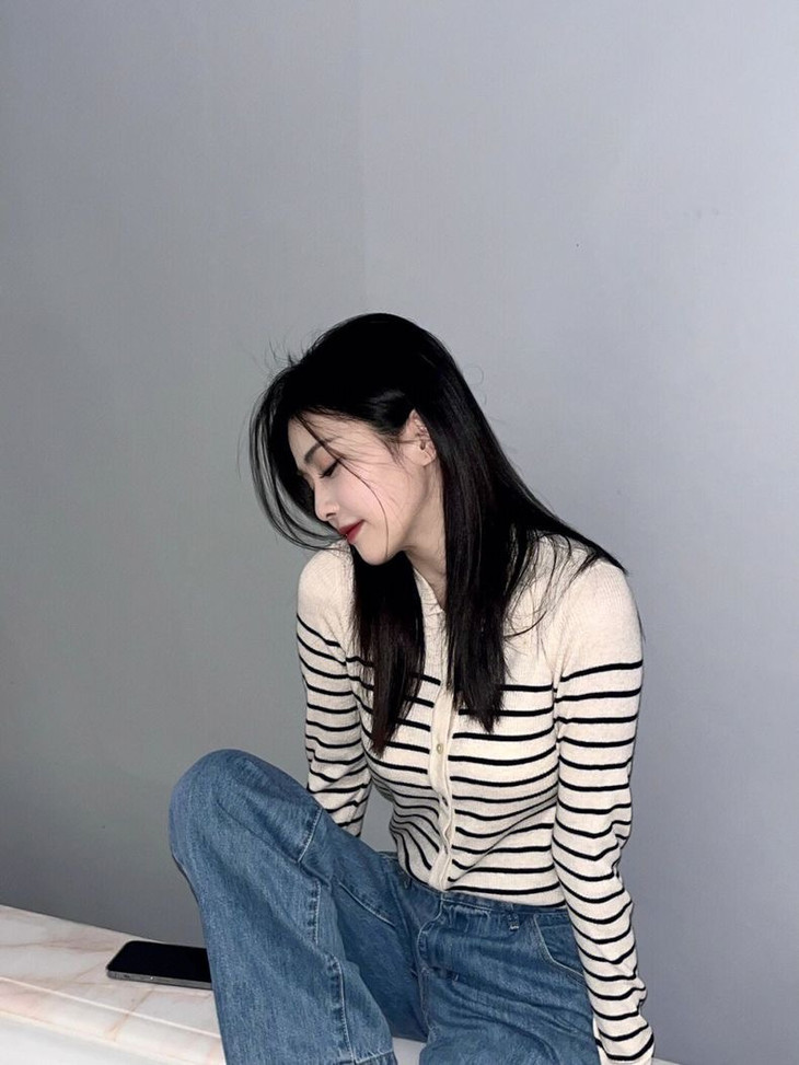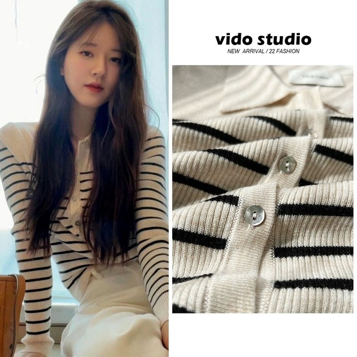🔸 【翻领撞色条纹精纺针织开衫HJZXZ153】初秋来袭🔥法式双股精纺羊毛开衫!白*鹿同款❗慵懒风针织开衫❗私服专场 品味满满 品质从没输过!