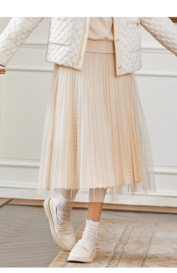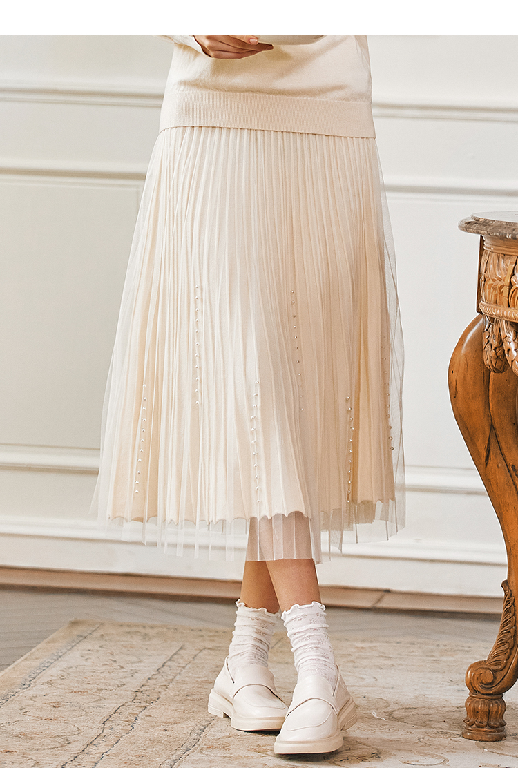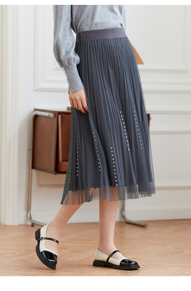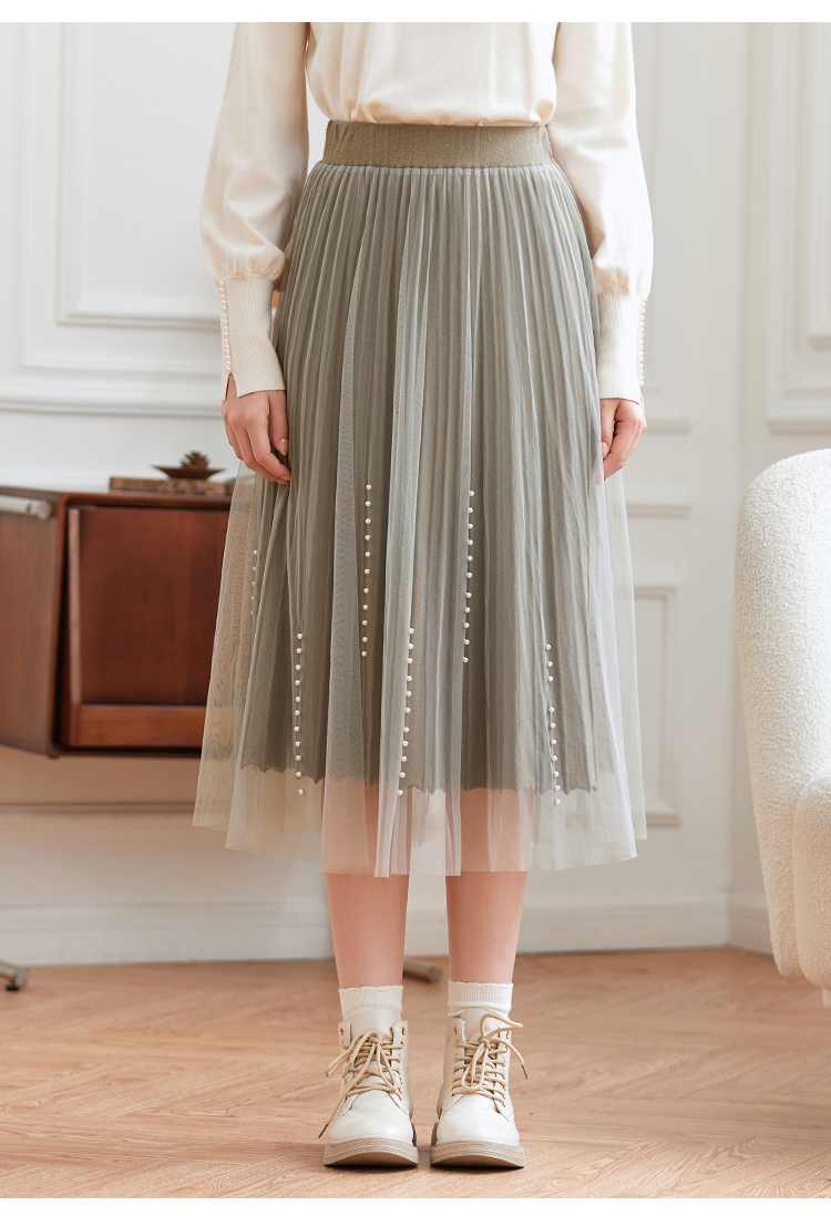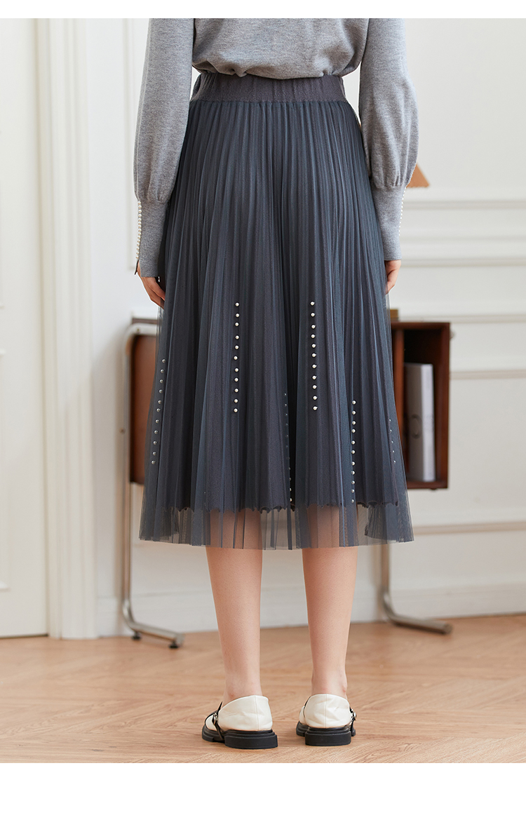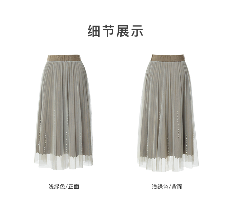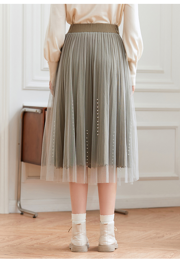 Famecoco范可儿松紧腰半身纱裙秋冬中长款FAB8HA023