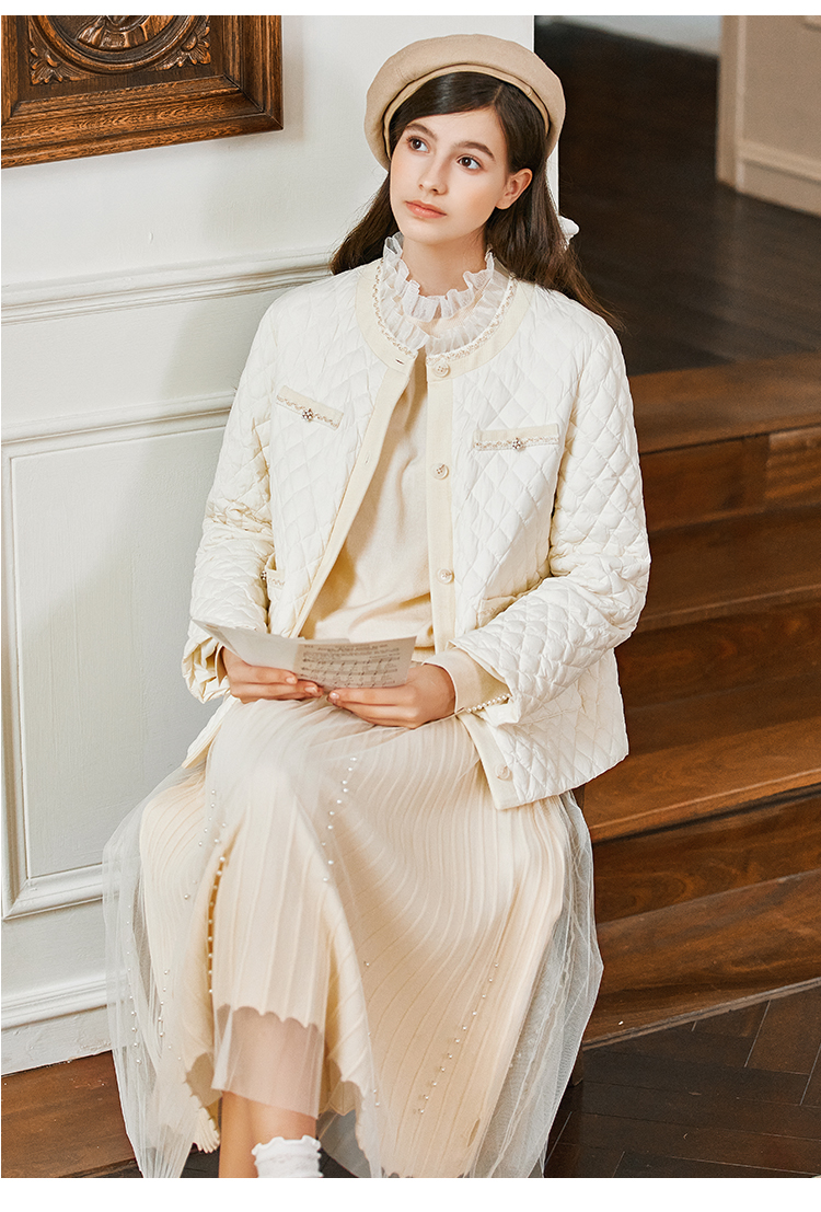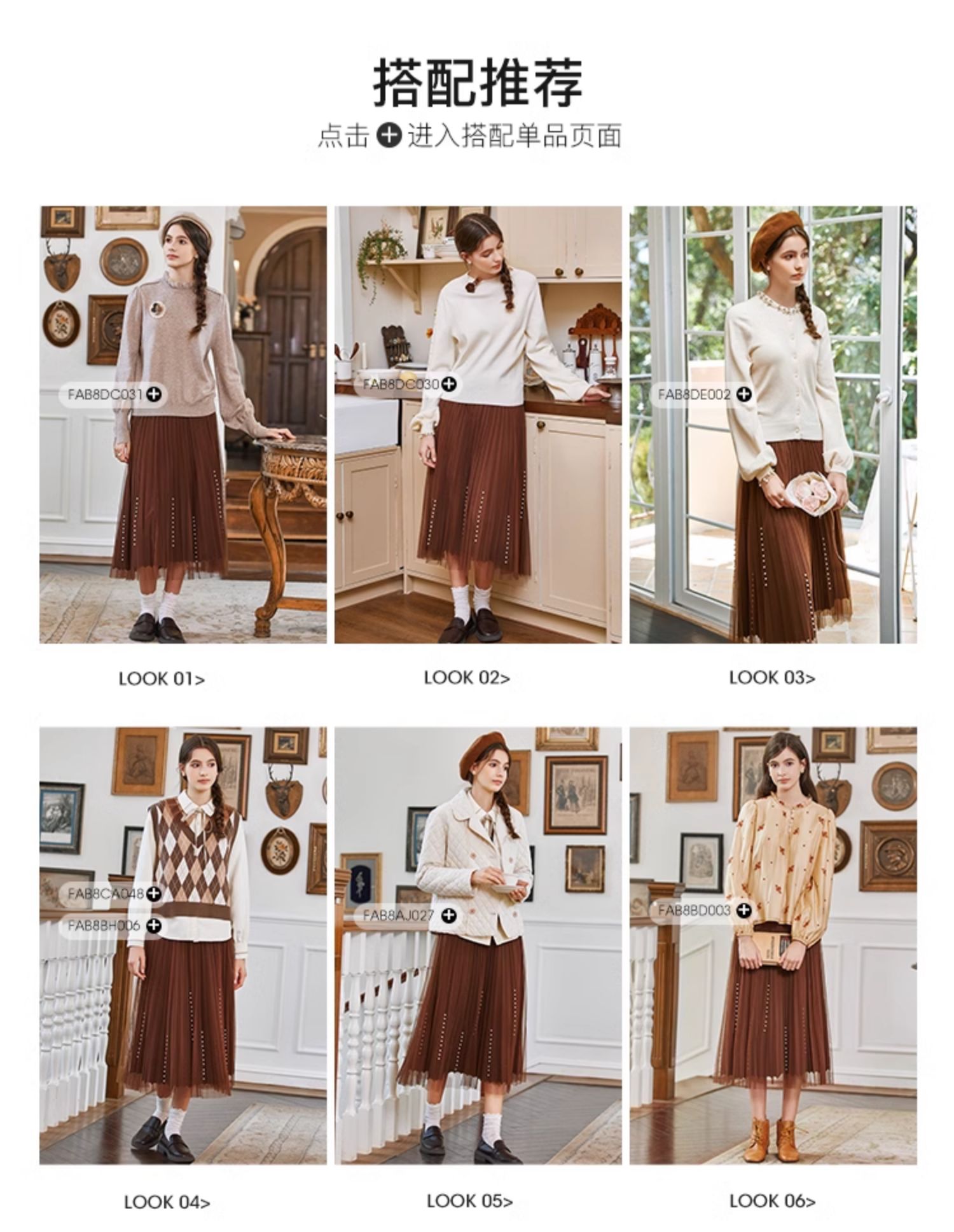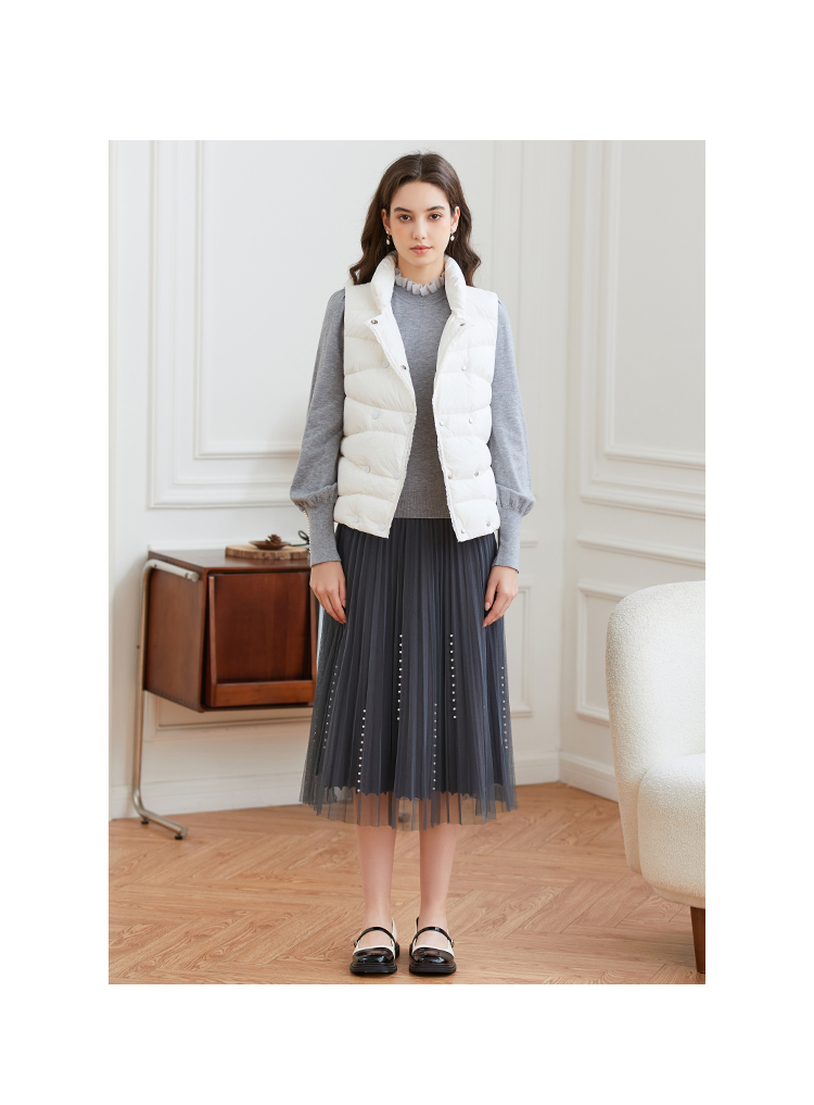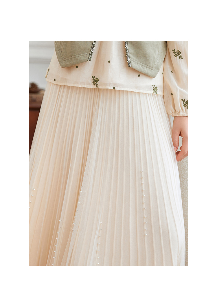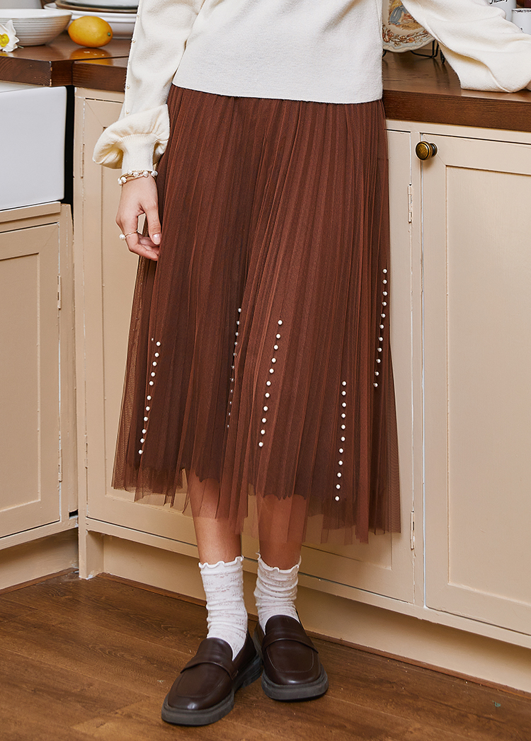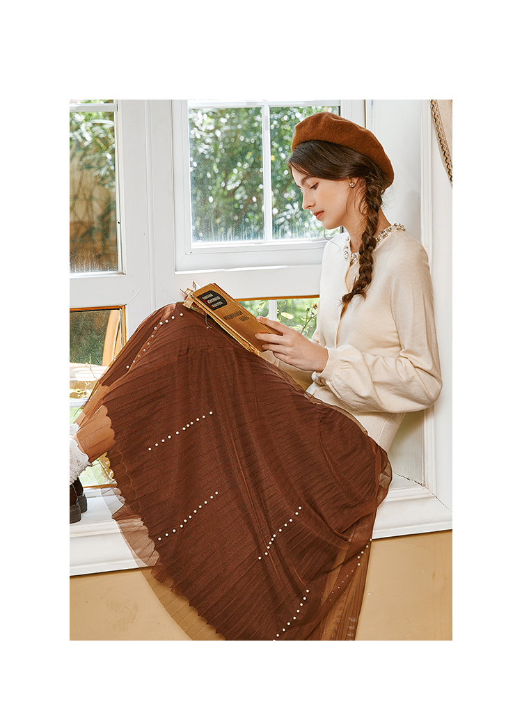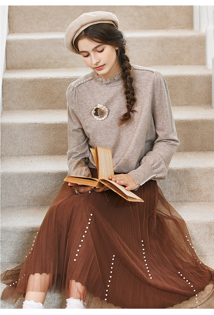 Famecoco范可儿松紧腰半身纱裙秋冬中长款FAB8HA023