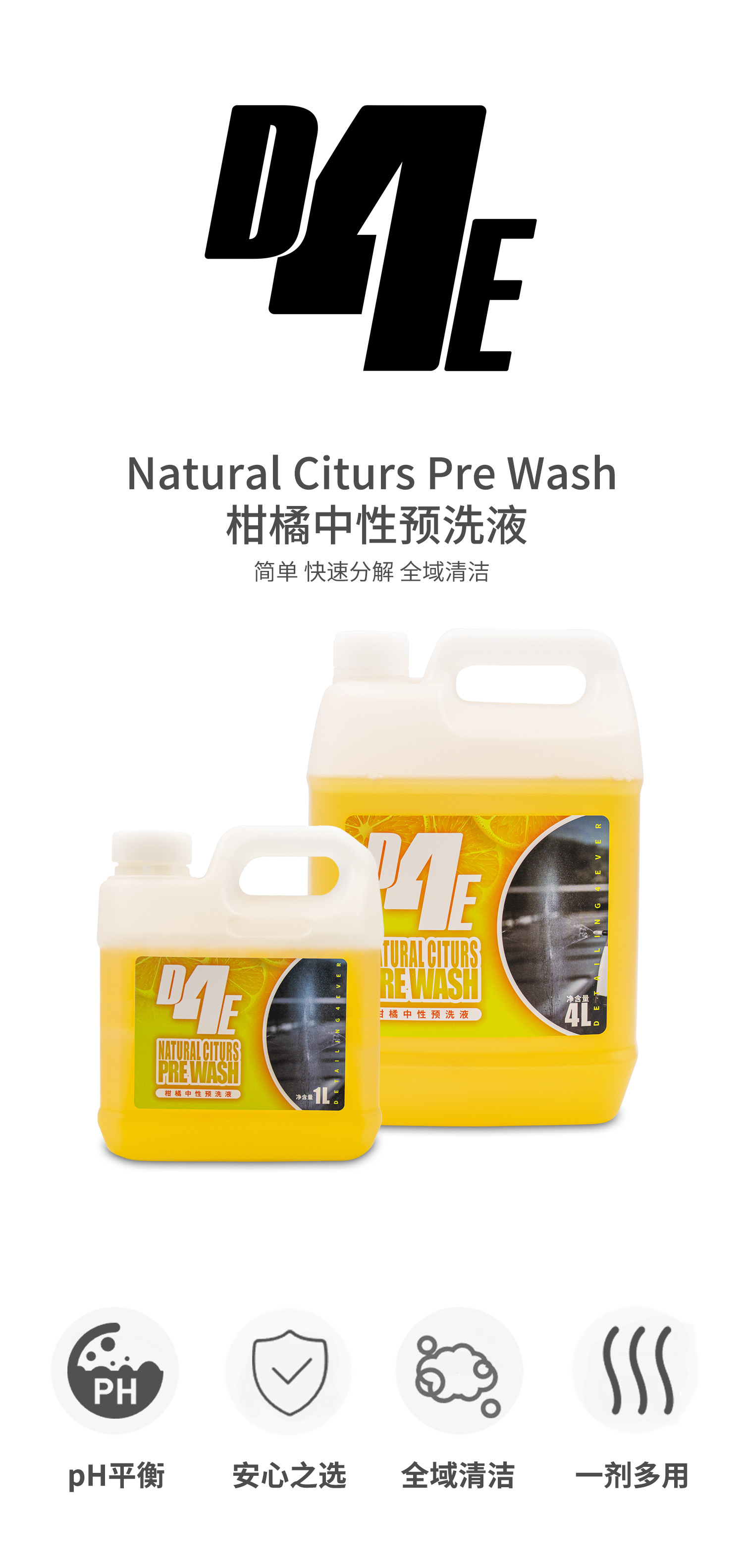 【运费到付】D4E 柑橘中性预洗液 快速分解脏污全域清洁洗车液