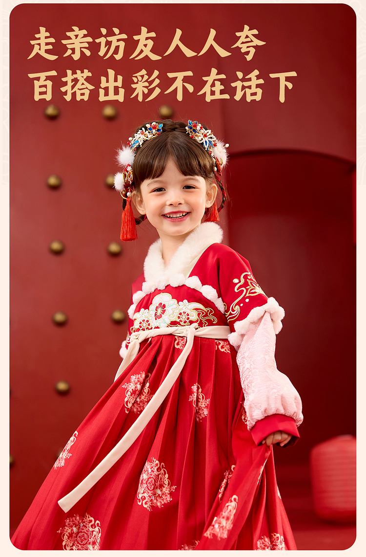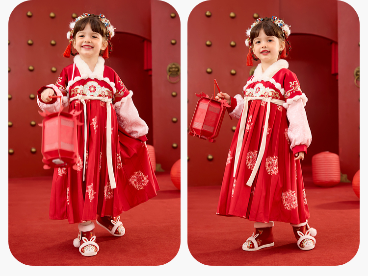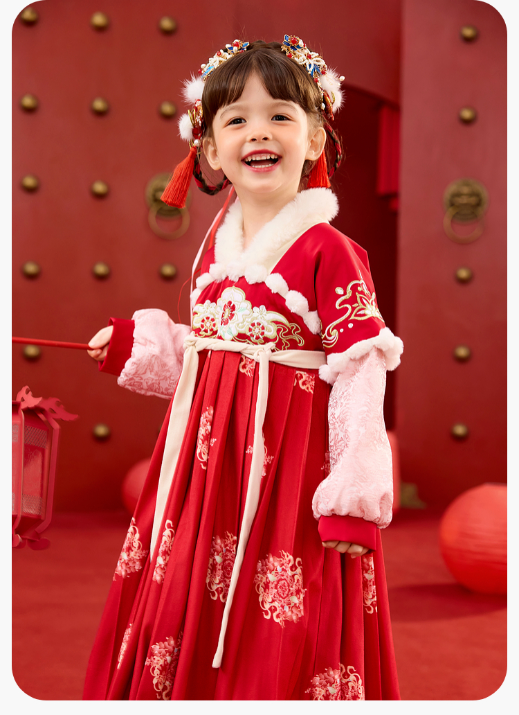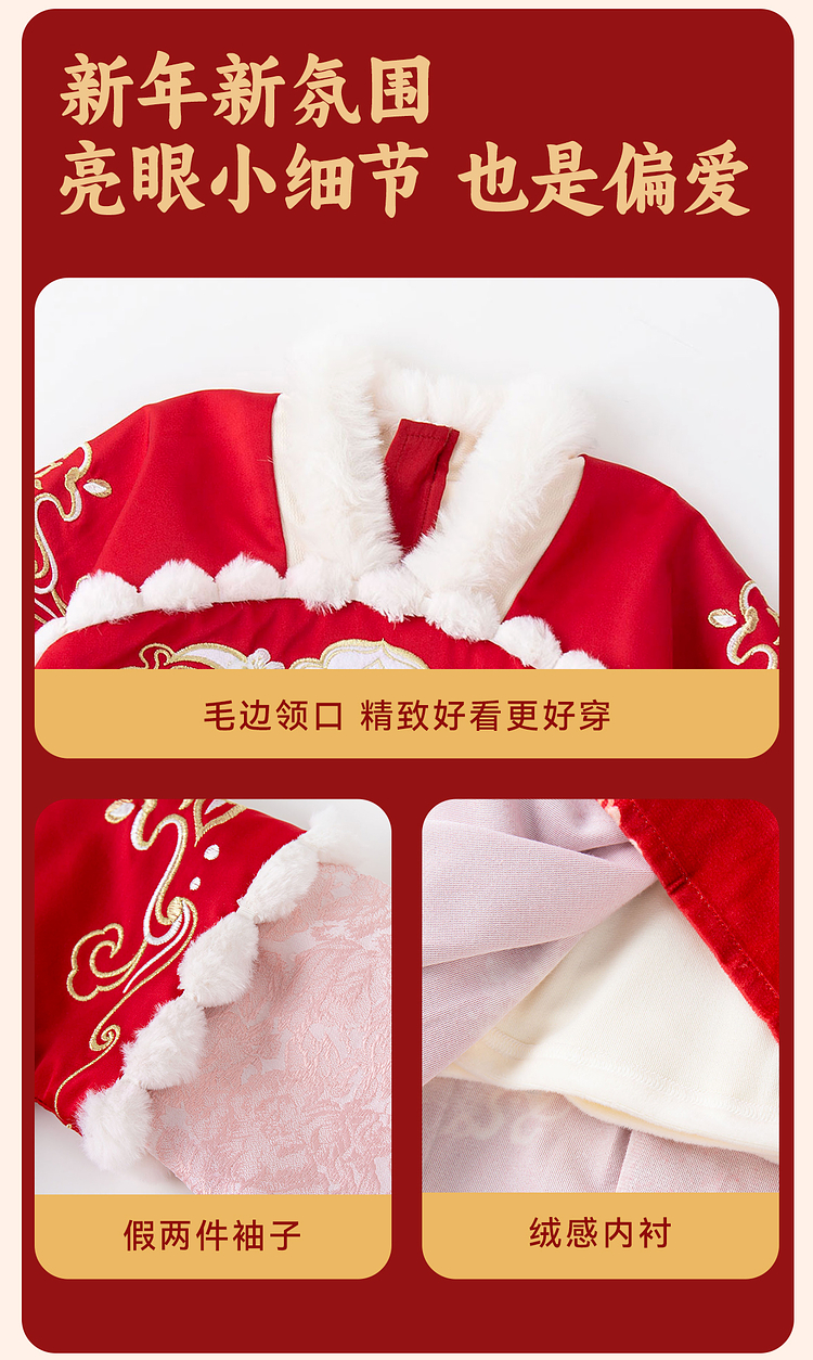 嘟嘟家女童汉服女宝冬季新年礼服小女孩洋气拜年服宝宝周岁衣服
