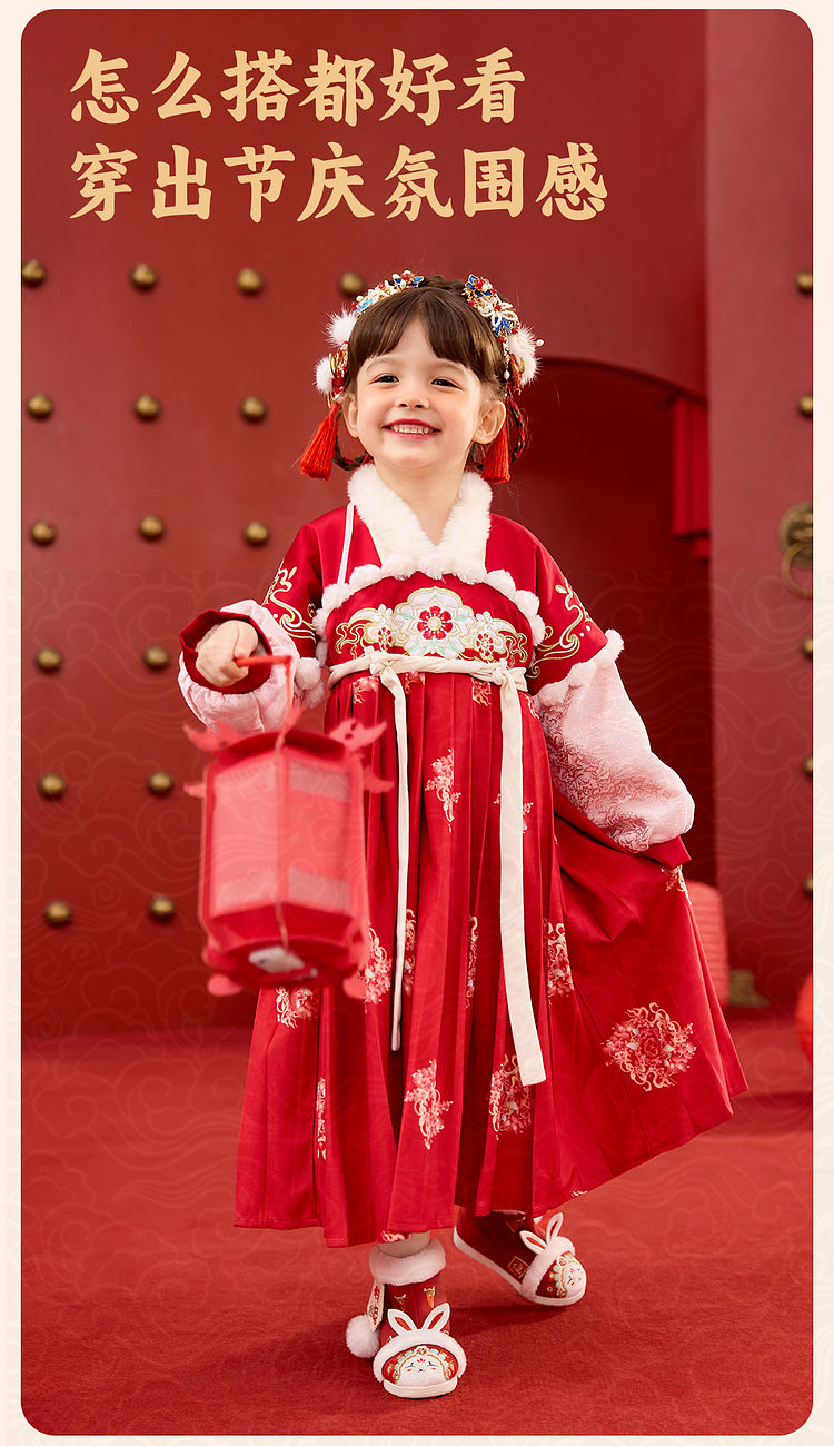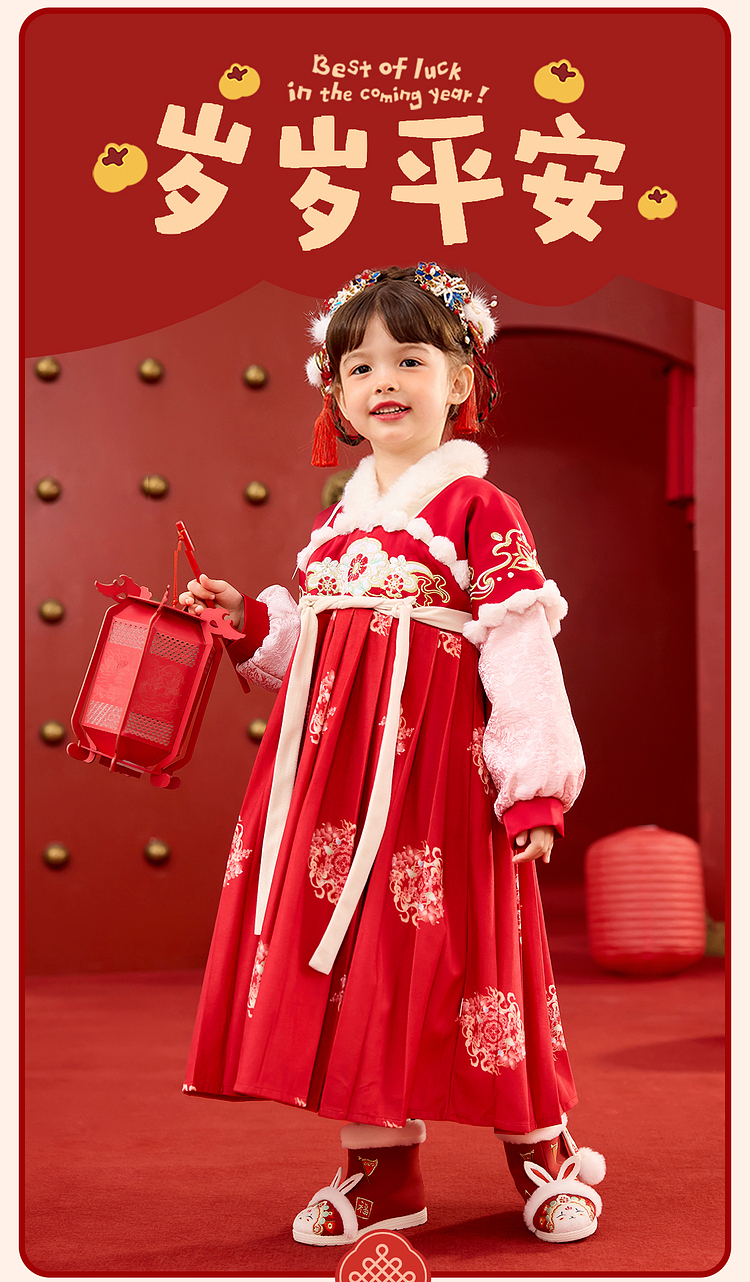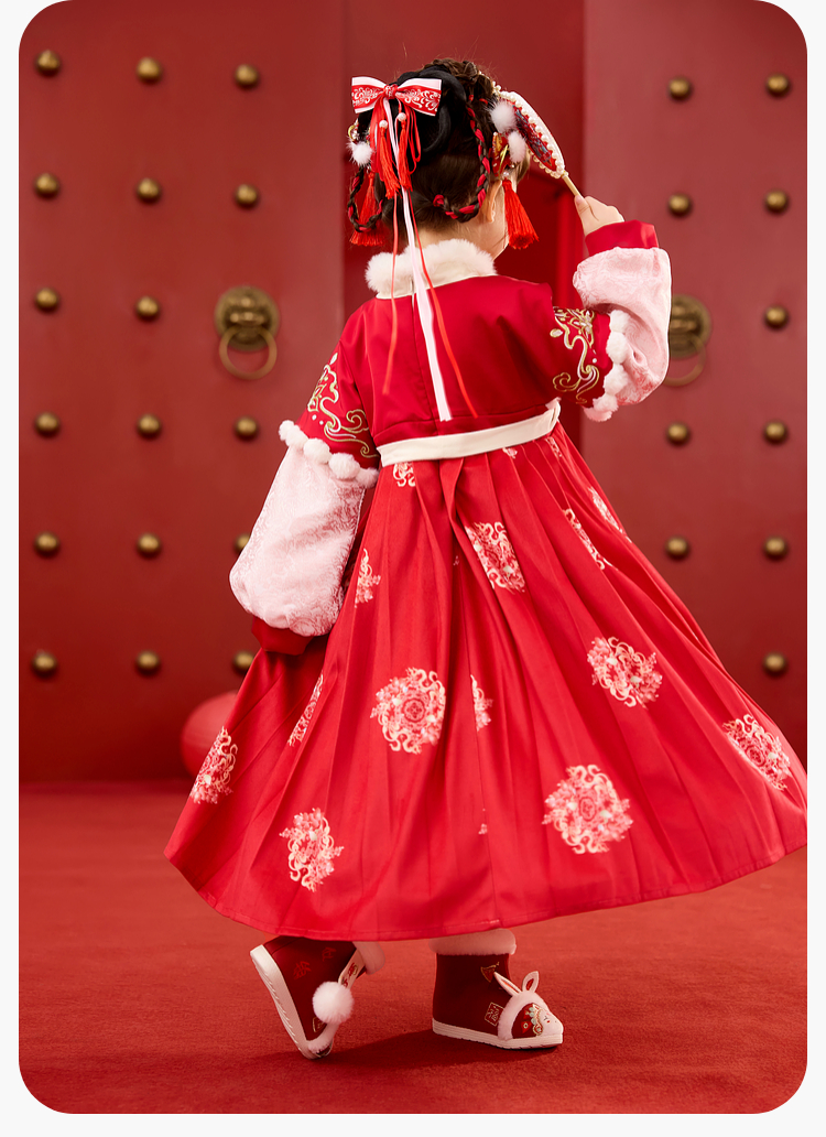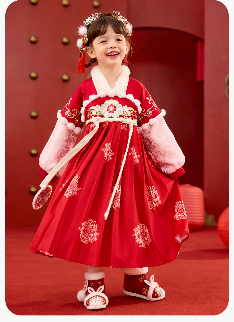 嘟嘟家女童汉服女宝冬季新年礼服小女孩洋气拜年服宝宝周岁衣服