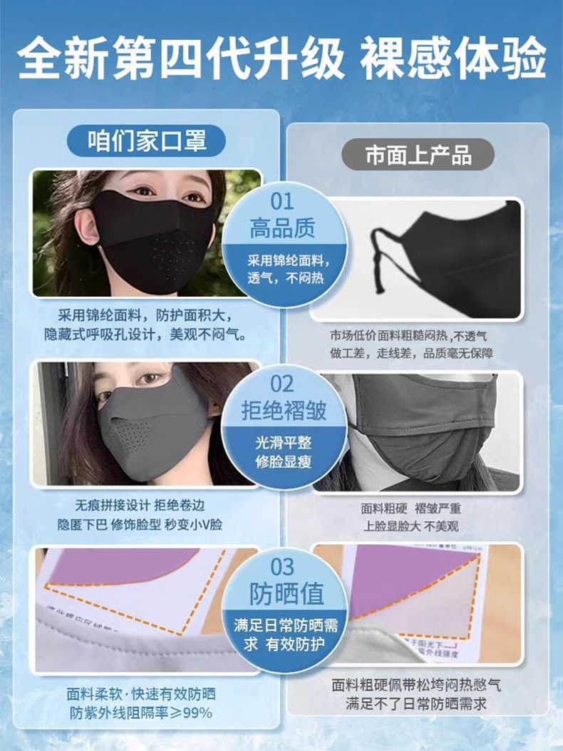 【无痕凉感❗️轻薄有型】防晒口罩女护眼角薄款防紫外线透气脸罩无痕凉感遮阳面罩。ya