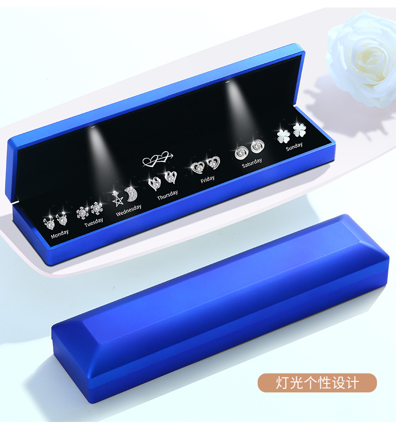情人节好礼【一周耳钉礼盒❗我“钉”上你了】创意灯光个性设计,s925银一周耳钉礼盒套装情人节礼物送女友老婆实用特别有意义生日。rg