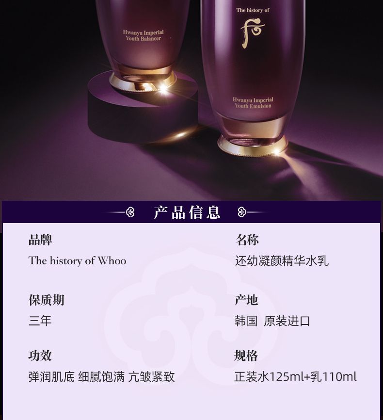 【预售 急单慎拍】whoo后还幼水乳单品水125ml乳110ml水乳紧致抗皱保湿
