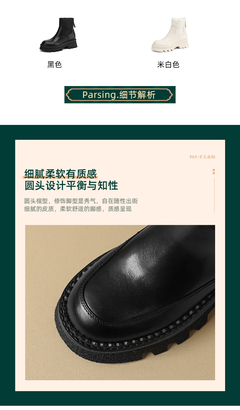 【极寒靴】【羊毛加羽绒棉】阿么手工女鞋时尚厚底短靴女6CM加厚百搭