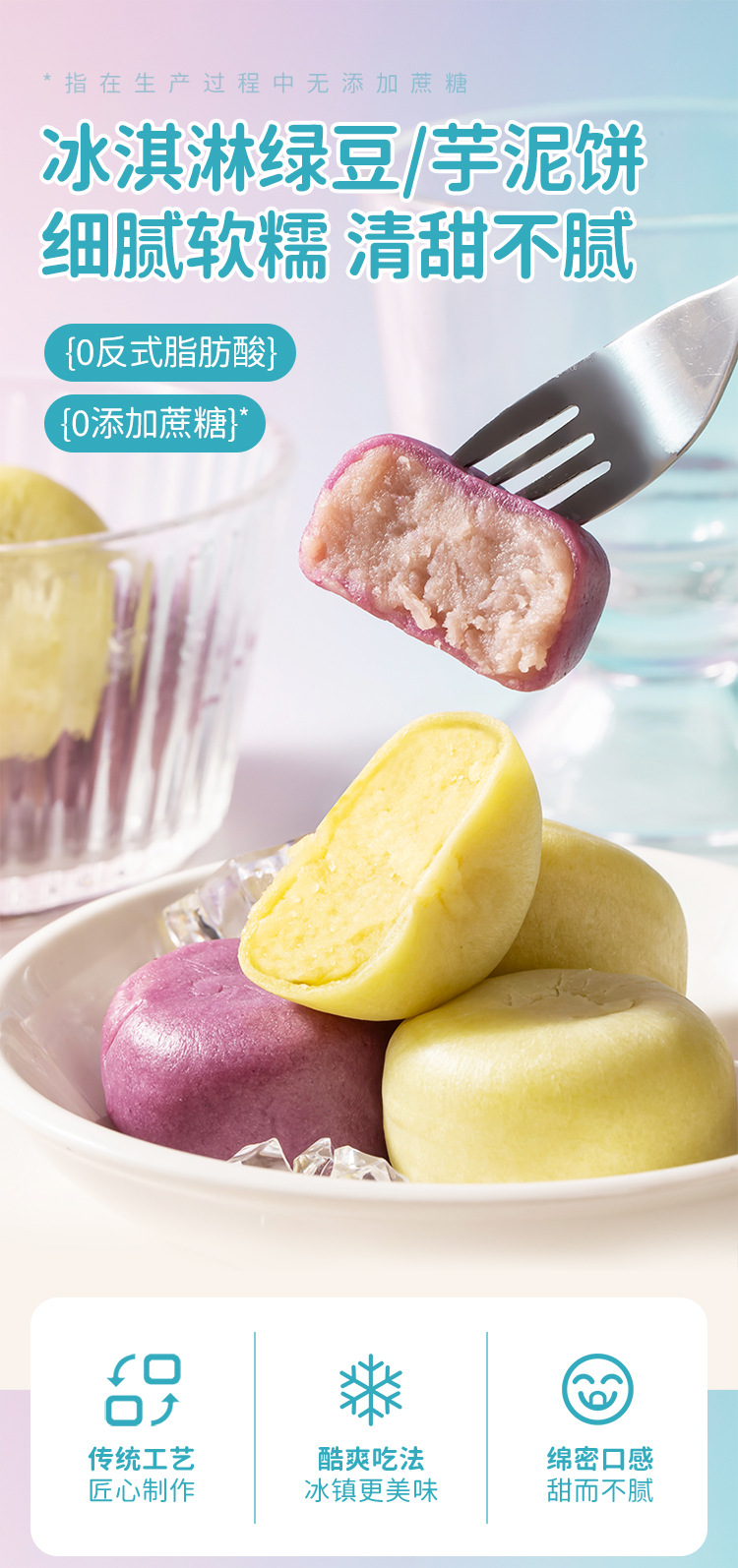 【超值买二送一!冰淇淋绿豆/芋泥饼】传统糕点新吃法,细腻软糯,清甜不腻,不单独添加蔗糖,甄选原料,下午茶健康零食休闲糕点,早餐代餐食品L