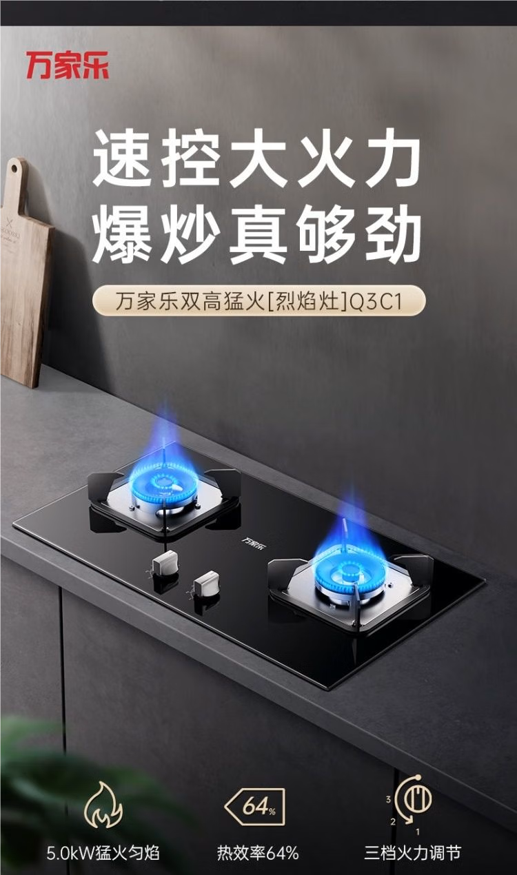 万家乐燃气灶天然气台嵌两用双灶5.0KW猛火灶家用液化气玻璃面JZT-Q3C1 天然气510691
