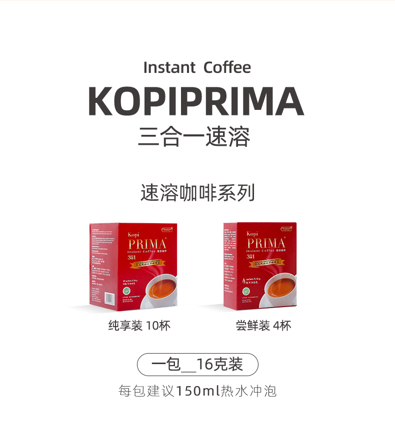 KOPIPRIMA普拉玛三合一咖啡提神速溶咖啡粉冲泡饮品解困10杯盒装