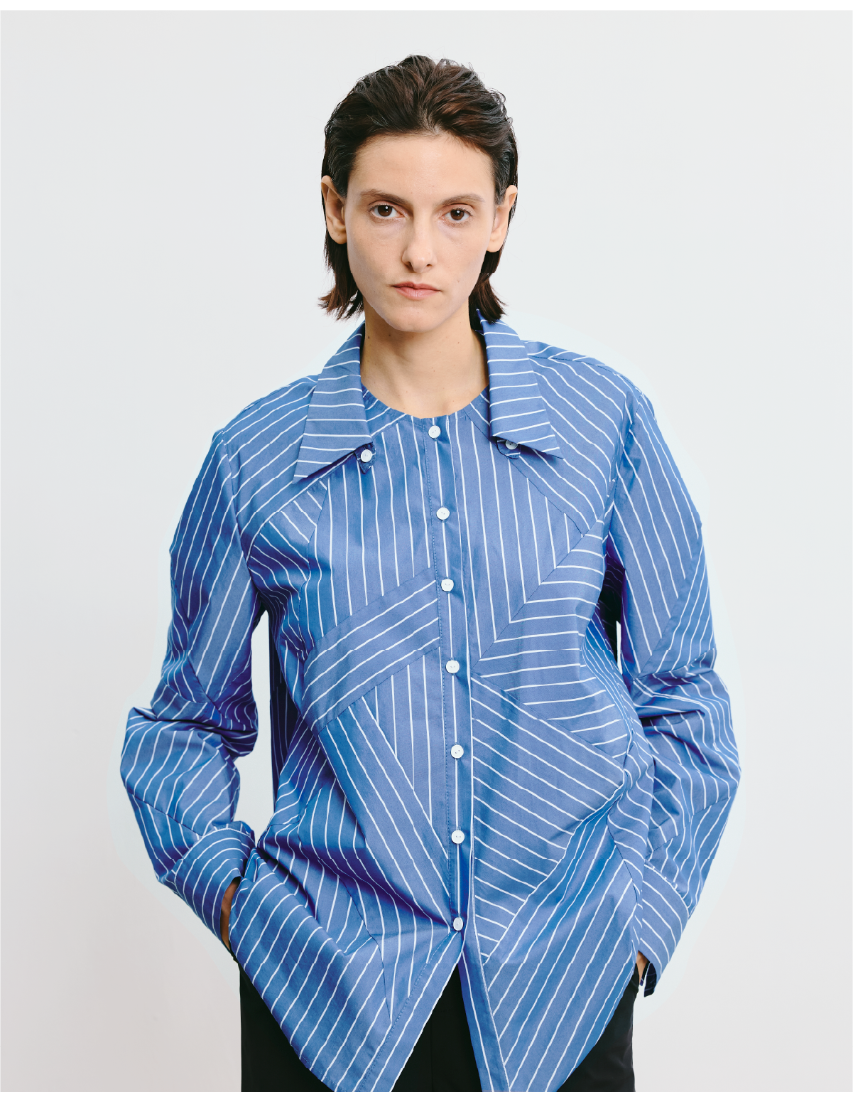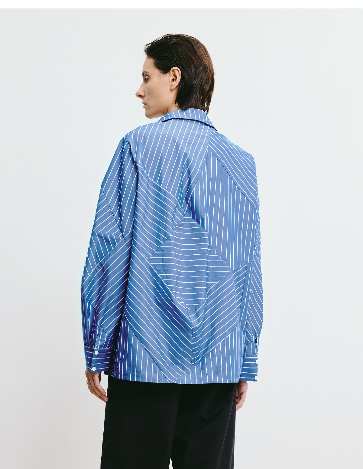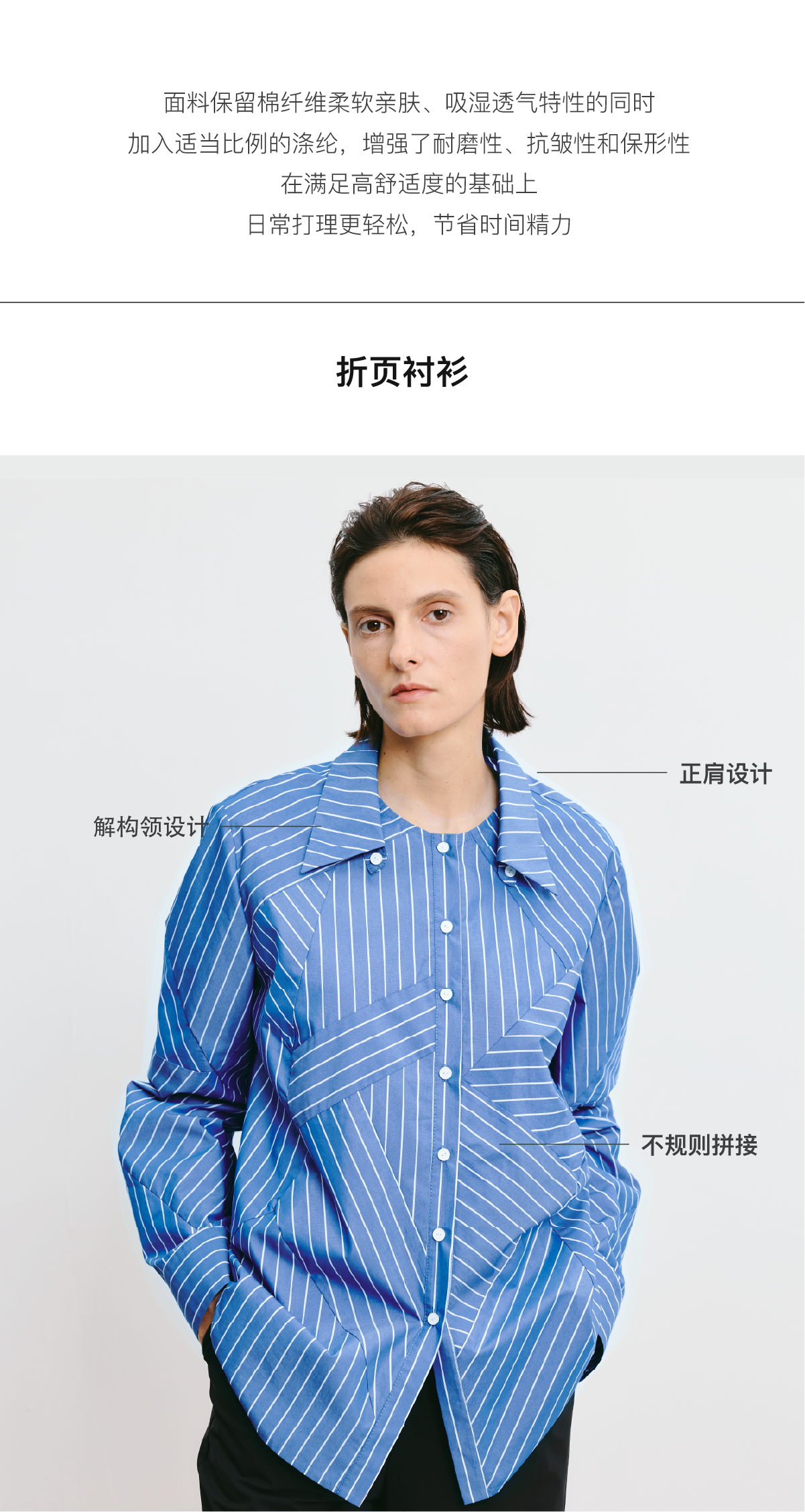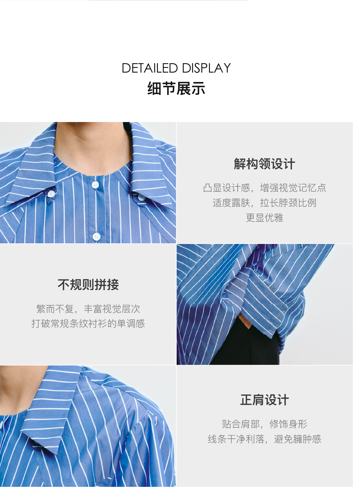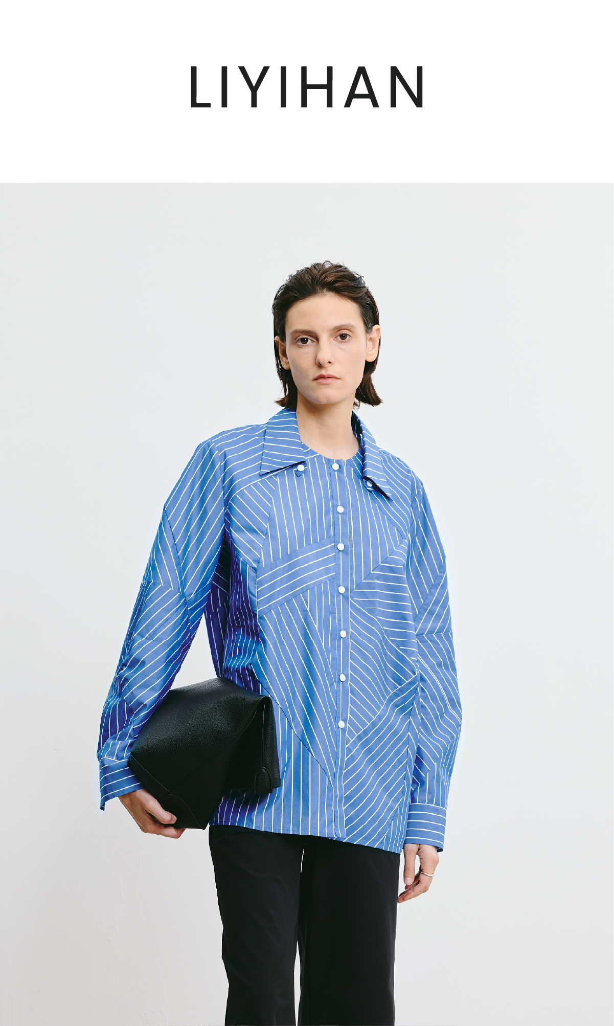 LIYIHAN 2025秋季新款棉质蓝色条纹衬衫女设计感小众长袖衬衣通勤