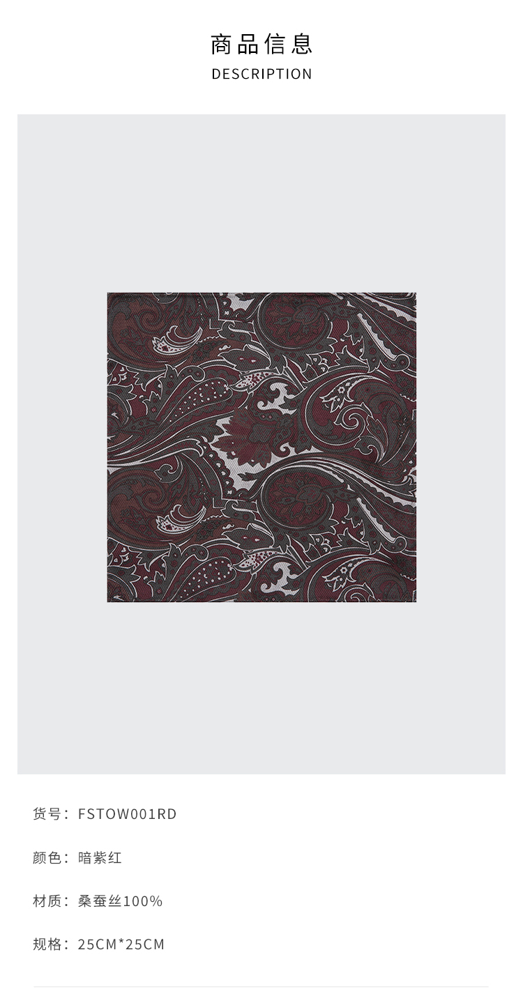 callisto暗紫红全桑蚕丝口巾 FSTOW001C RD