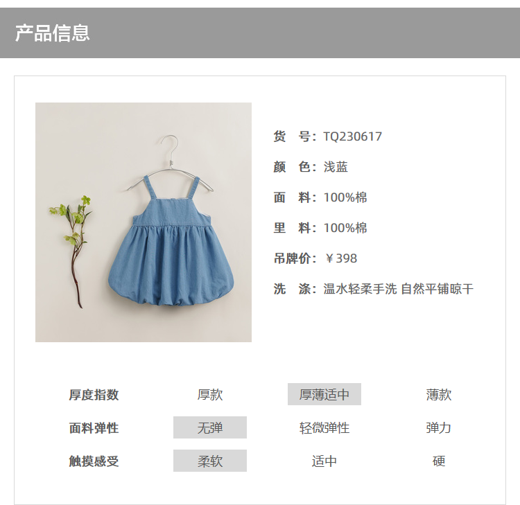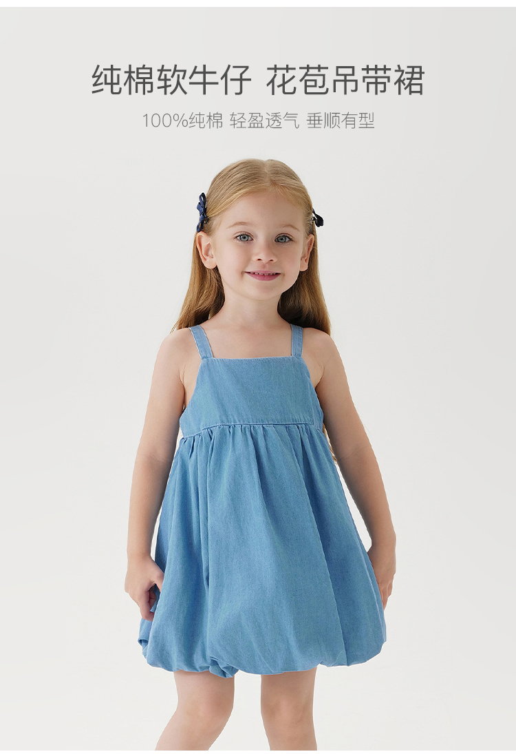 【马克珍妮 芦芙】新款夏装 女童纯棉牛仔吊带连衣裙230617