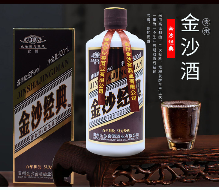金沙经典-珍品版 酱香型白酒53度500ml 斜标 白瓶