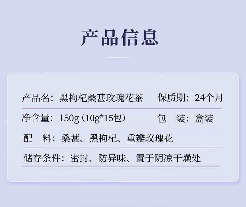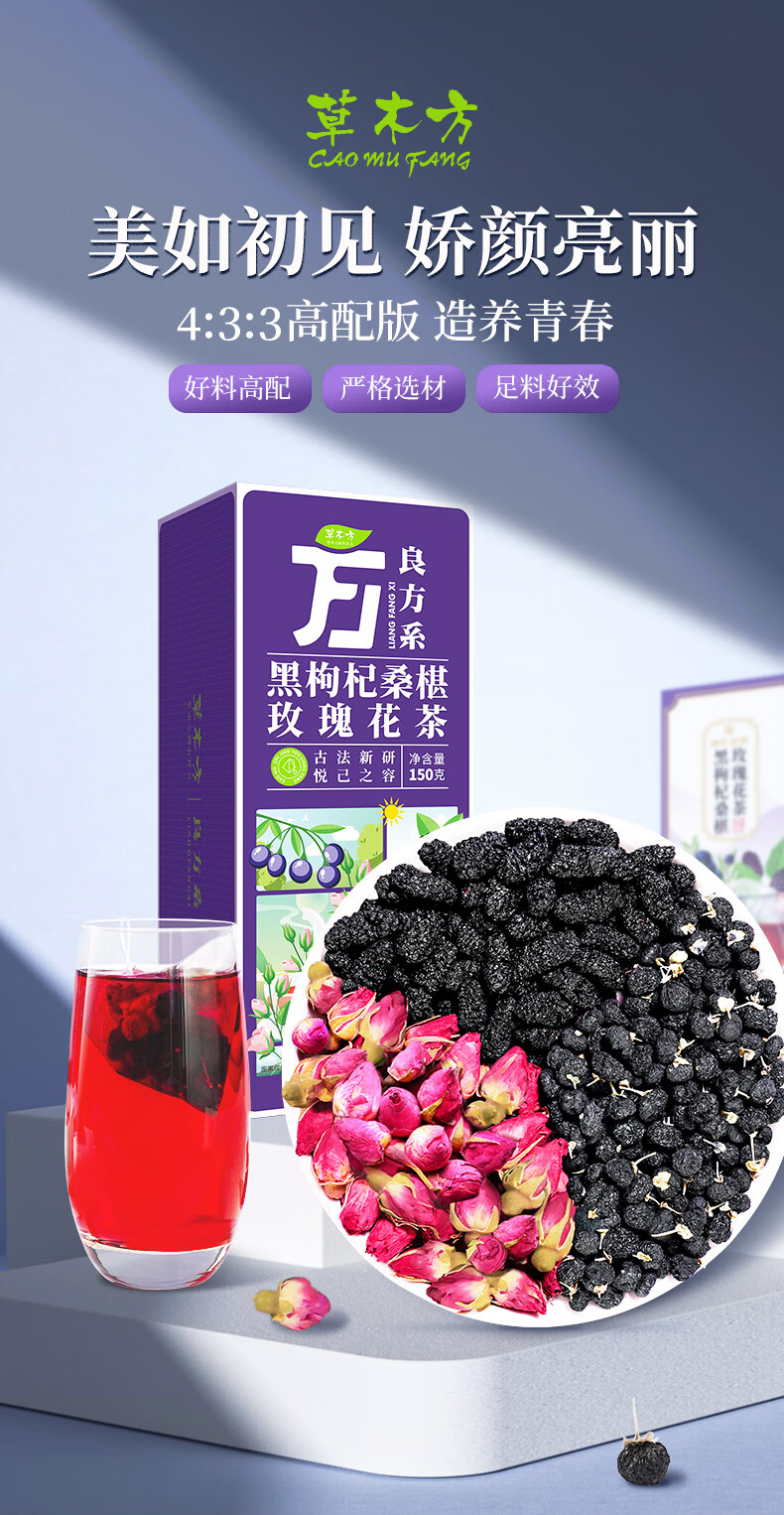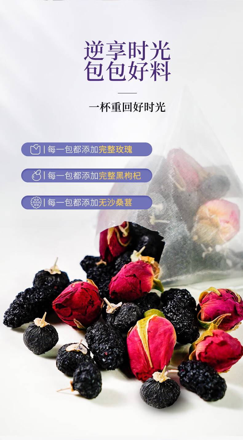 草木方 花草茶 黑枸杞桑葚玫瑰花茶150g 早C晚A养生茶桑葚枸杞桂圆茶
