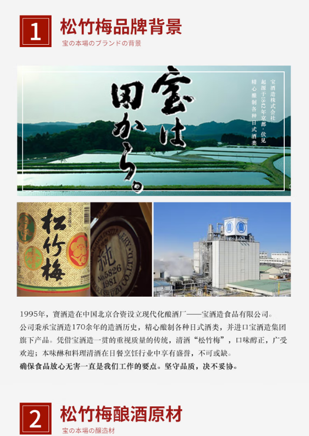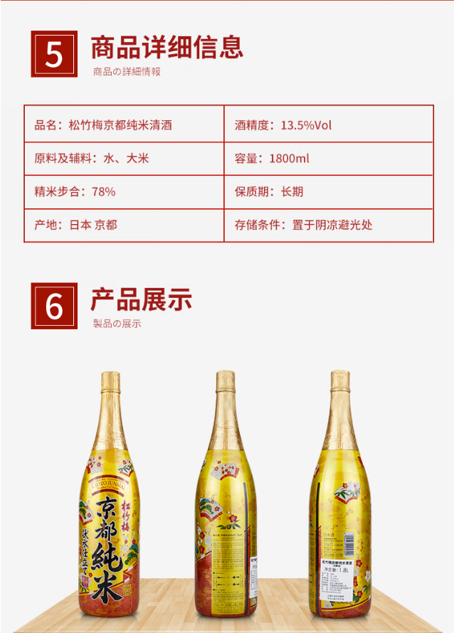 日本松竹梅 京都纯米清酒1.8L*1瓶