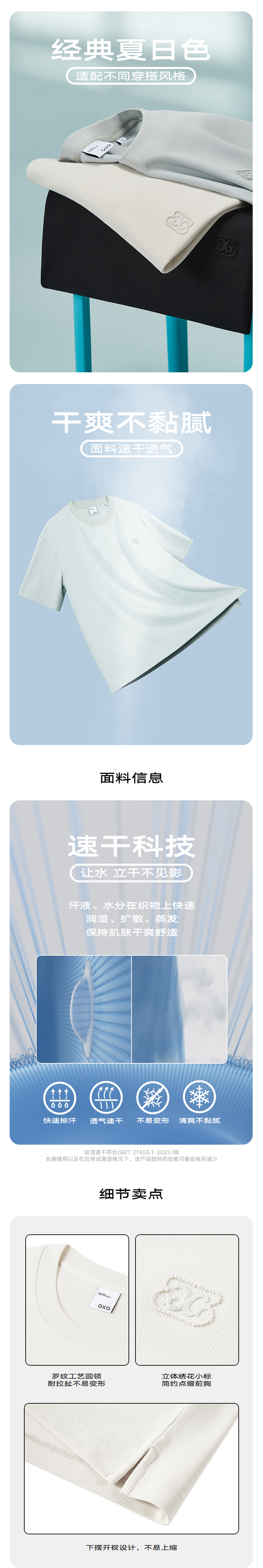 GXG男装 零压系列速干透气休闲圆领短袖T恤男士上衣 夏热卖