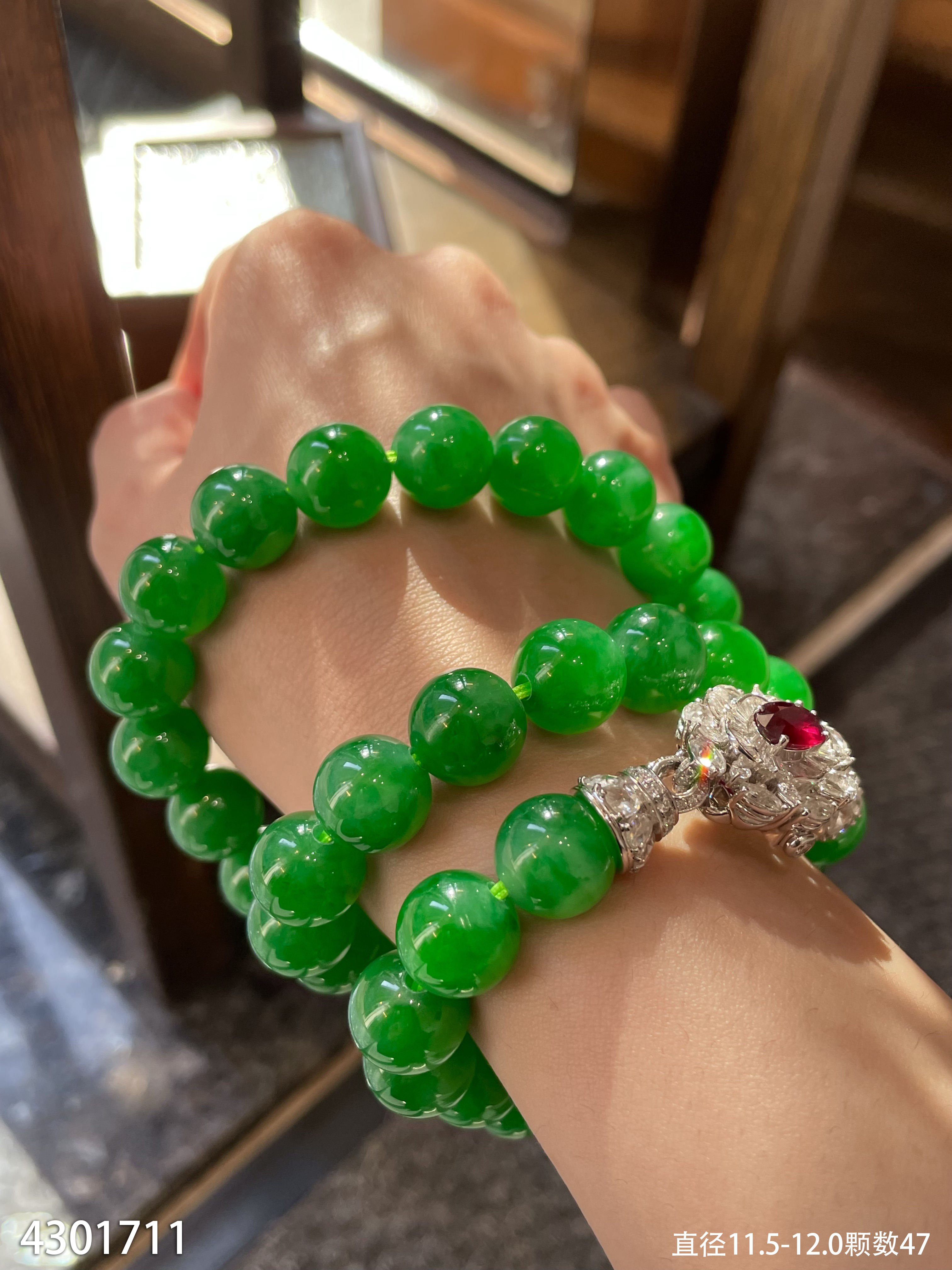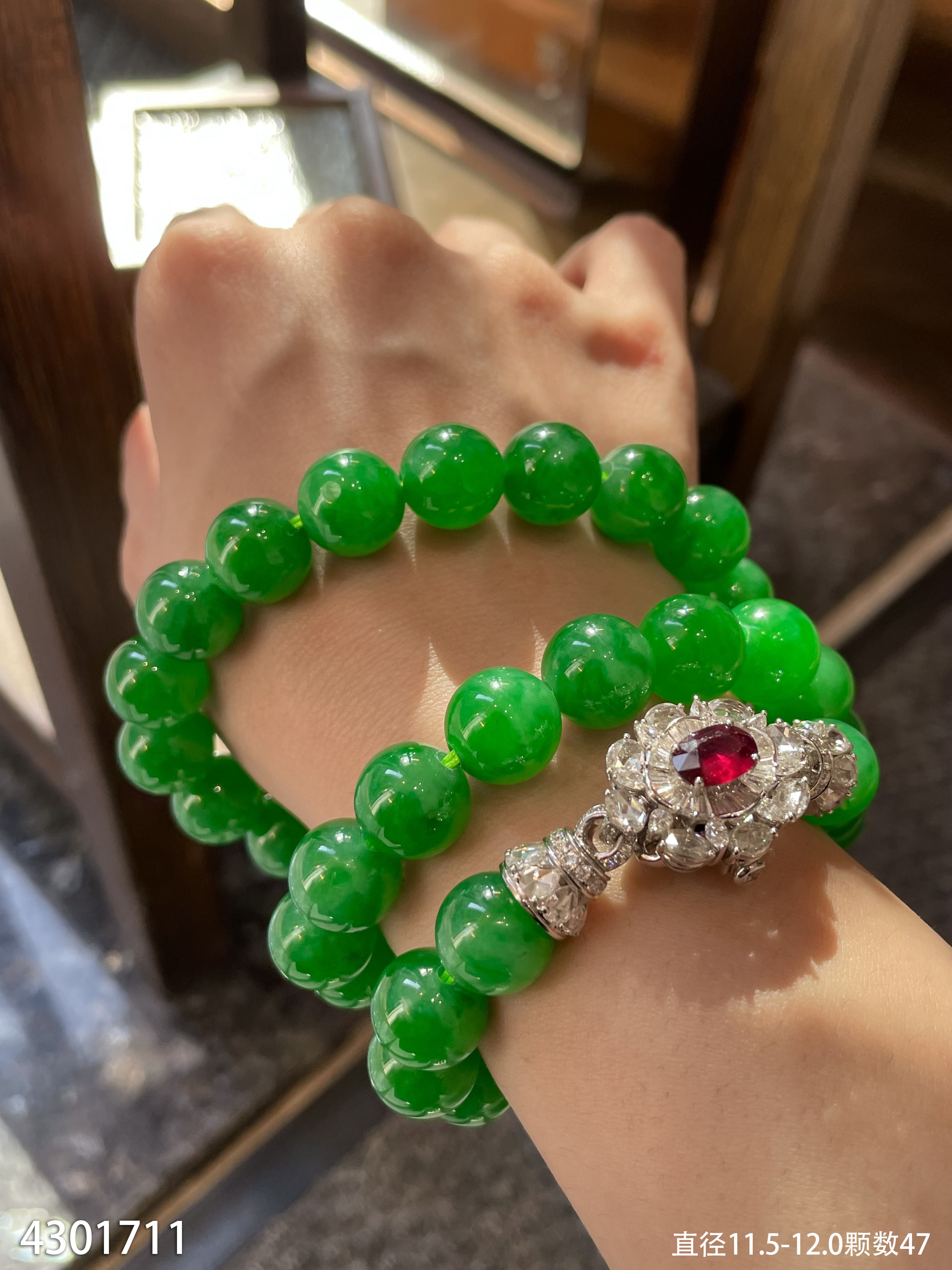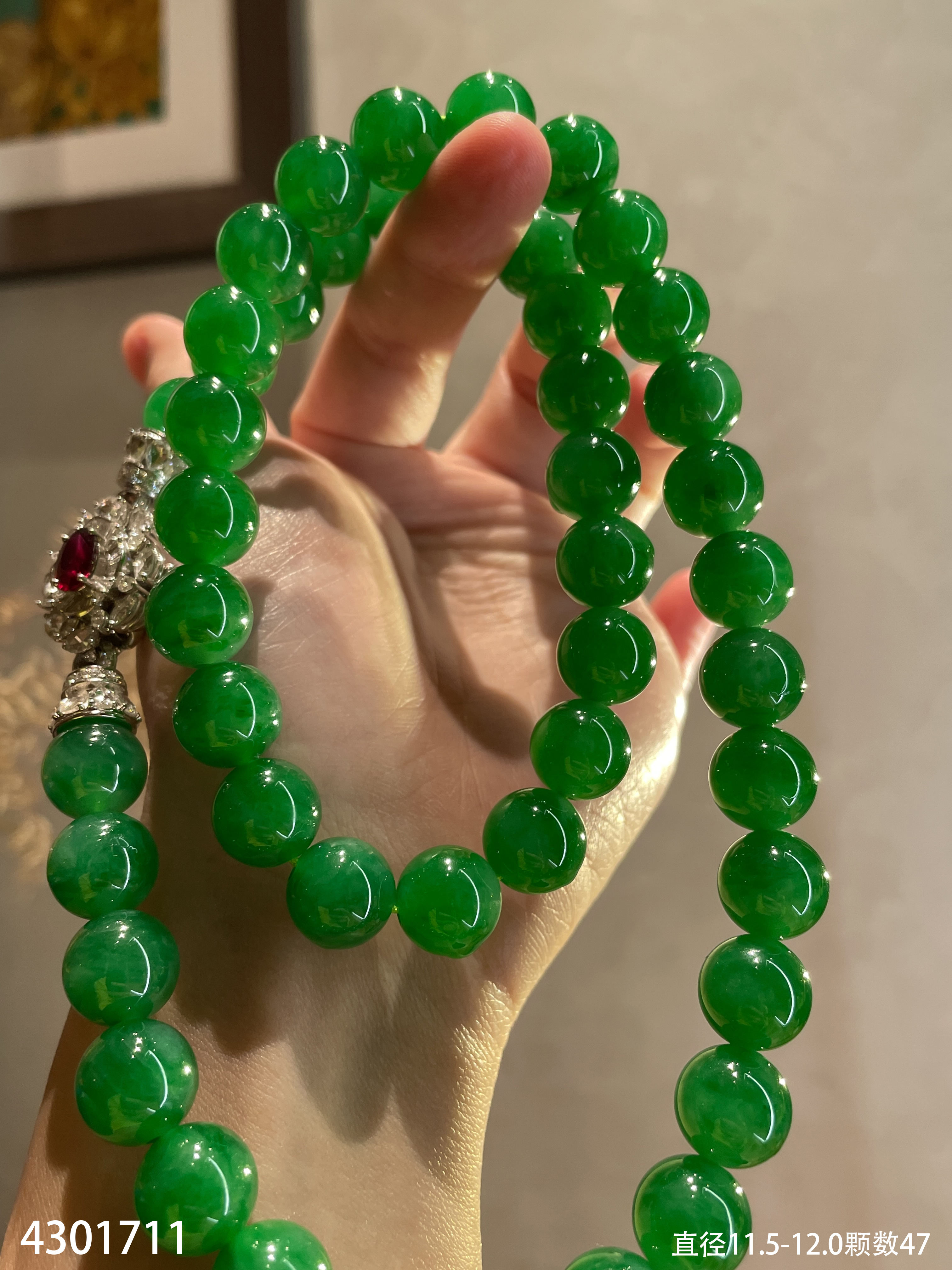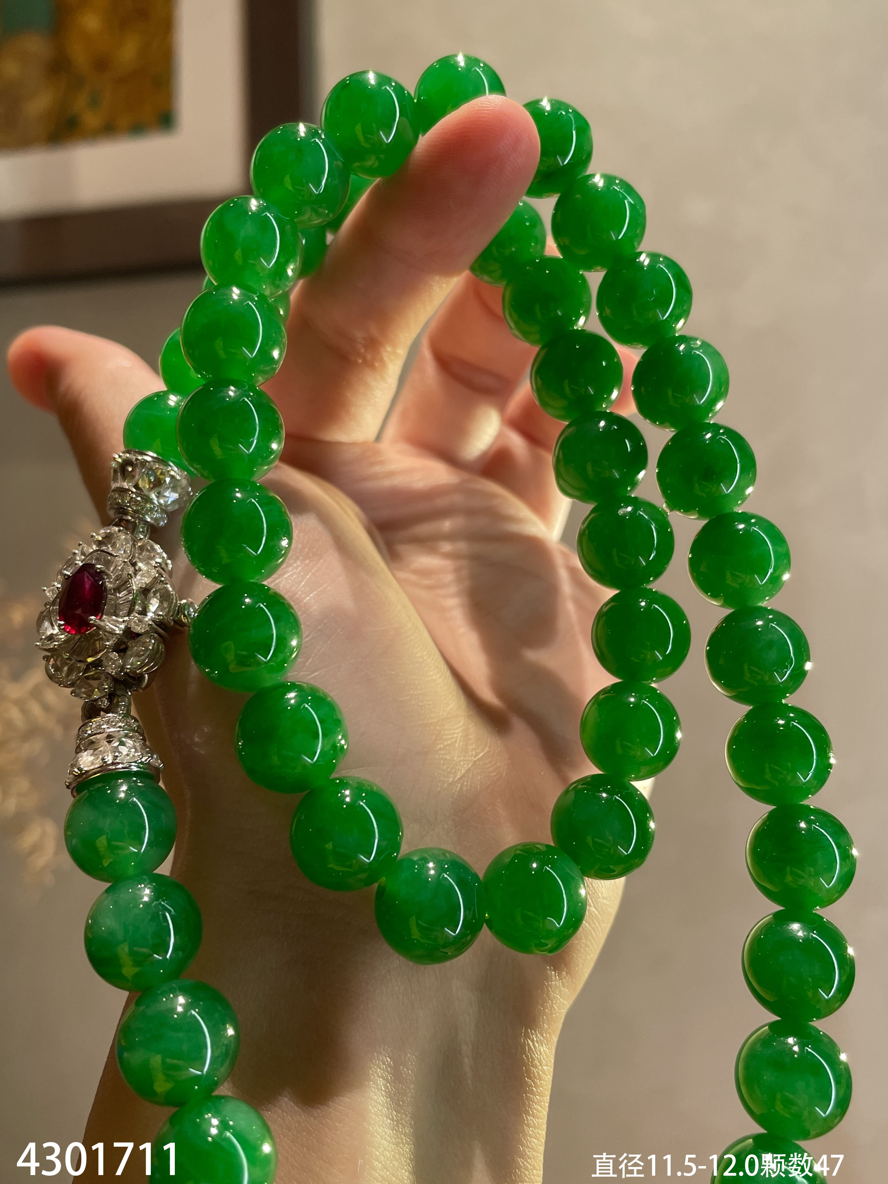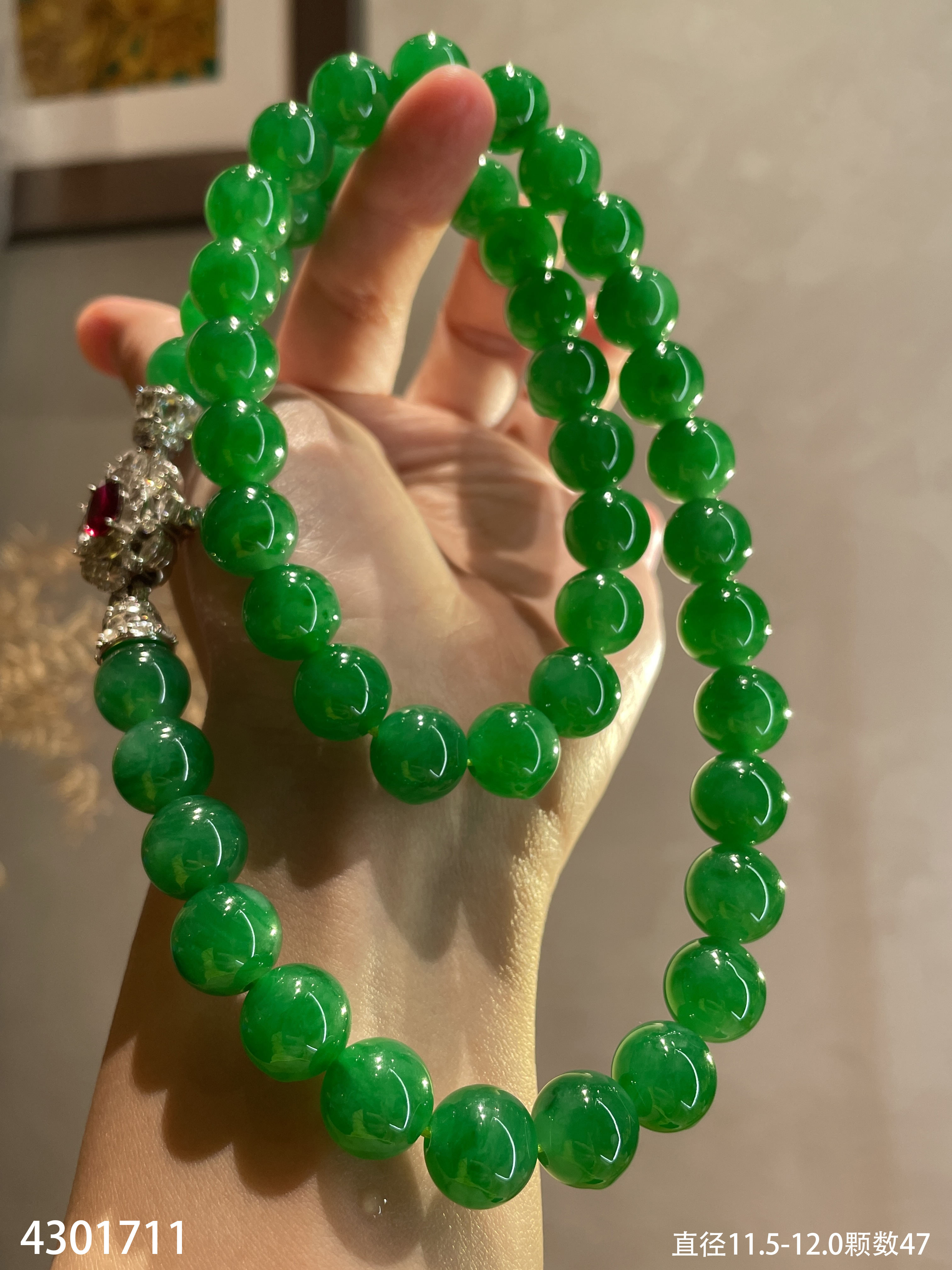 老坑艳绿珠链【4301711】具体价格微信咨询