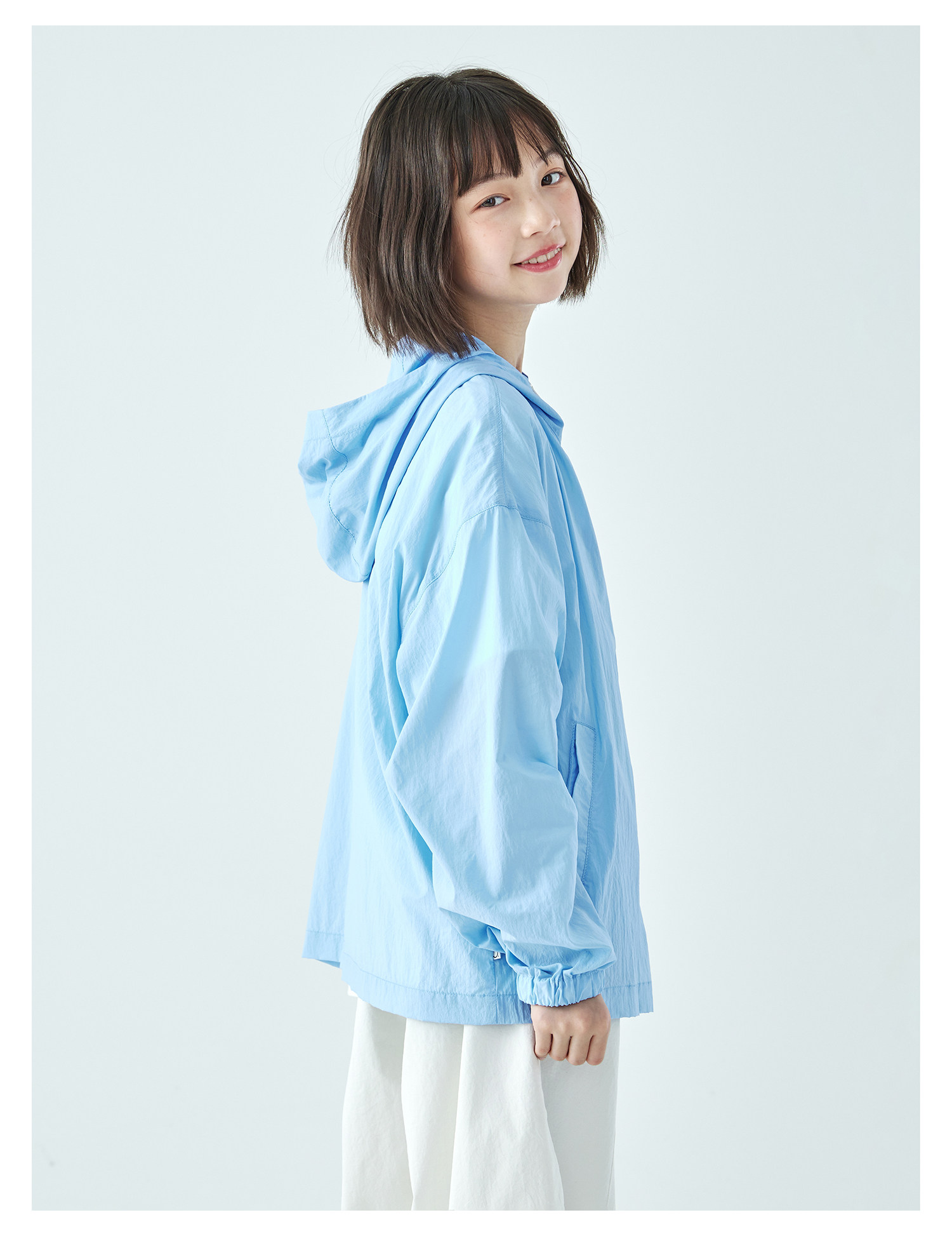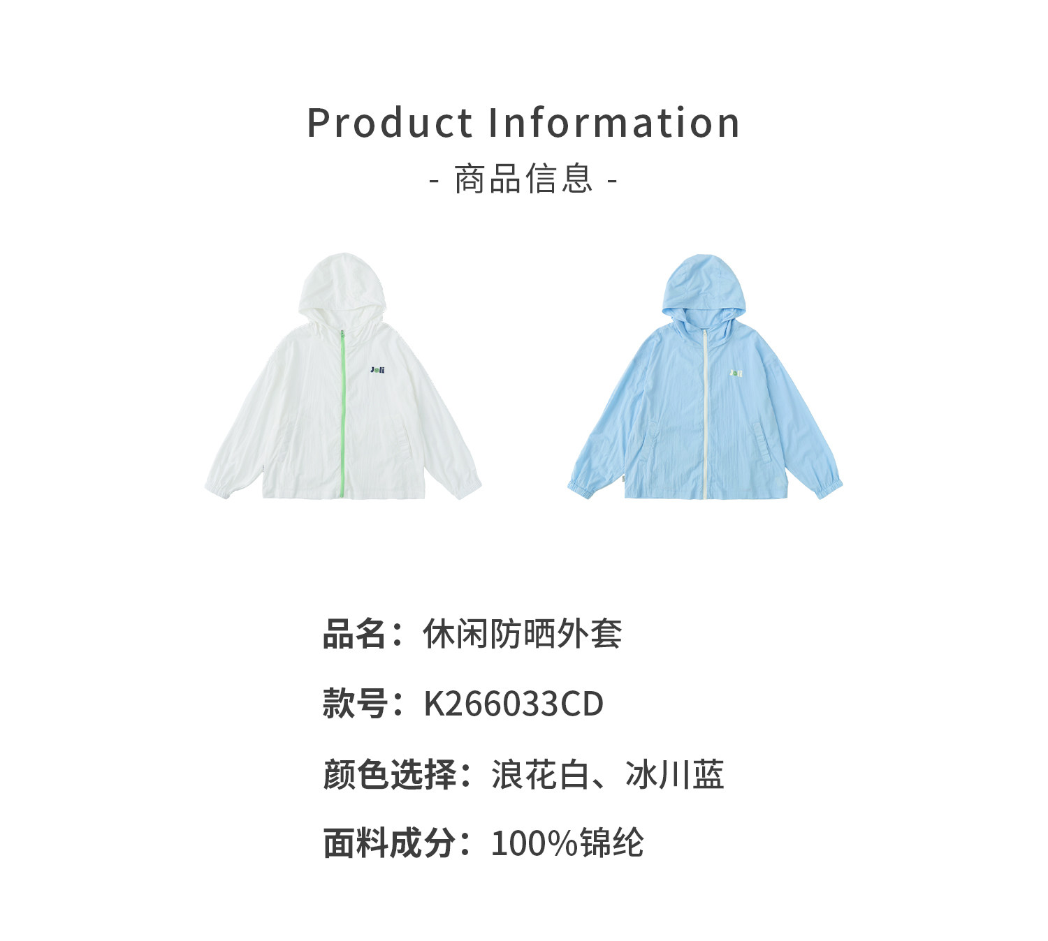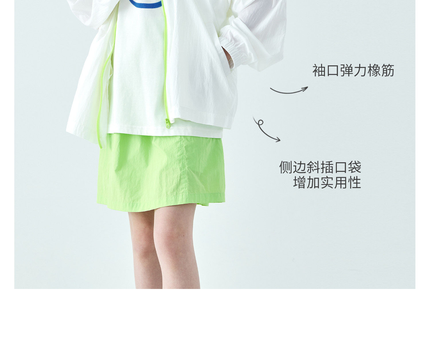 棵初26年夏季新款中大女童撞色拉链UPF50+原纱防晒休闲连帽外套