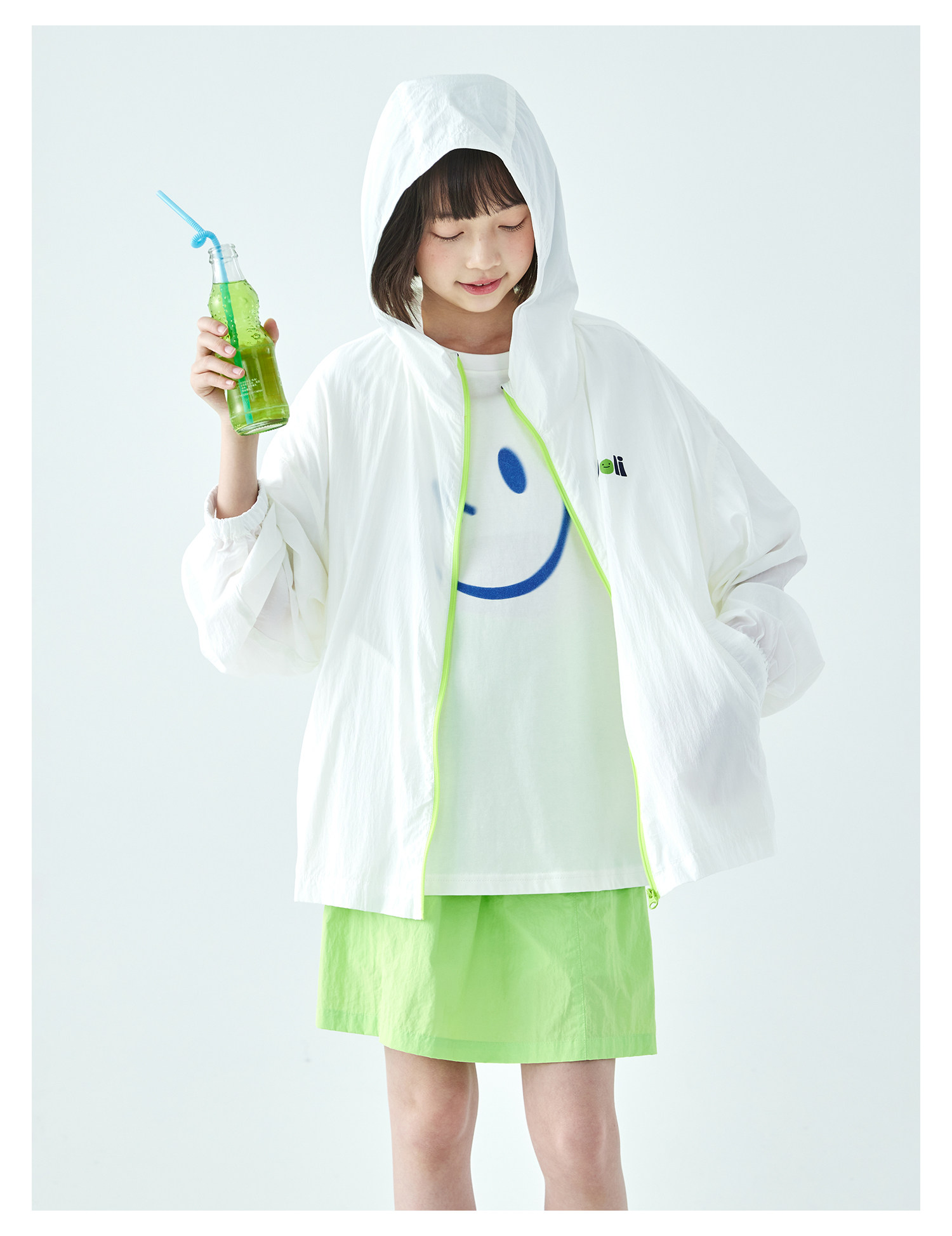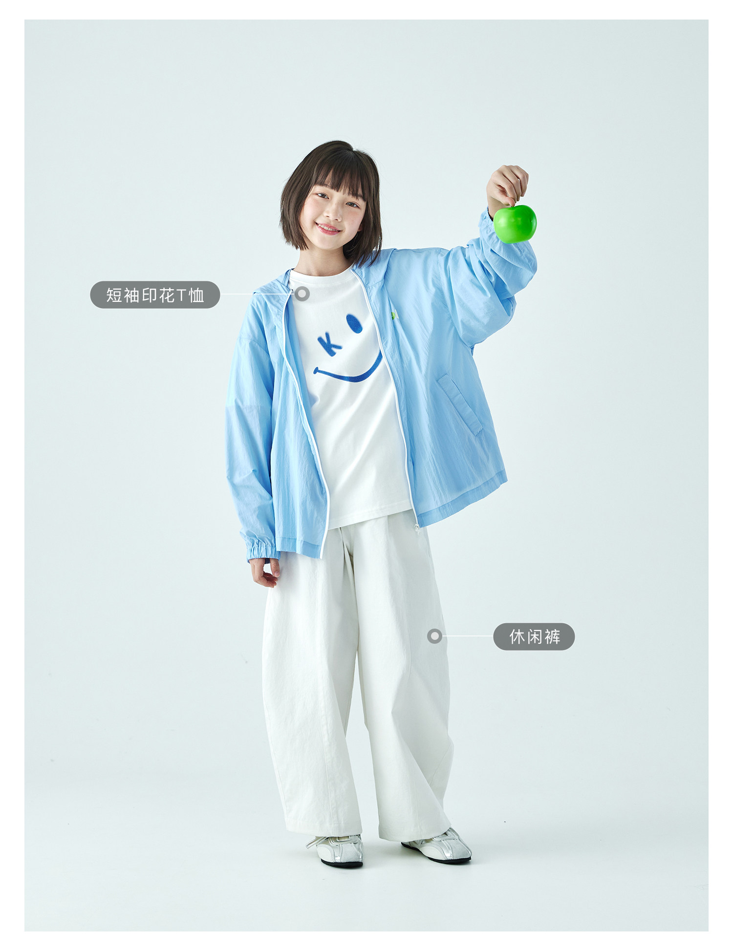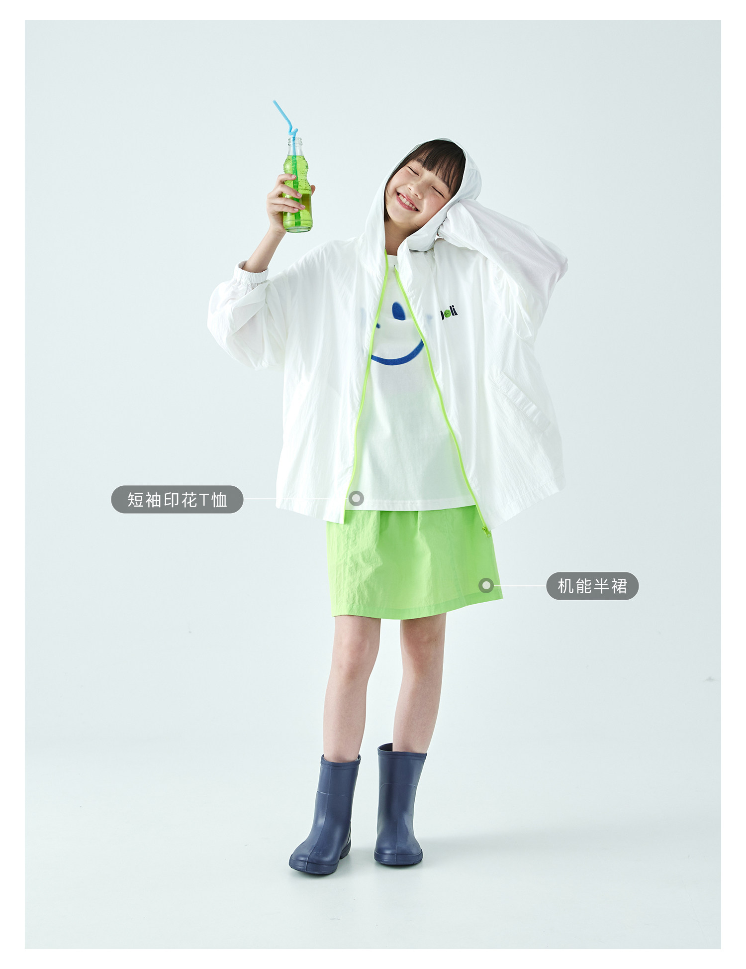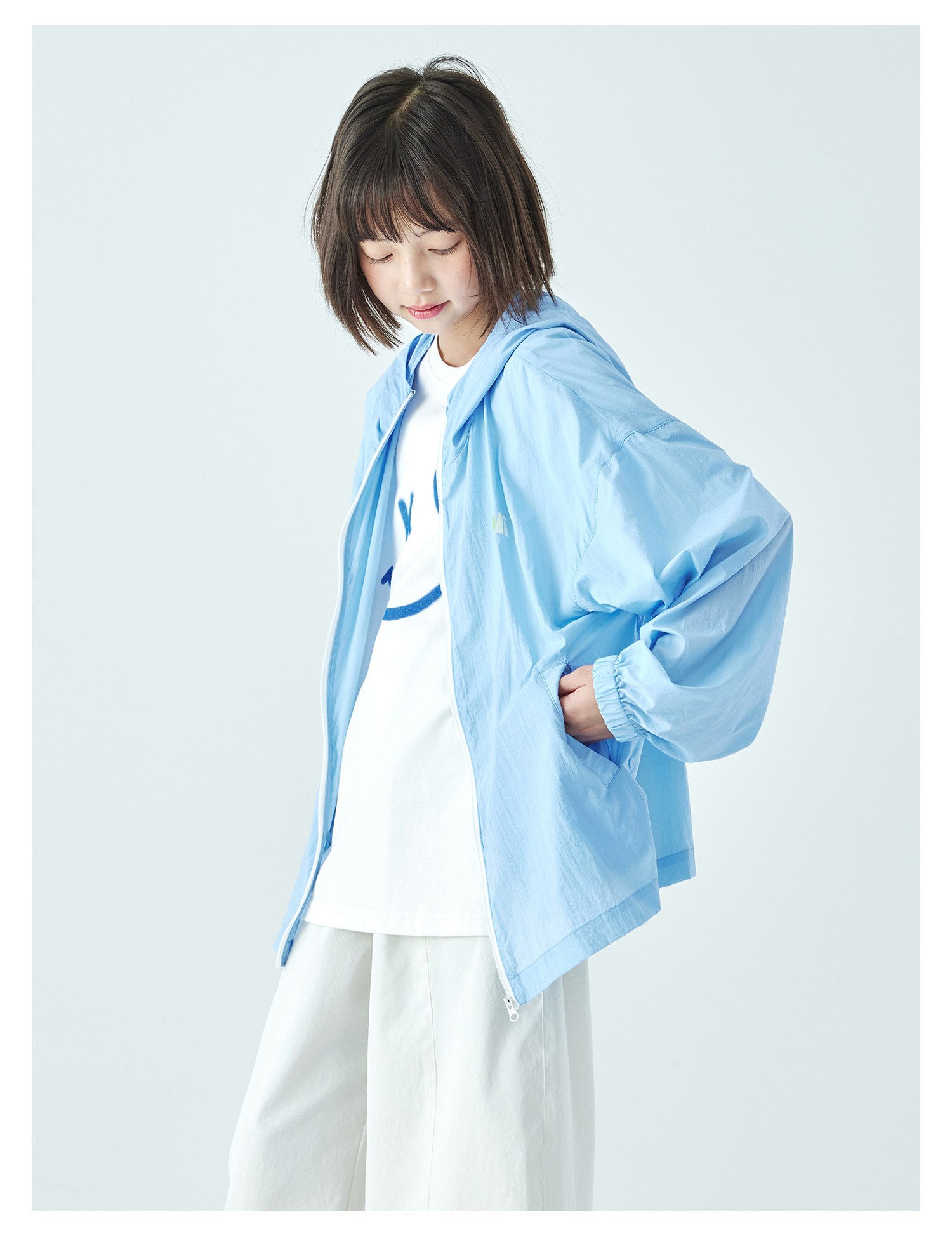棵初26年夏季新款中大女童撞色拉链UPF50+原纱防晒休闲连帽外套
