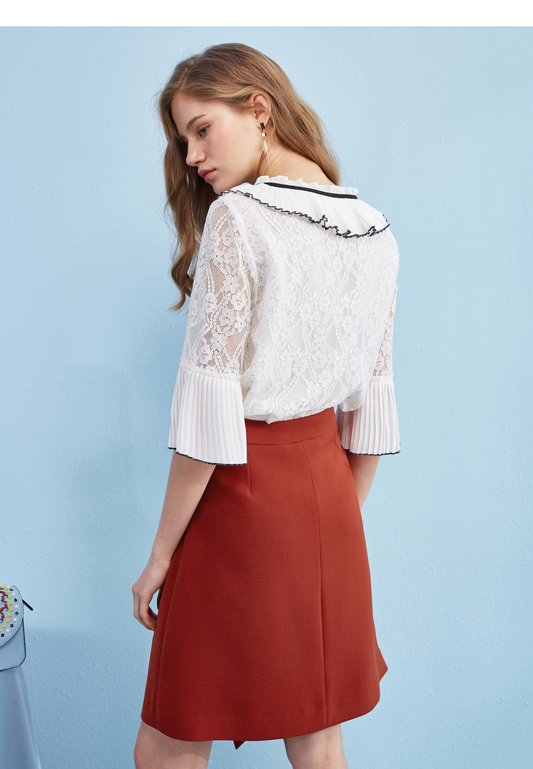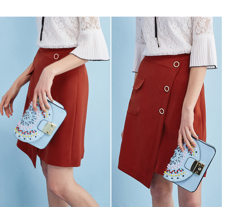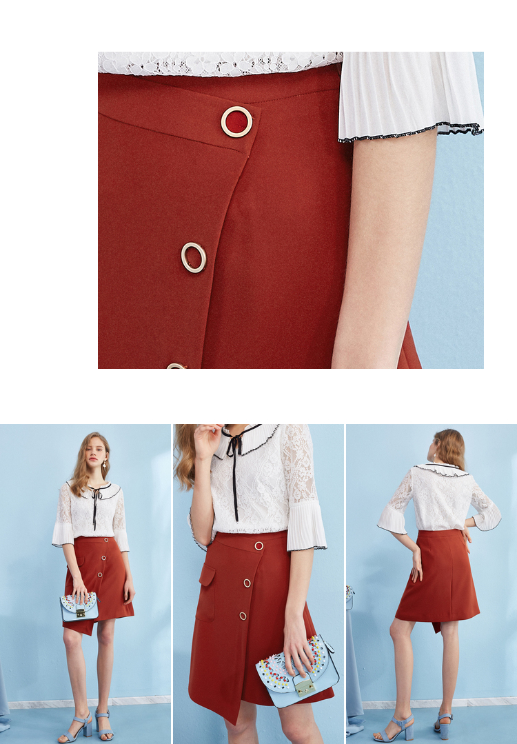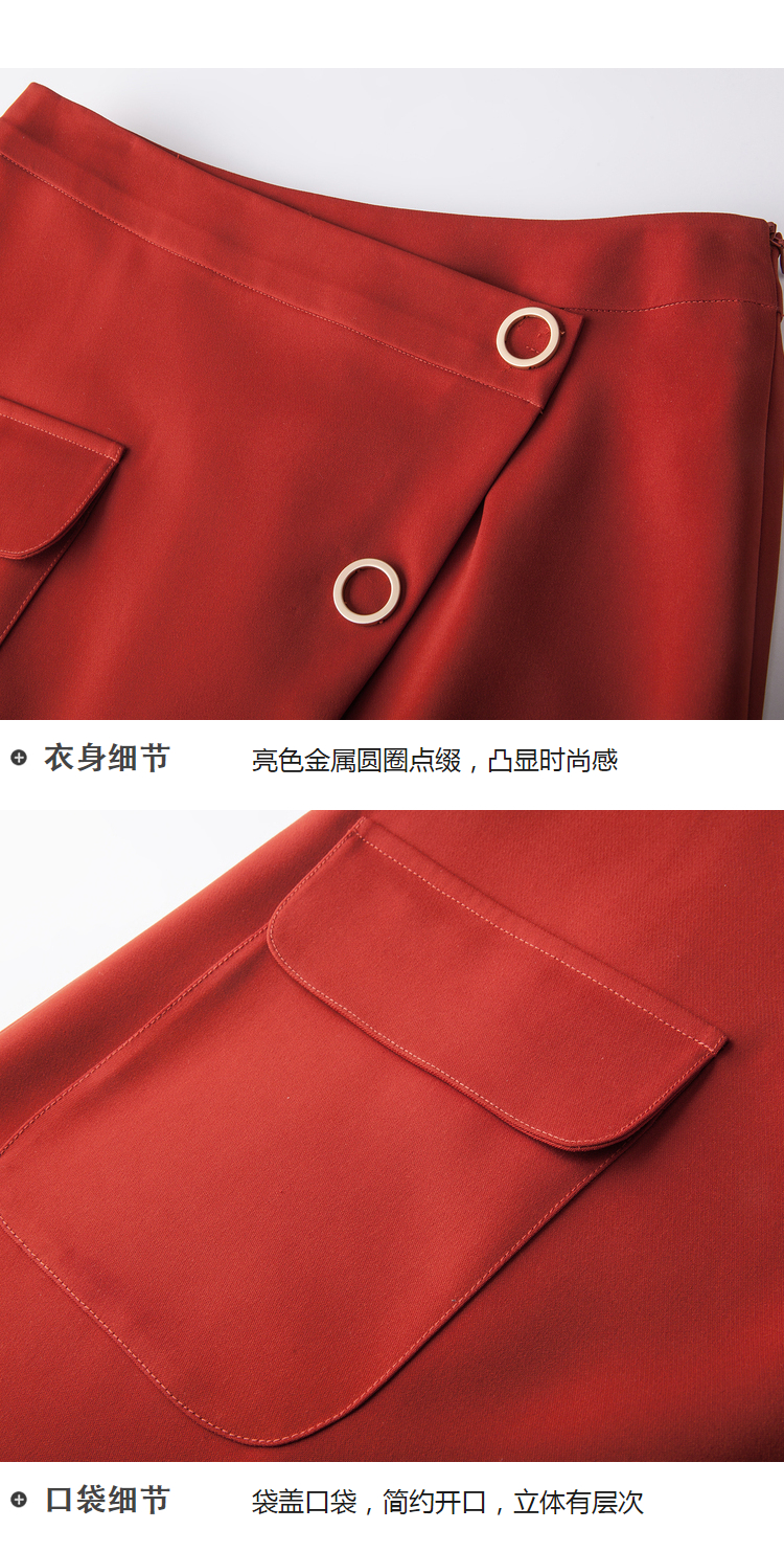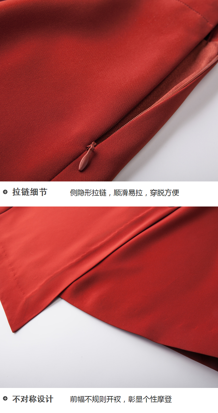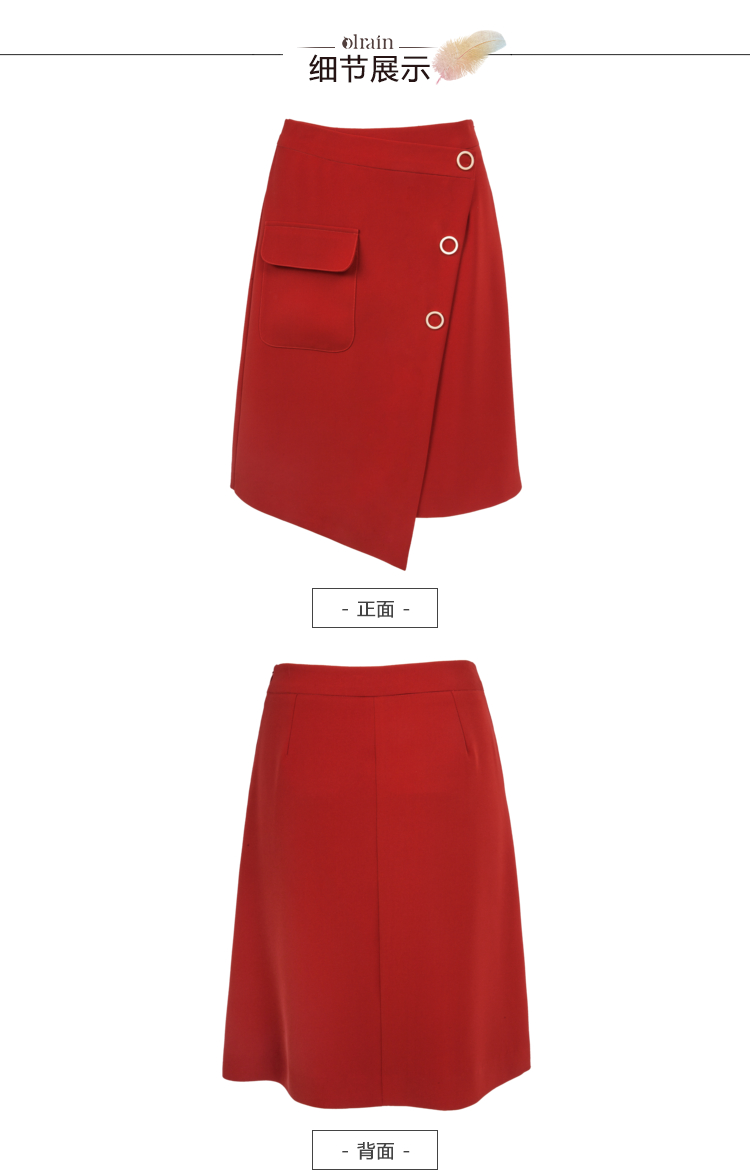 欧芮儿冬季女2021新款收腰显瘦纯色不规则开叉半身裙女中长款