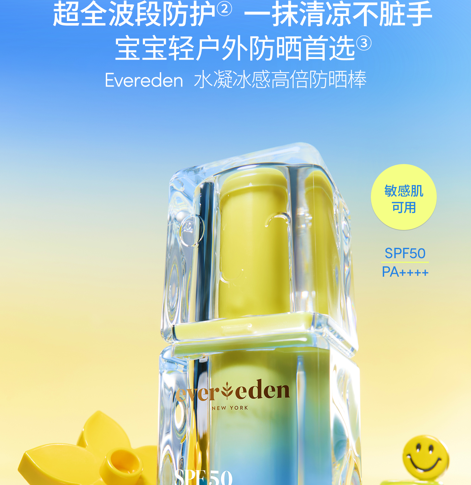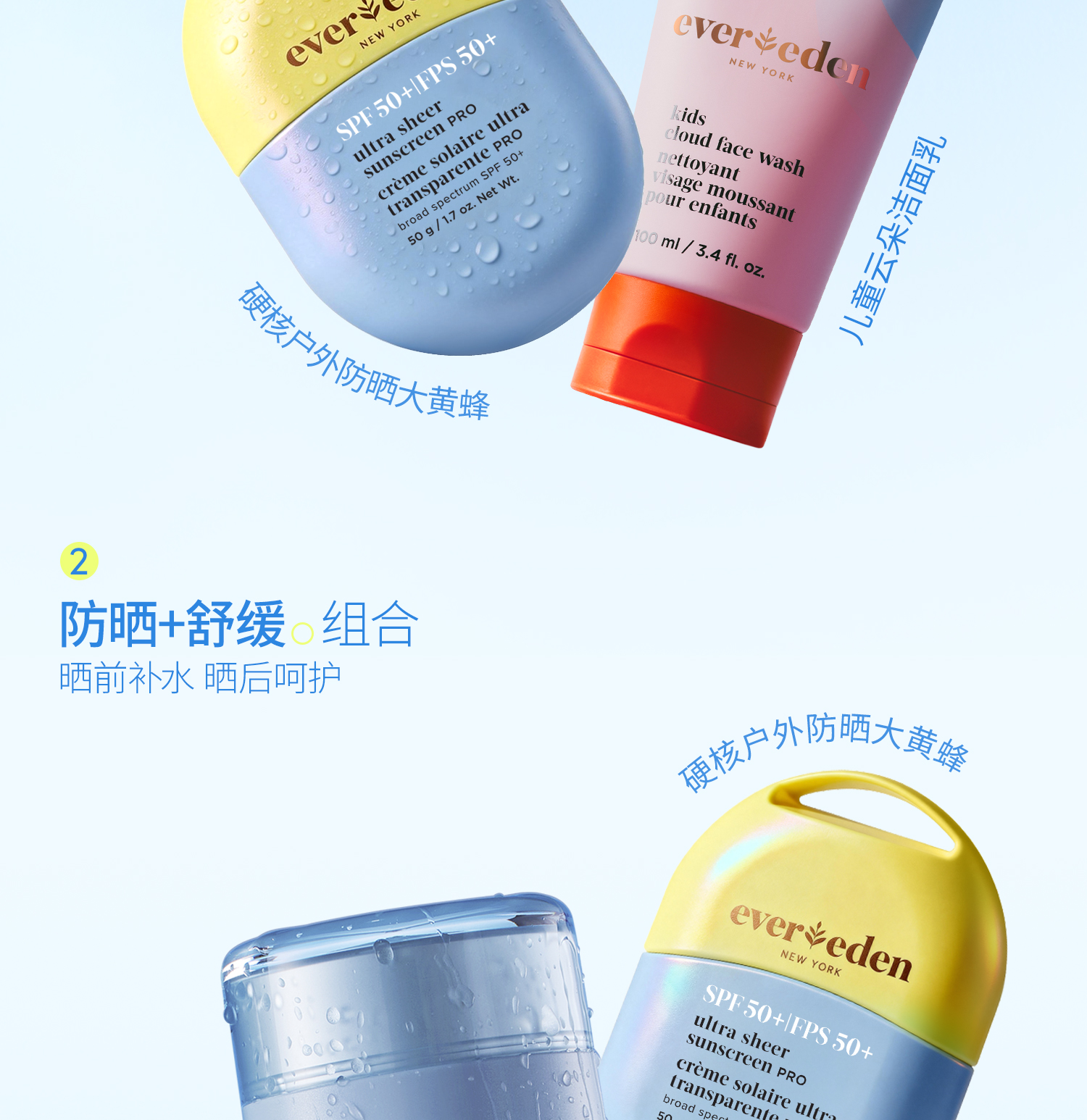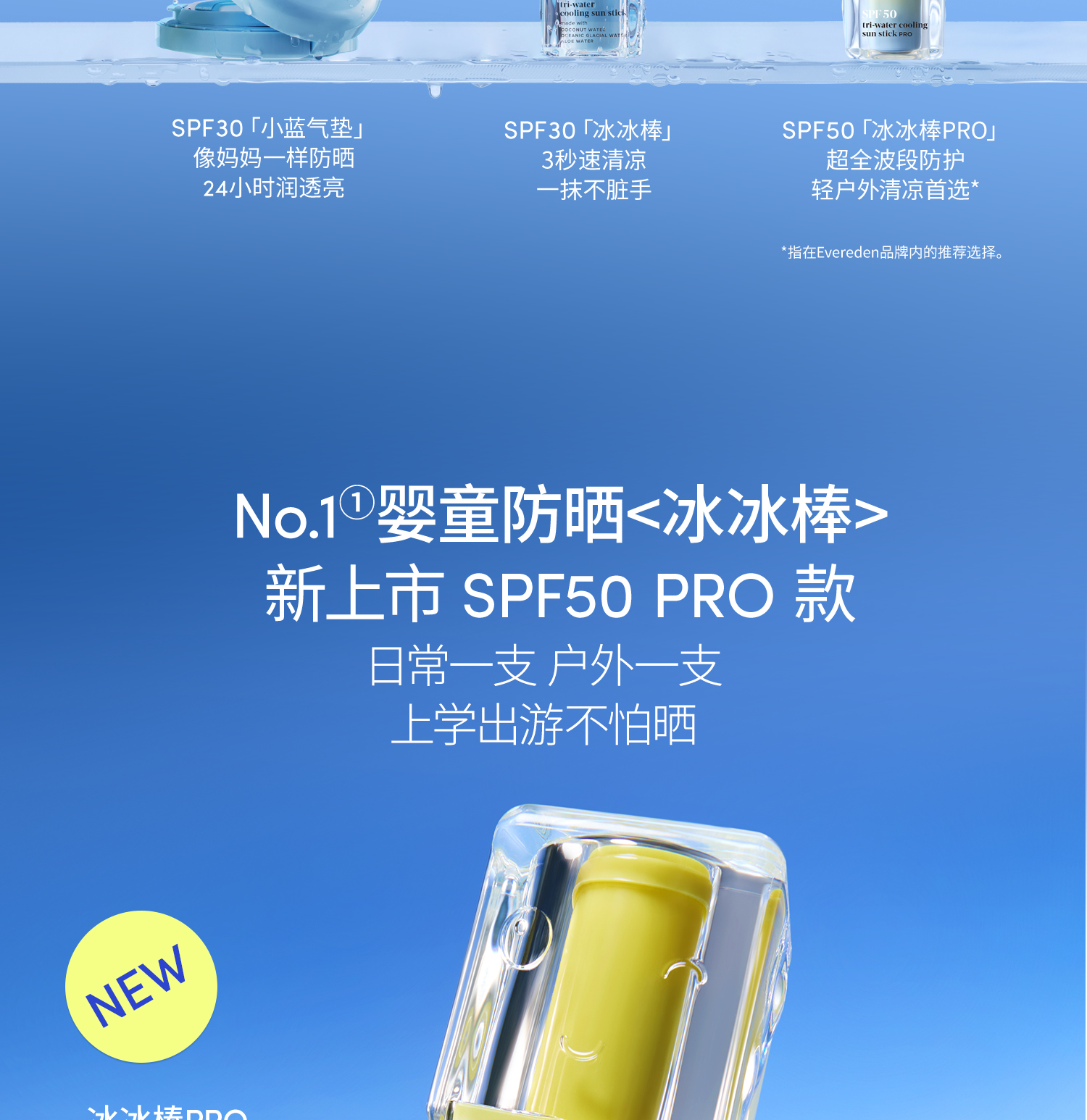 【套组】【新品上市】Evereden安唯伊婴童冰冰棒水凝冰感高倍防晒棒SPF50 Pro 15.5g*2/+防晒喷雾/云朵洁面/小蓝冻面霜pro