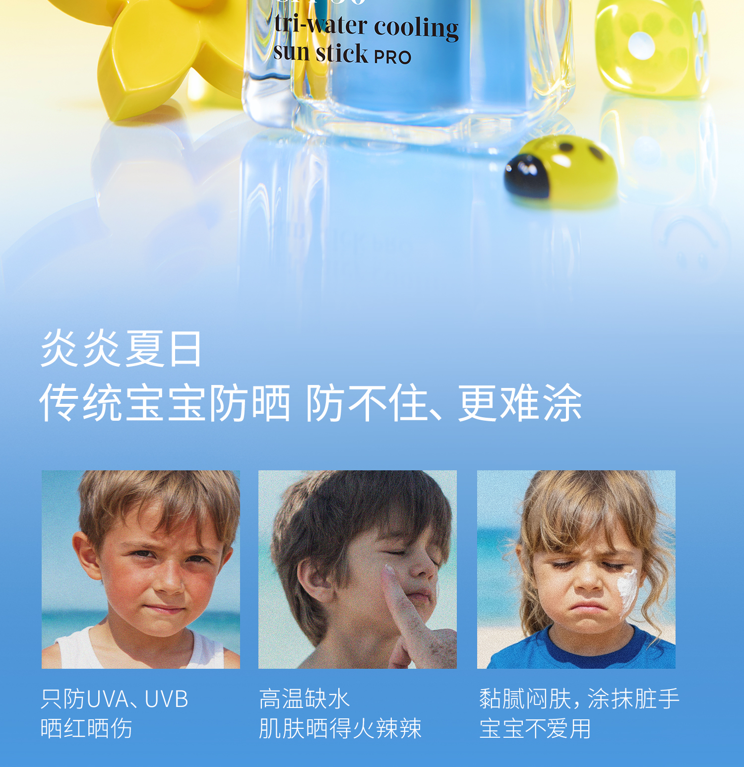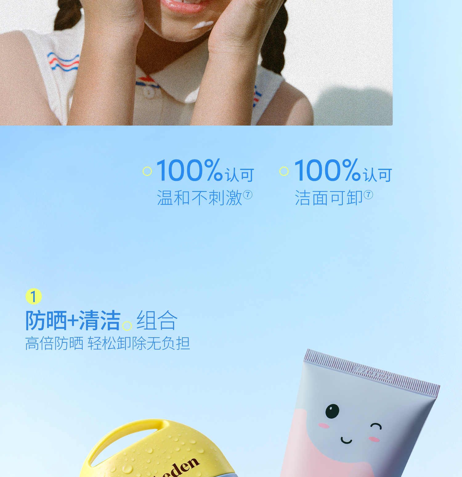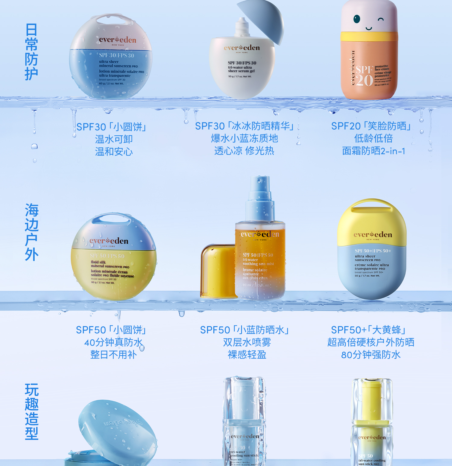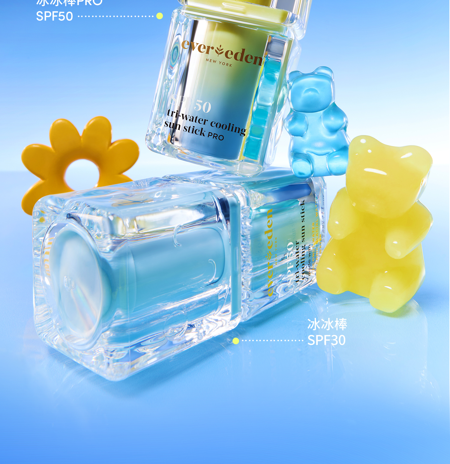 【套组】【新品上市】Evereden安唯伊婴童冰冰棒水凝冰感高倍防晒棒SPF50 Pro 15.5g*2/+防晒喷雾/云朵洁面/小蓝冻面霜pro